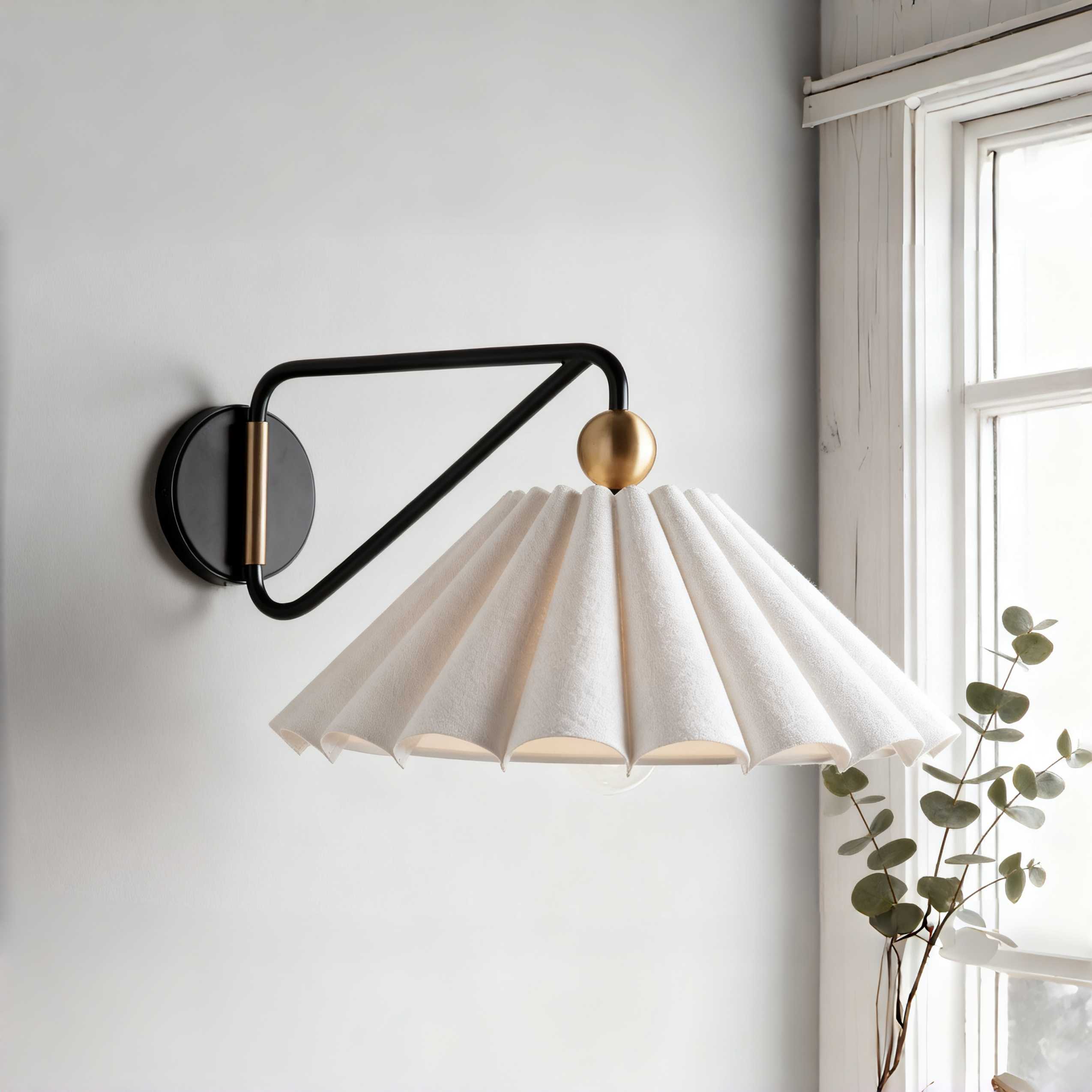 Modern design is known for its bold lines and sleek silhouettes—but that doesn’t mean texture is totally off-limits. If you’ve found a sconce you love, hang it from your wall, then balance it out by filling your space with sleeker, more contemporary pieces.