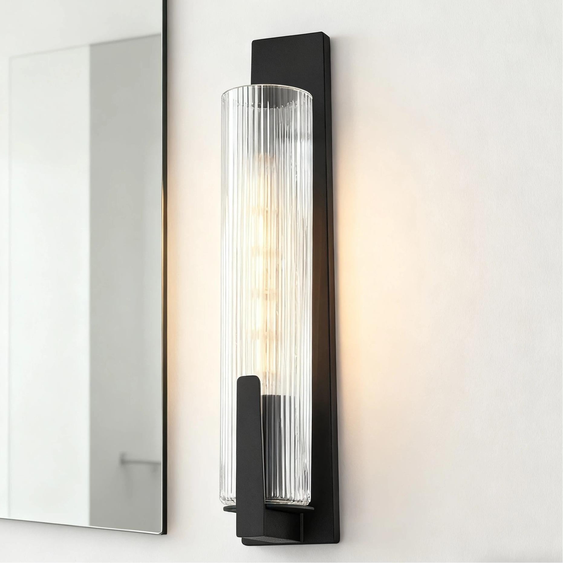 Antique Bronze Tube Sconce with Ribbed Glass Shade and Cylindrical Design for Versatile Indoor Lighting - Perfect for Bathroom and Bedroom Wall Sconces