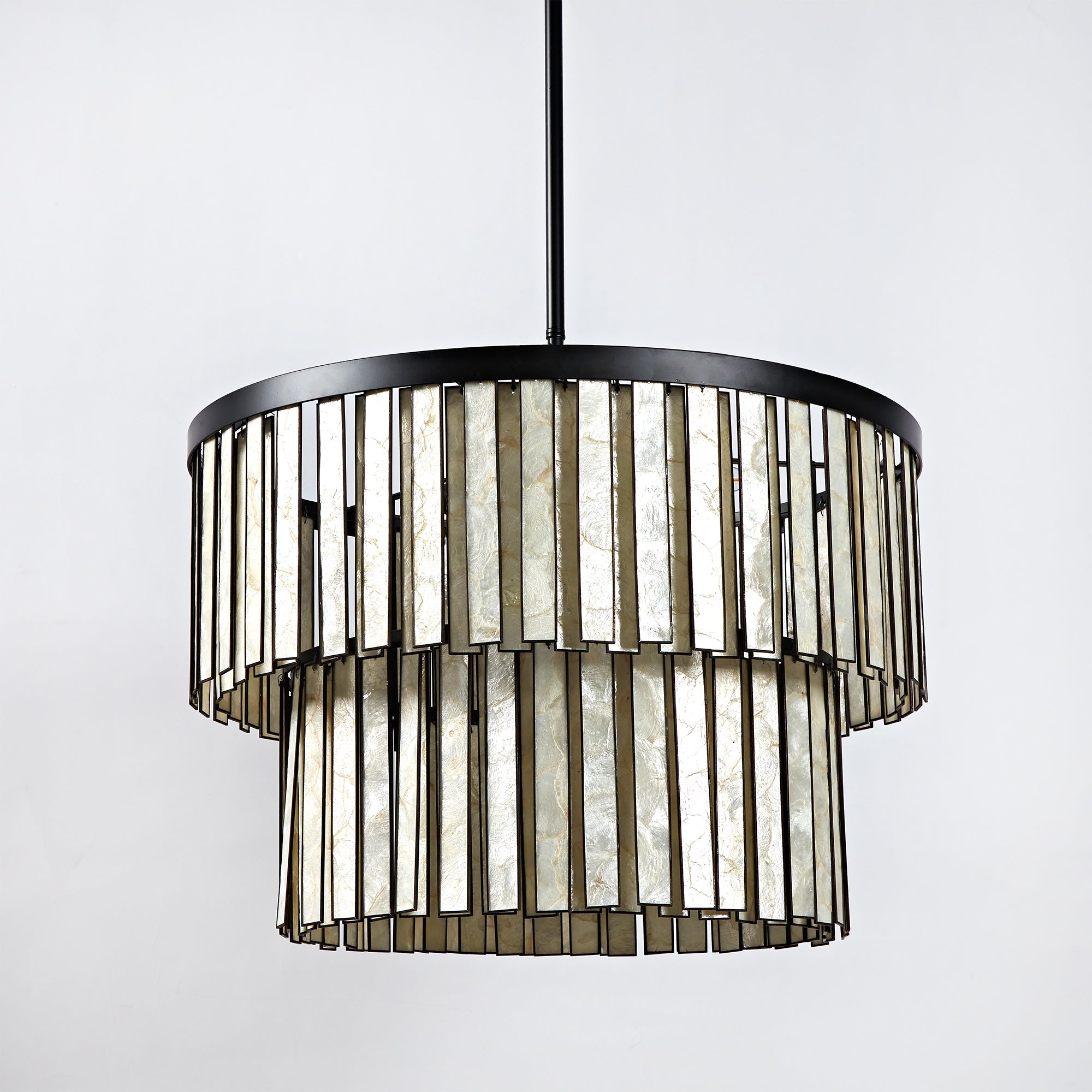 Coastal Astrid Capiz Round Chandelier perfect for a formal dining room, inspired bedroom or casual breakfast nook
