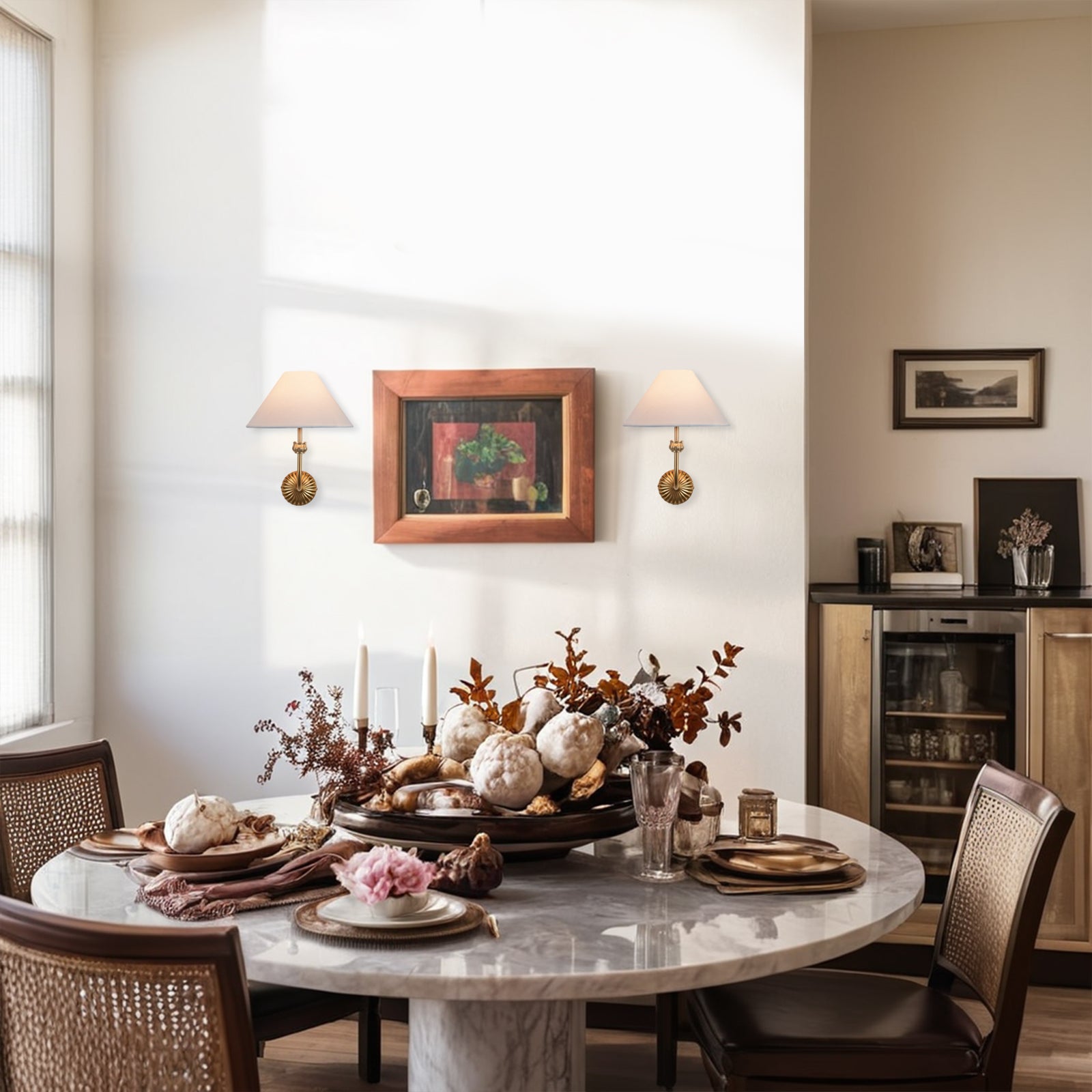 Vintage Wall Sconce with White Linen Shade, Mid-Century Wall Lighting Fixture with Dimmable Design, Hardwired Wall Mounted Light for Bedroom, Living Room, Hallway, Kitchen
