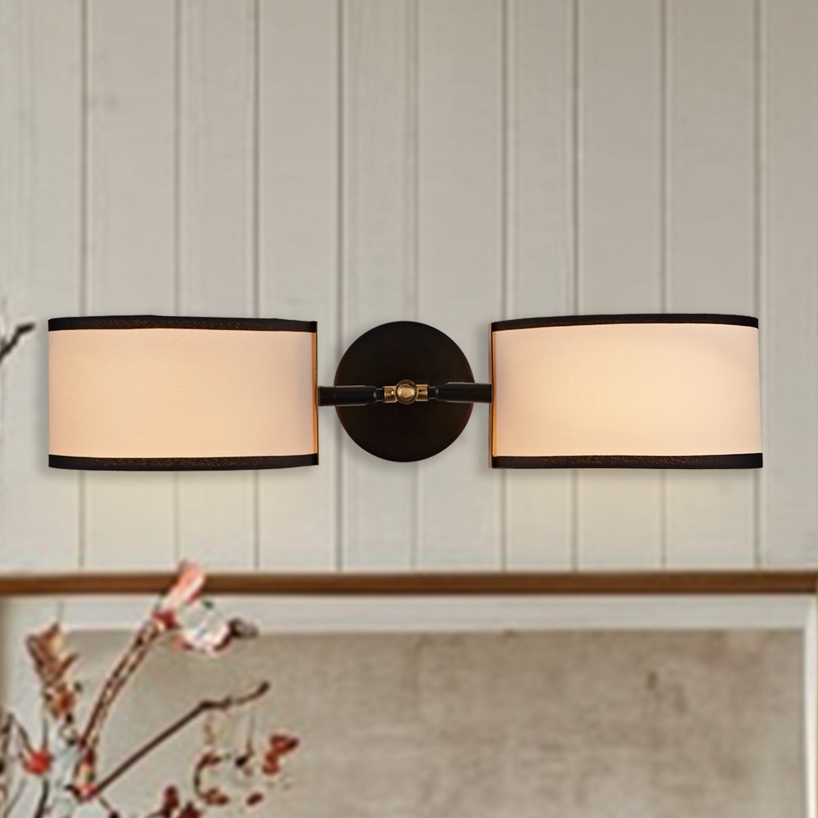 Modern Daphne Double Sconce with a white linen shade with black trim - Perfect for Bedrooms, Living Rooms and Entryway