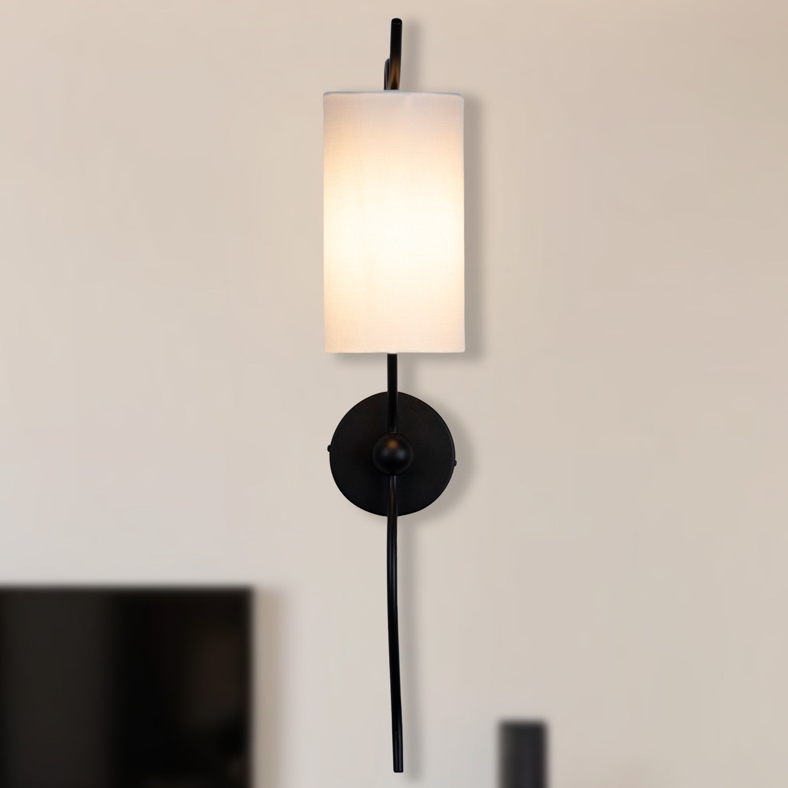 Shaw Sconce-Linen Shade - Hand-Forged Quality and Modern Design, Perfect for Bathroom and Modern Living Room