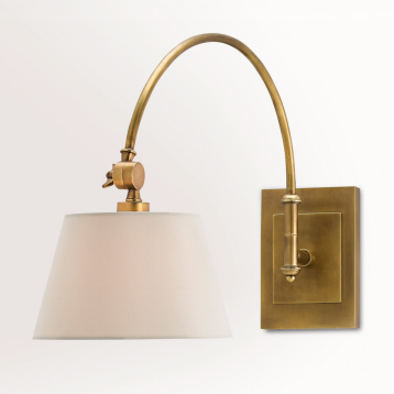 Retro Swing Arm Wall Sconce, Single Light Hardwire Wall Lamp in Antique Brass with Silk Shade, Modern Single Sconce for Home Décor, Bedroom, Living Room, Office, Farmhouse
