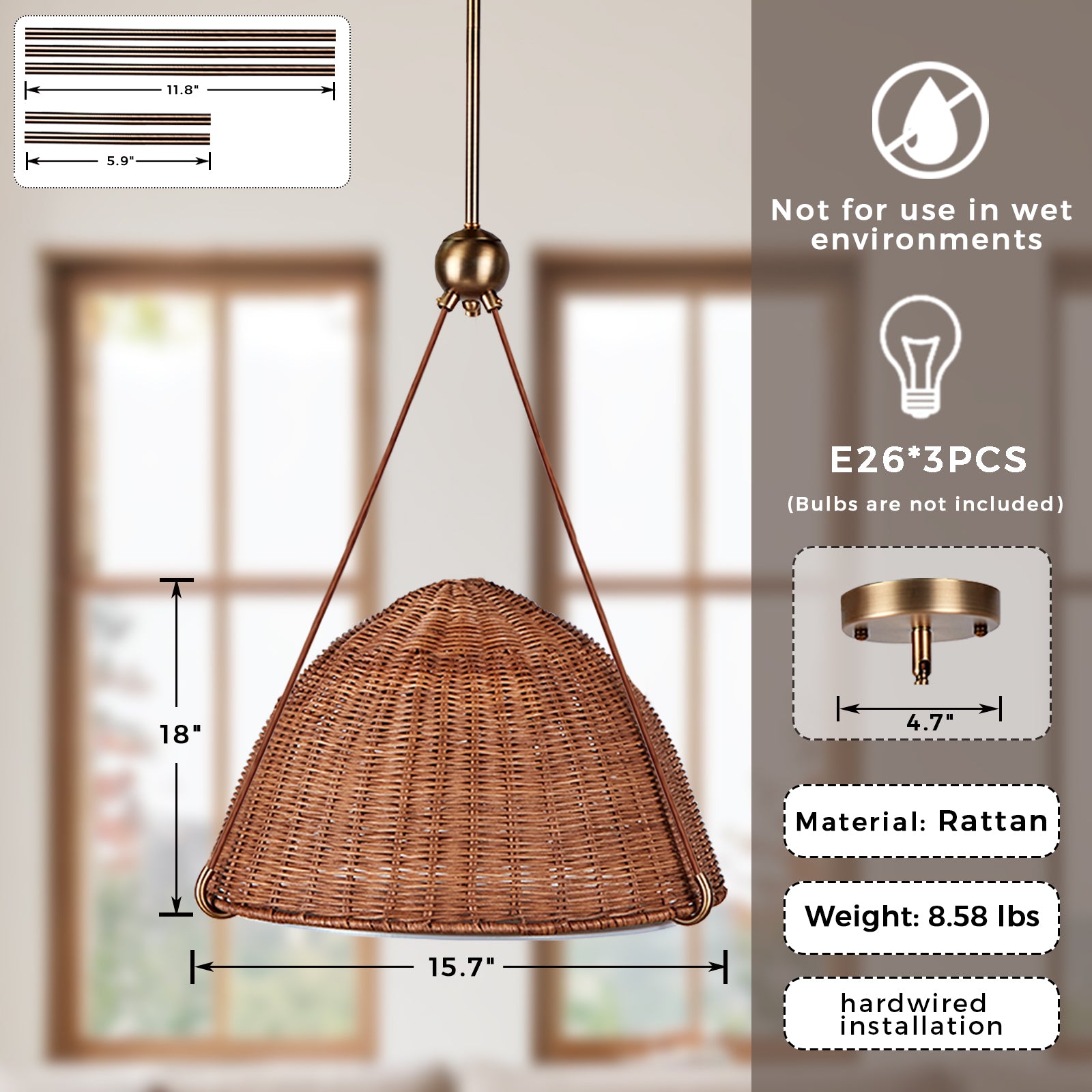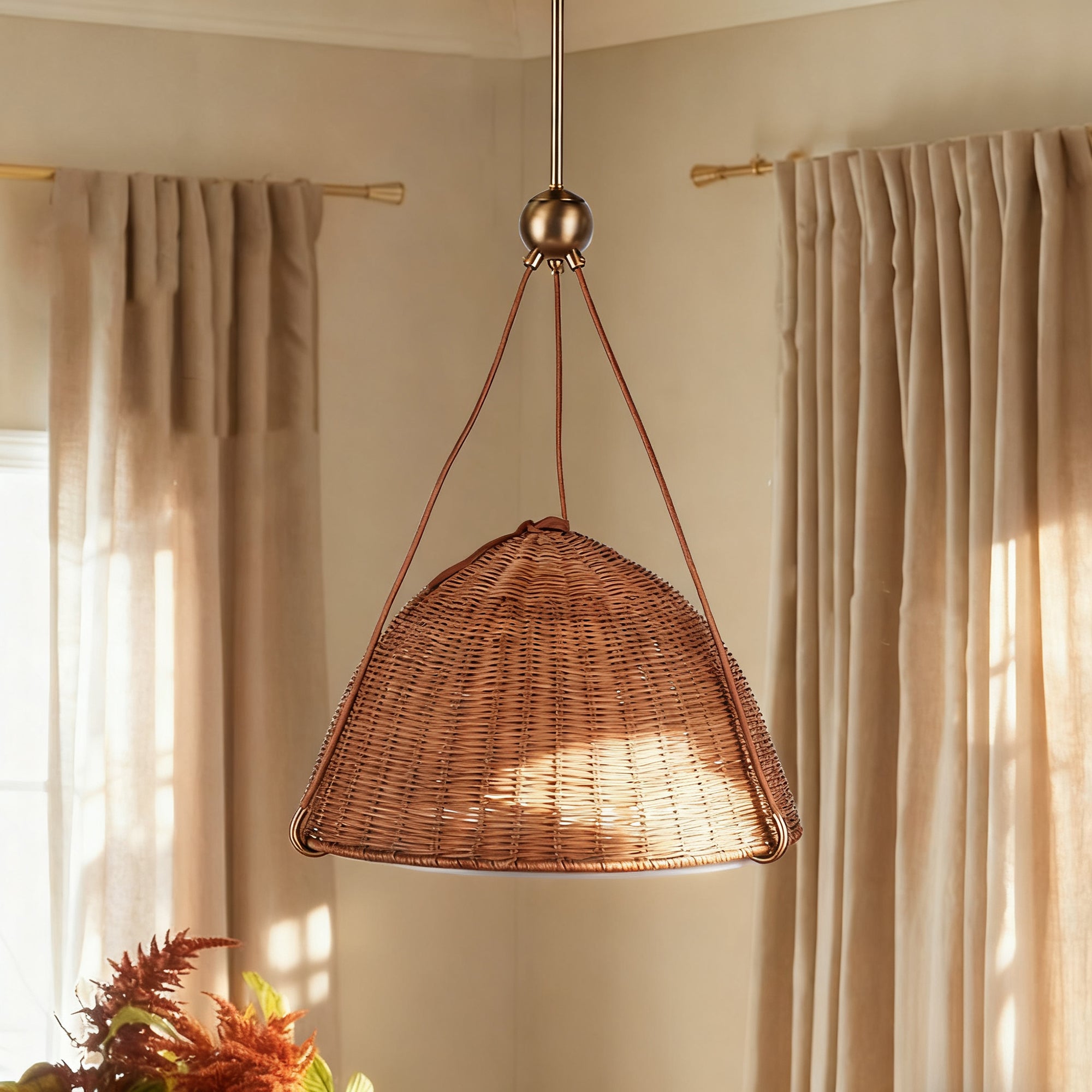 Harwich Medium Woven Rattan Dome Pendant- Elegant Relaxed Jute String Design, Contract Grade - Ideal for Hanging Lights for Bedroom, Dining Room Lights, and Pendant Lights for Living Room