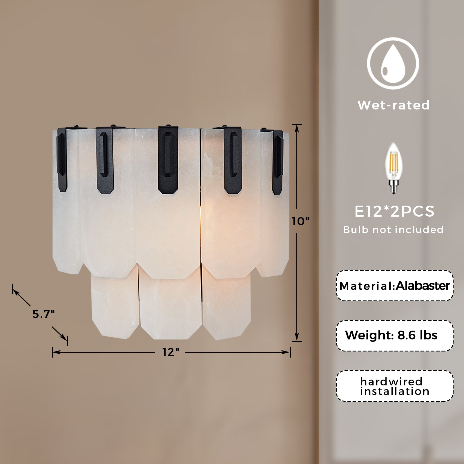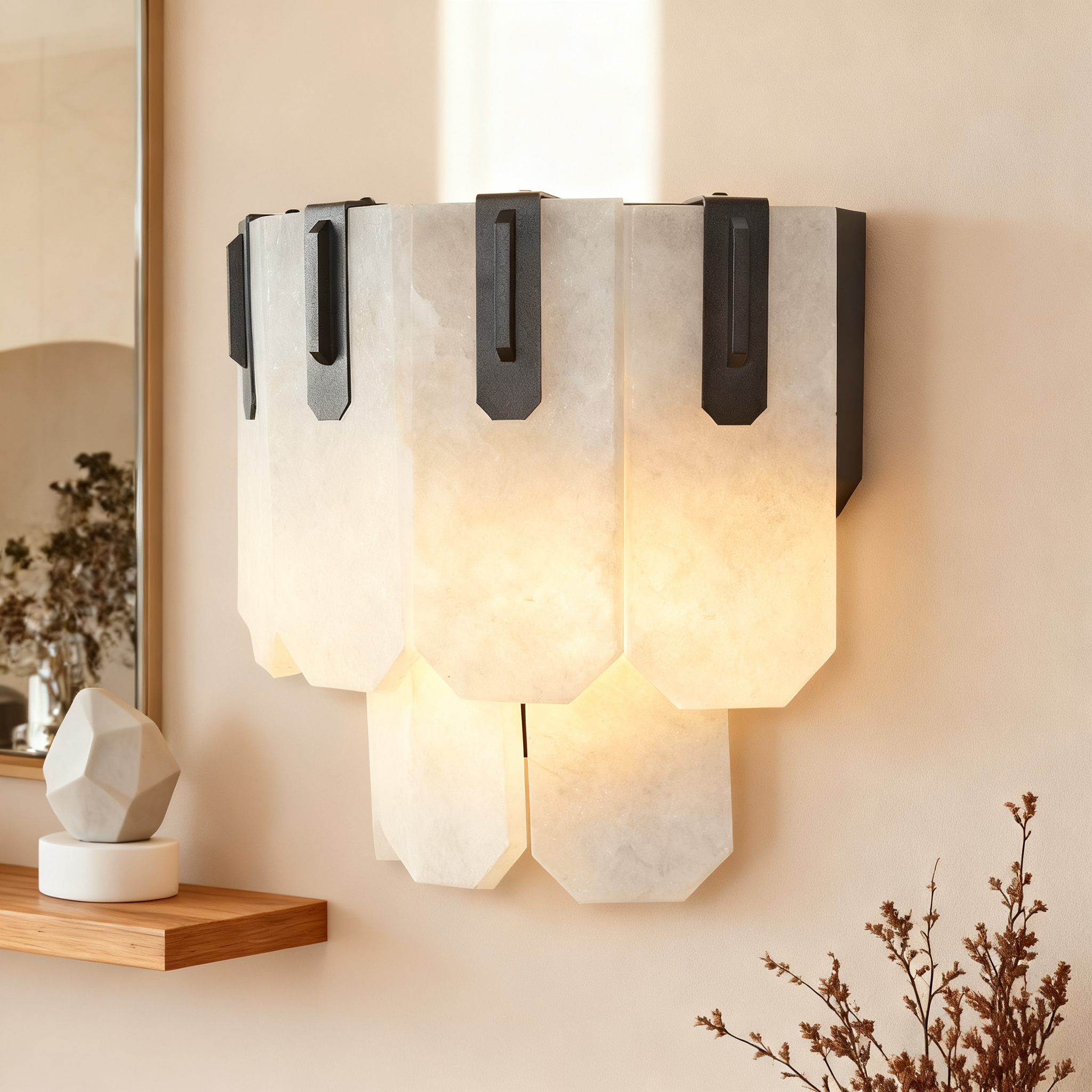 Augustine Alabaster Sconce - Contemporary Natural Stone Lighting for Home Decor - Ideal for Living Room, Kitchen, and Bedroom Wall Lights