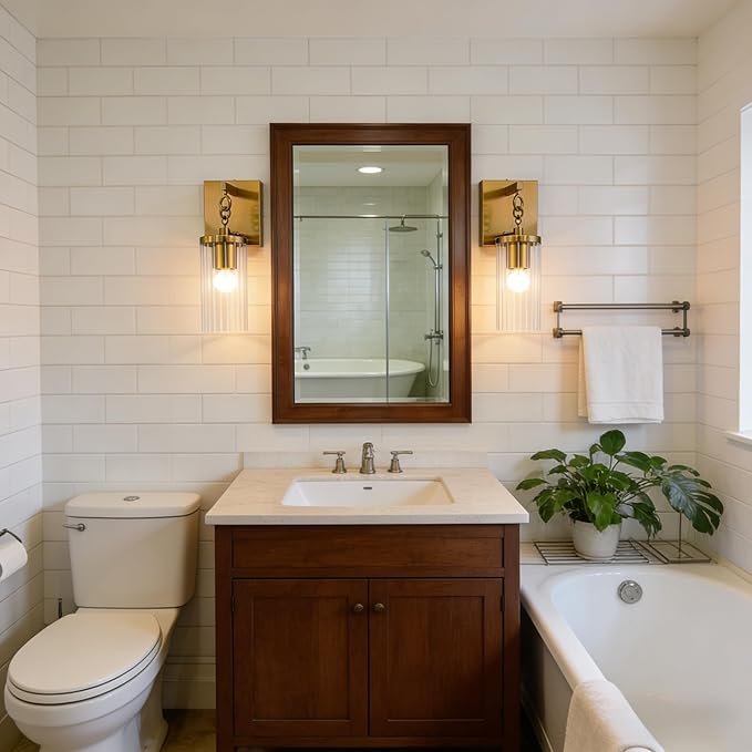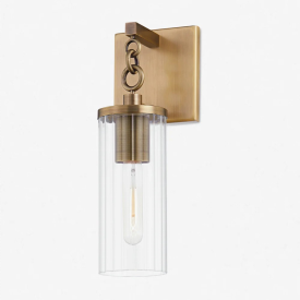 Antique Sconce with Clear Fluted Glass Shade, Industrial Wall Light Fixture with Patina Brass Finshed Hanging Round-link Chain, Retro Wall Lamp for Indoor, Outdoor, Entryway, Hallway