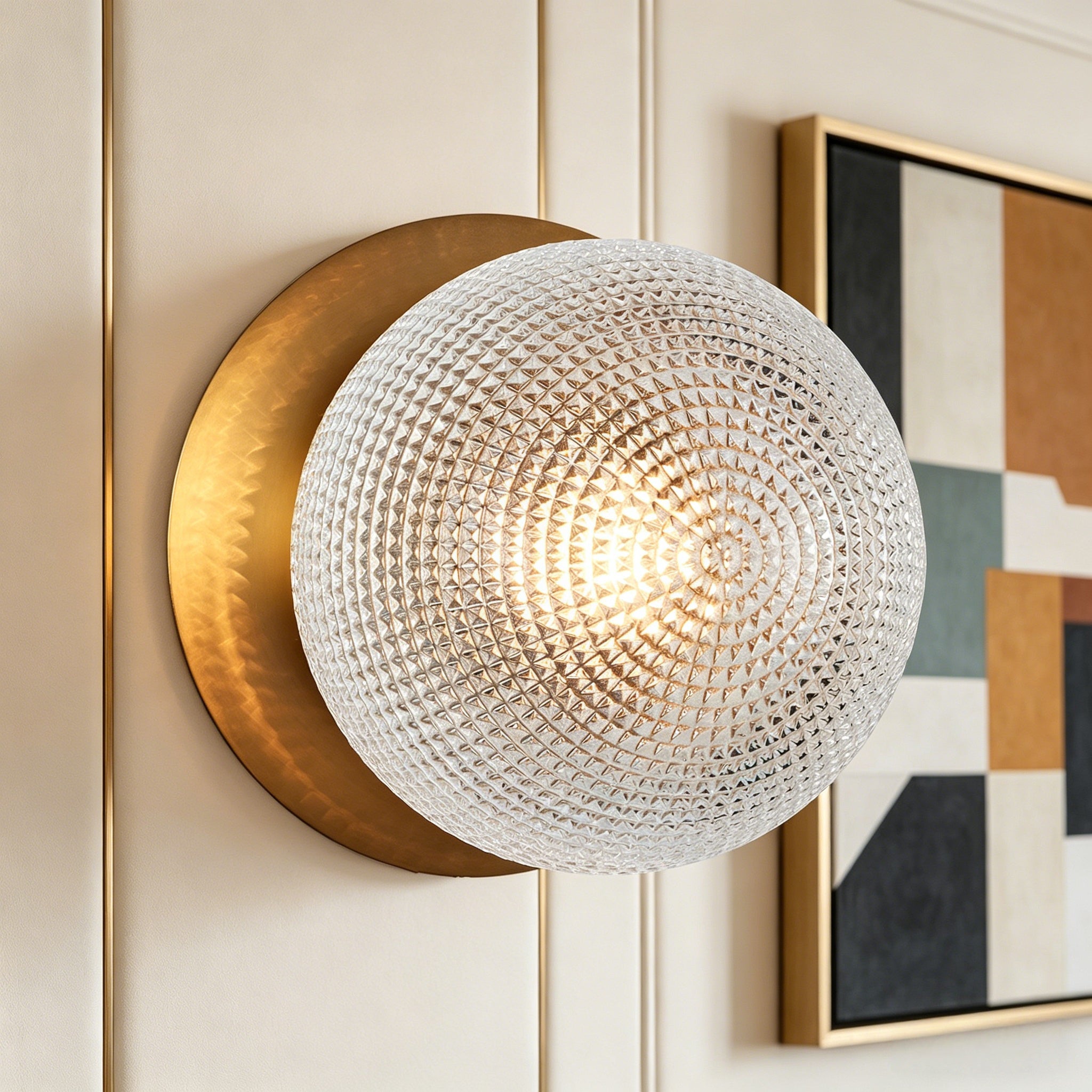 Minimalist Textured Prismatic Glass Wall Sconce, 6 Inch Spherical Wall Lighting Fixture, Mid-Century Wall Mounted Light Beside Mirror, Industrial Indoor Sconce for Living Room, Bedroom, Bathroom, Entryway