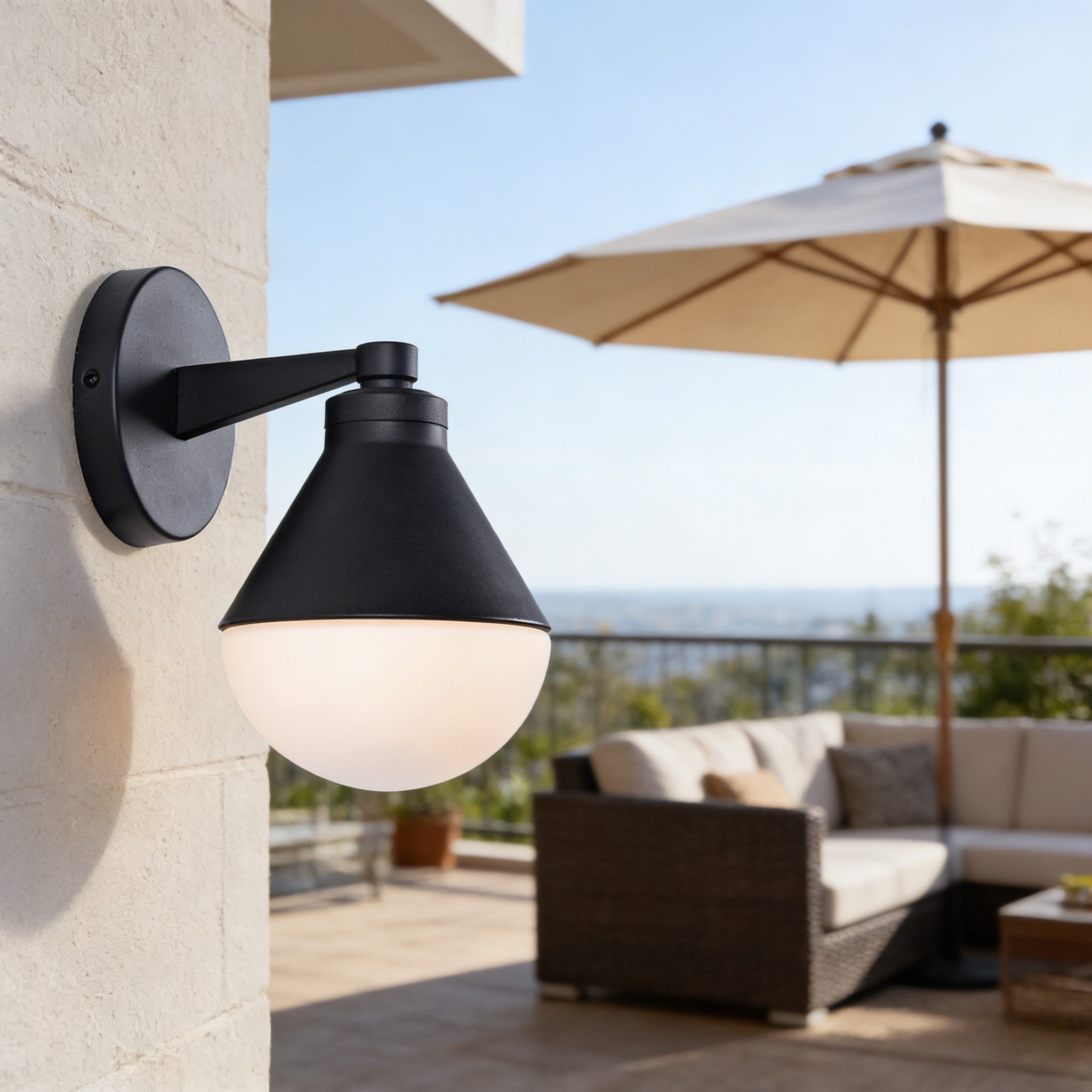 Glowing Conical Sconce - Modern Style with Solid Brass and Conical Shade, Featuring a Sleek Arched Pole - Perfect for Exterior Wall Lights and Outdoor Wall Lights, Ideal for Candle Wall Sconces