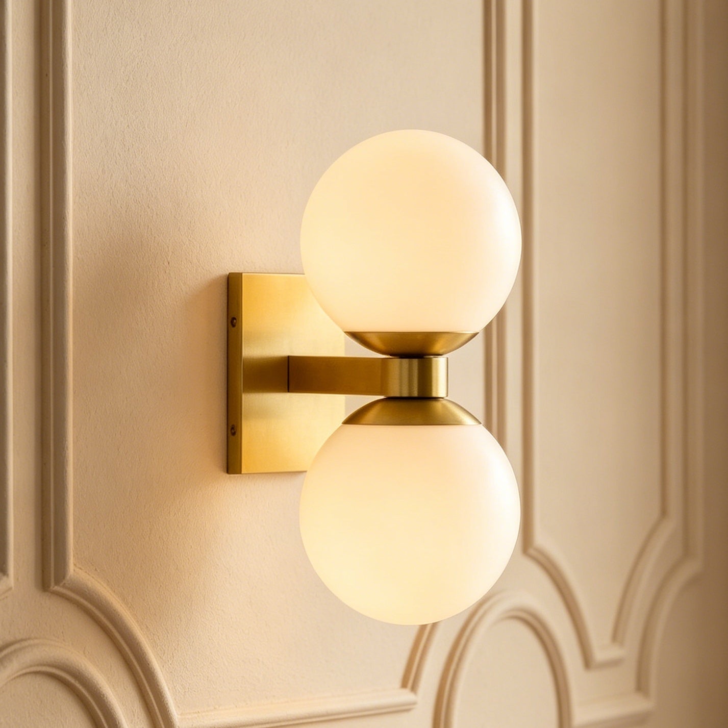 Travertine Glow Double Wall Sconce - Elegant Brushed Brass and Metal Plate Design for Living Room