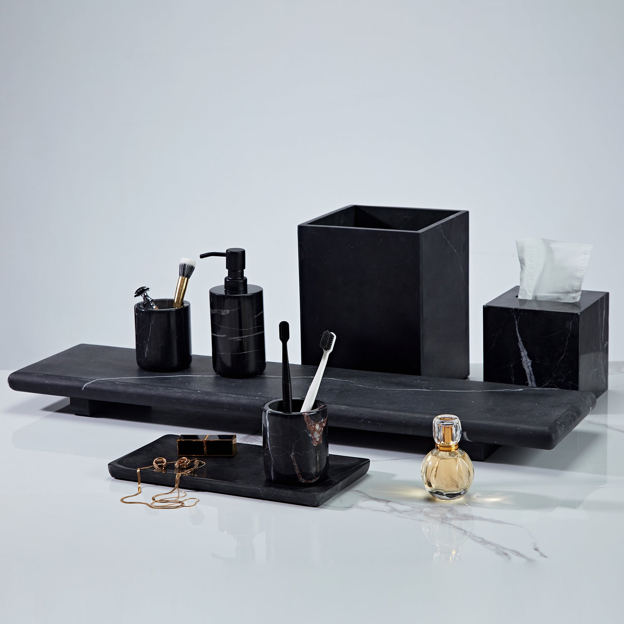 Carved from high-quality black marble, these accessories add a touch of sophistication and timeless beauty to your space.
