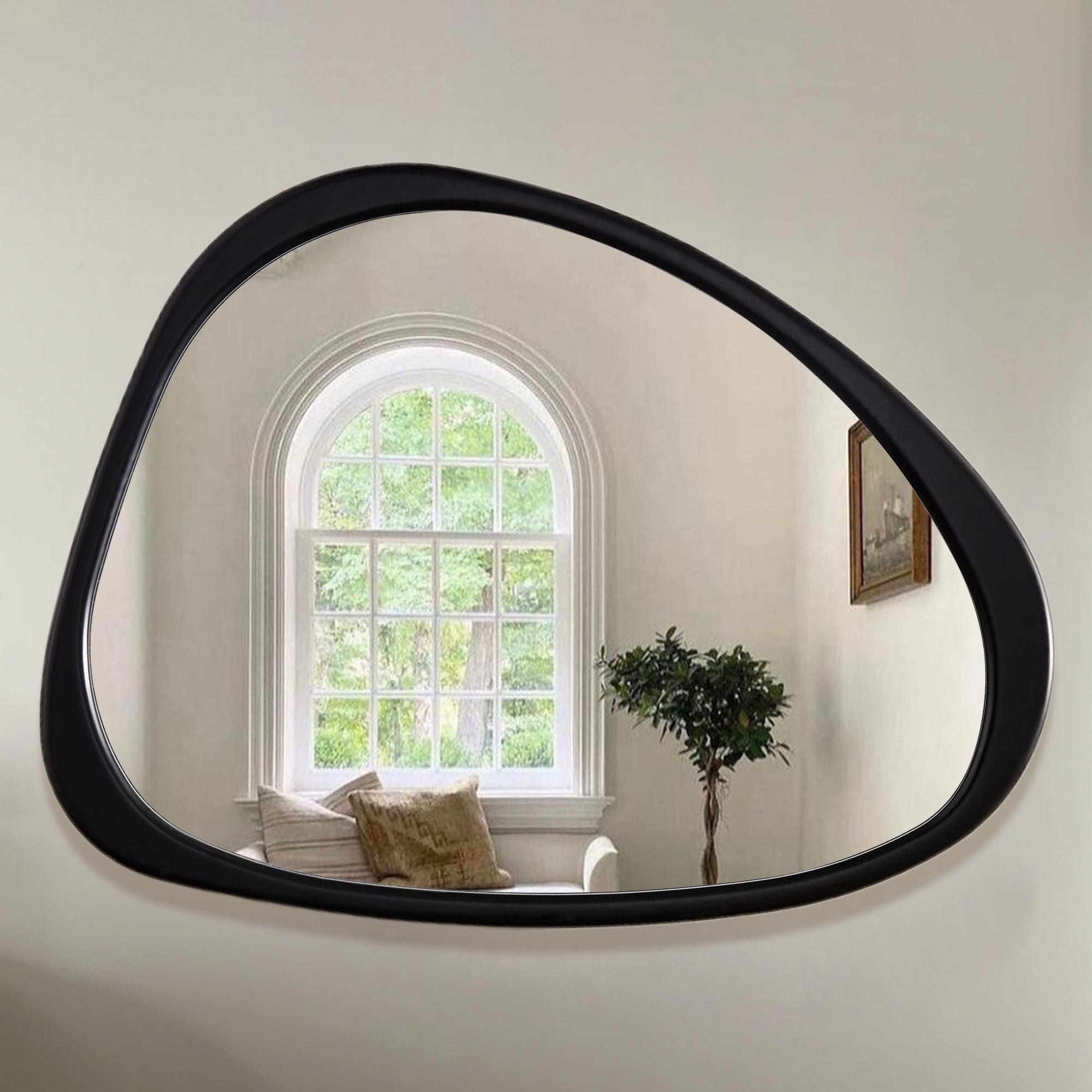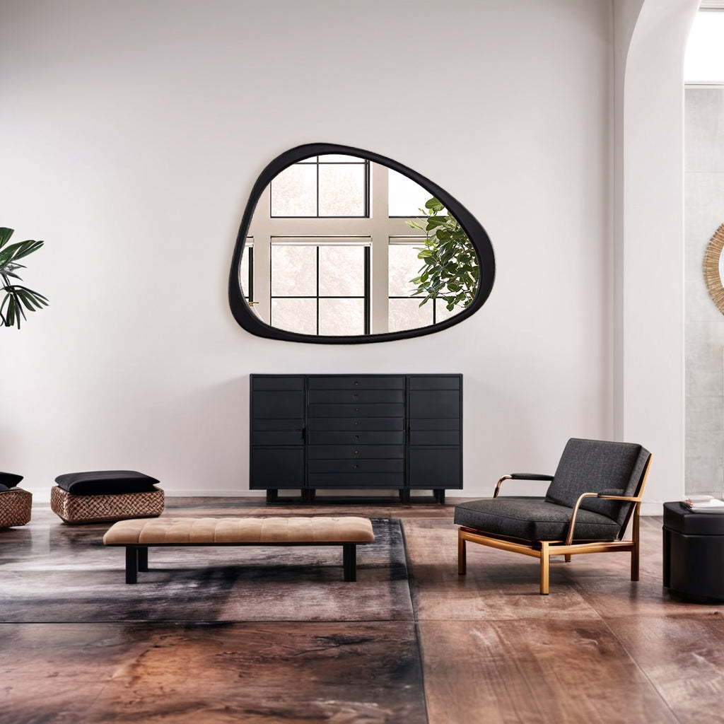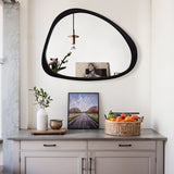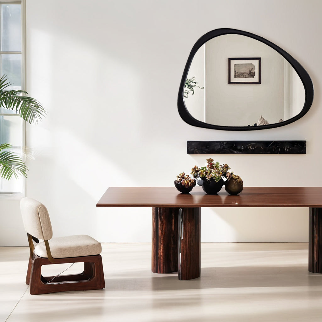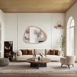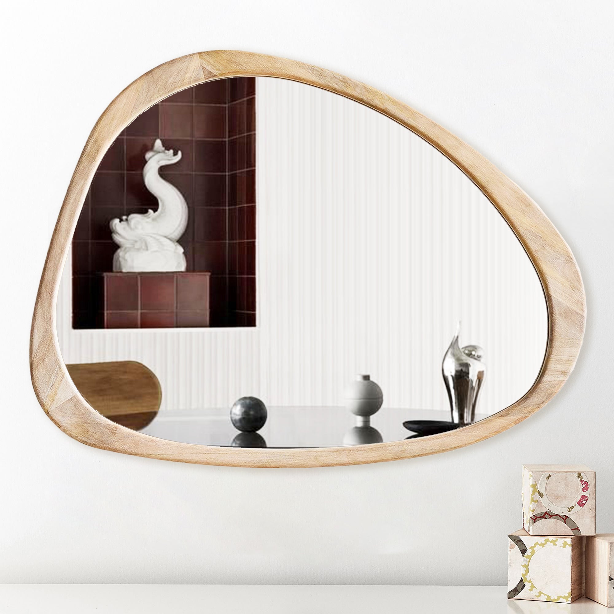 Introducing our stunning Asymmetrical Wall Mirror, a must-have for your home decor! This Large Asymmetrical Mirror features a handcrafted polished wood frame that adds a touch of natural elegance to any space. The solid and classic Acacia wood frame ensures durability and timeless style.