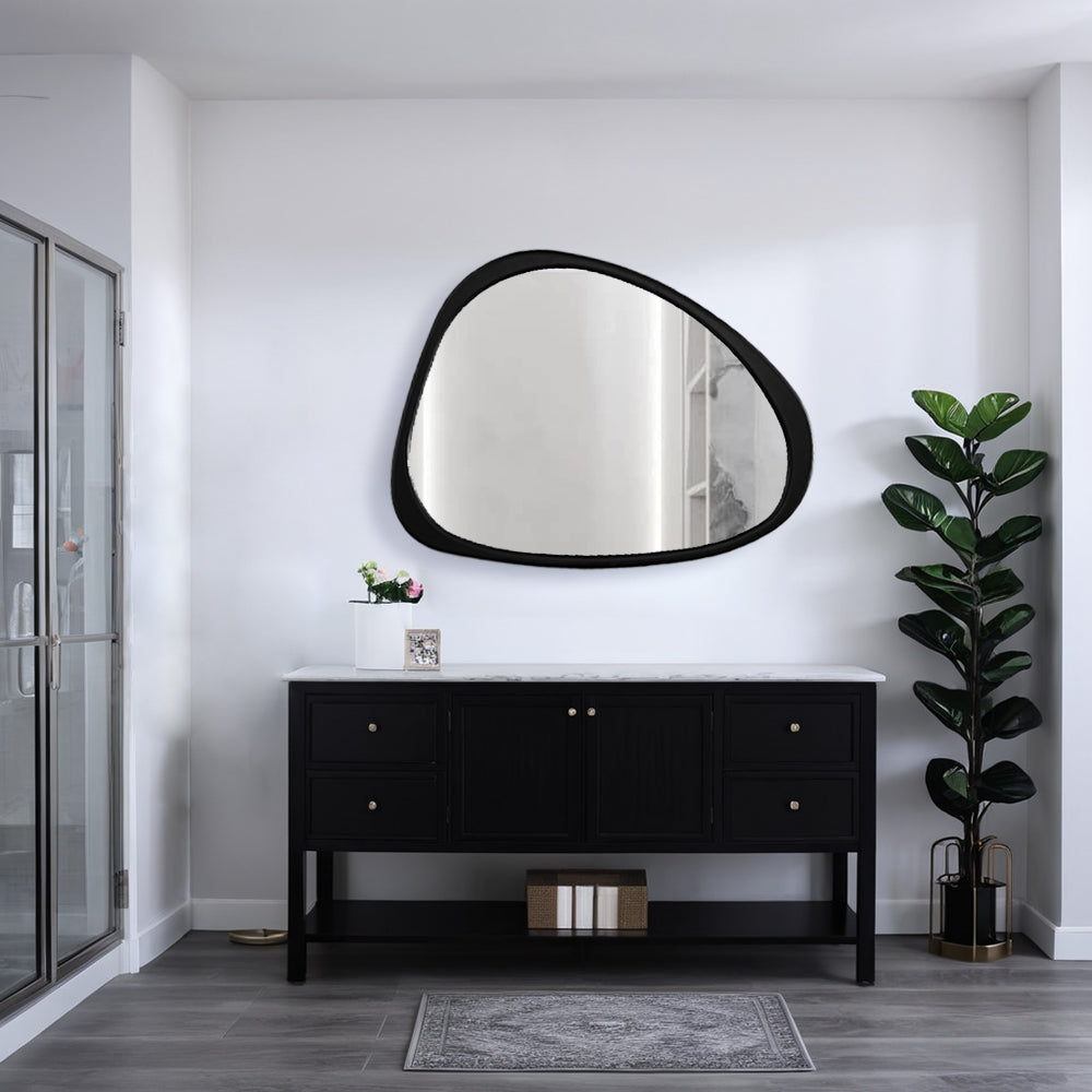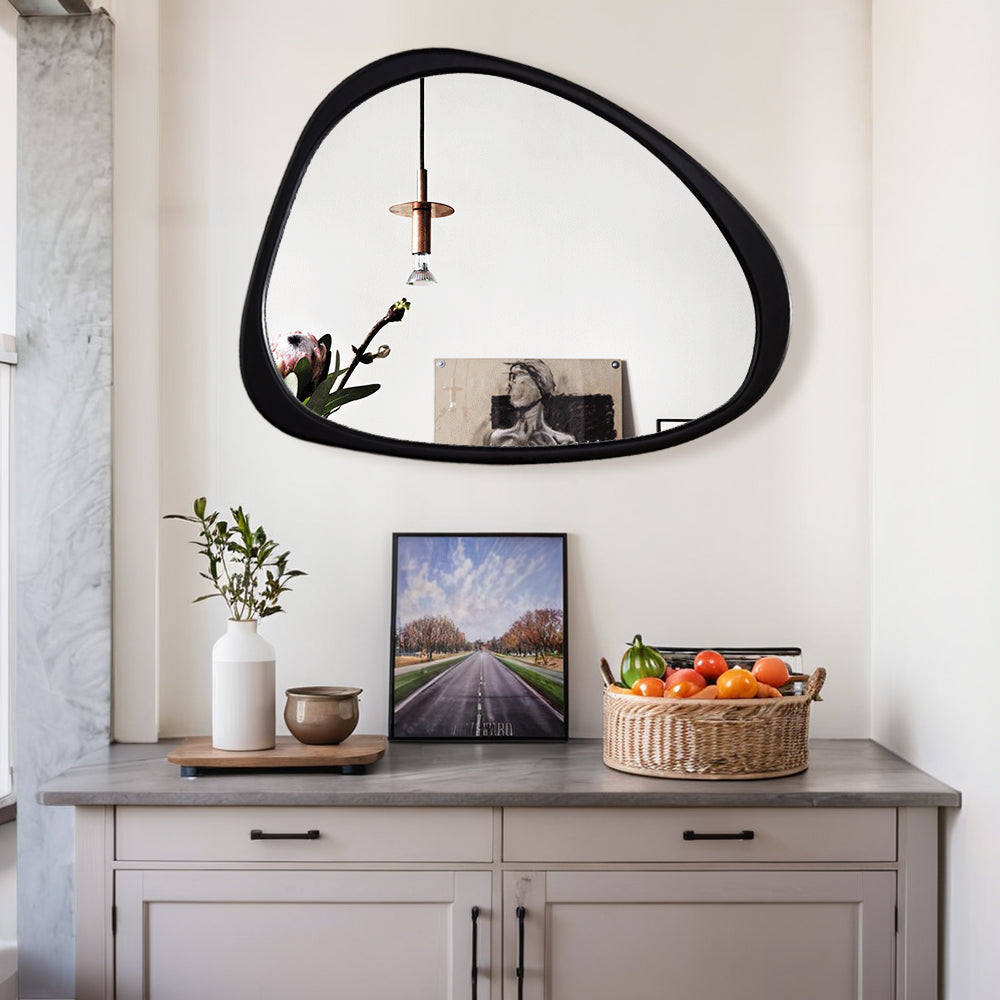 To maintain the beauty of your mirror, simply wipe clean with a soft, dry cloth. Upgrade your decor with this stylish Asymmetrical Bathroom Mirror and elevate the look of any room in your home!