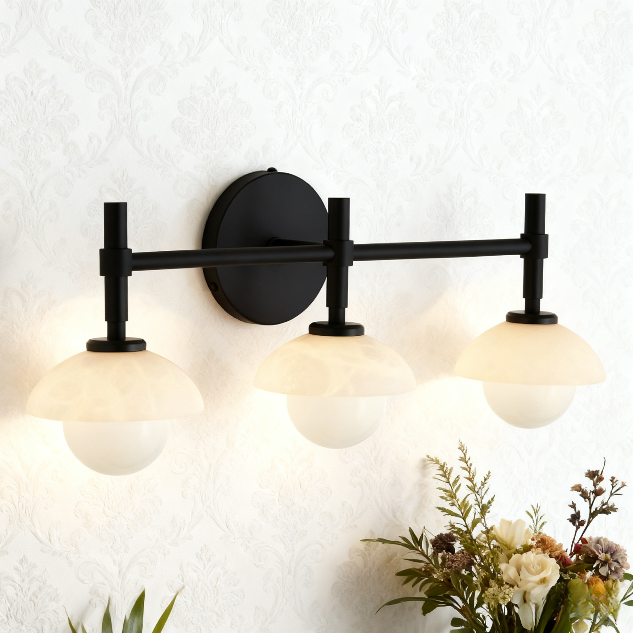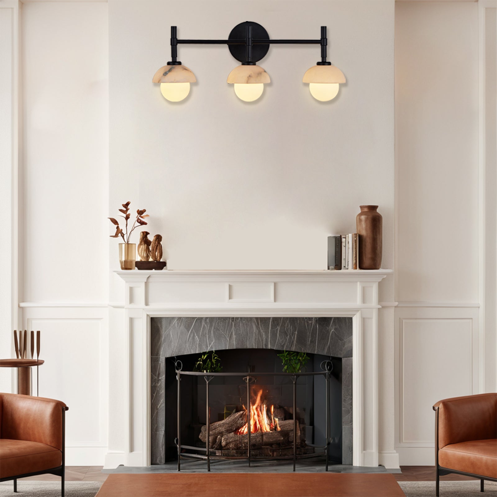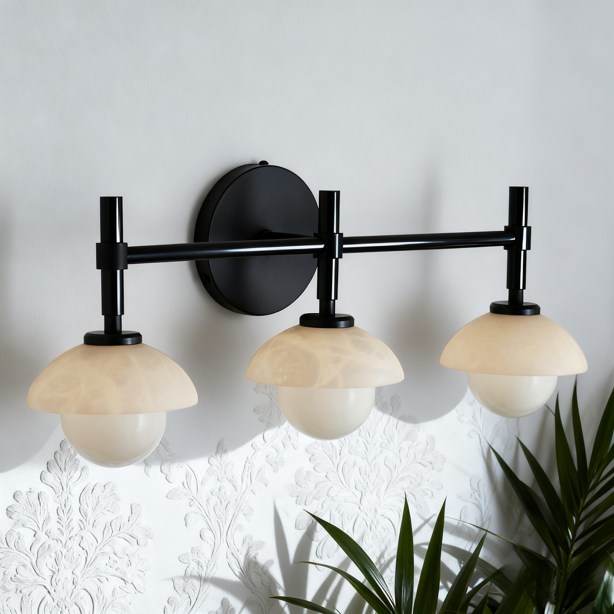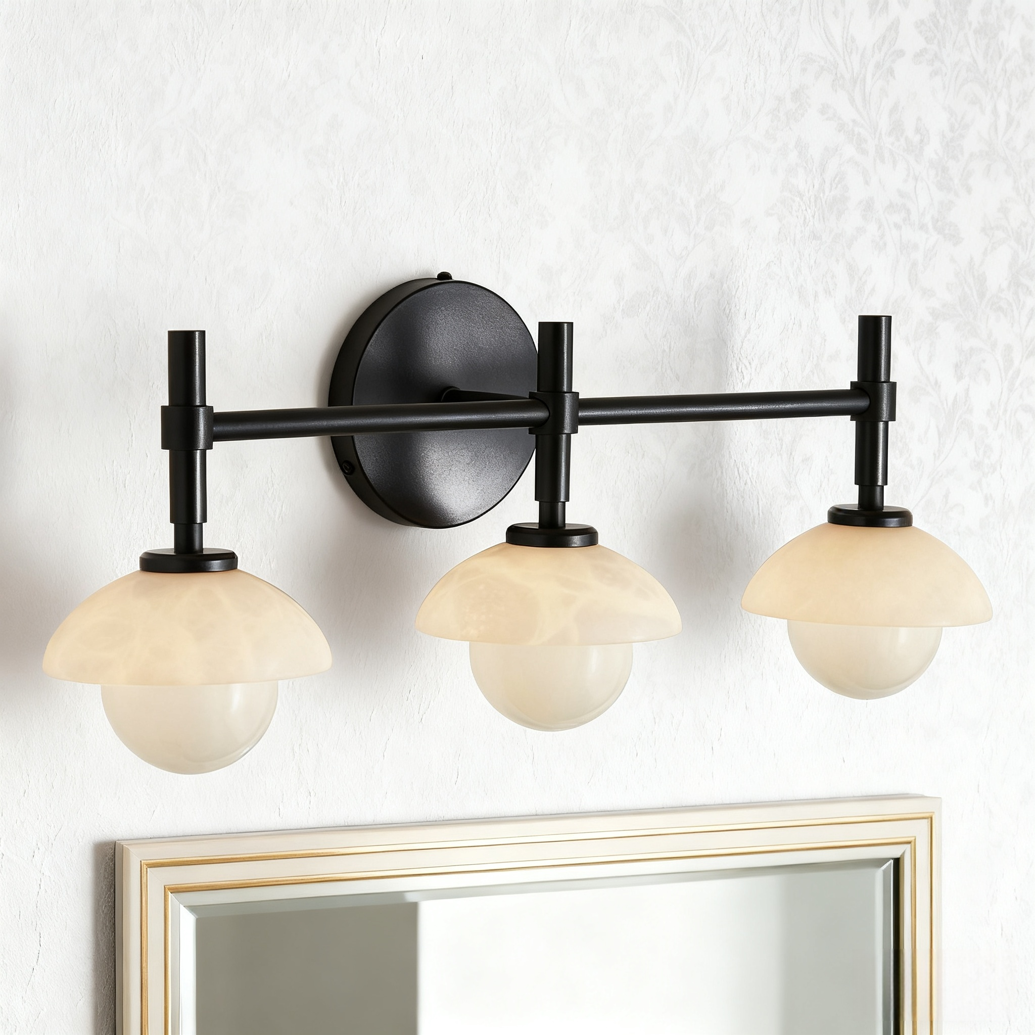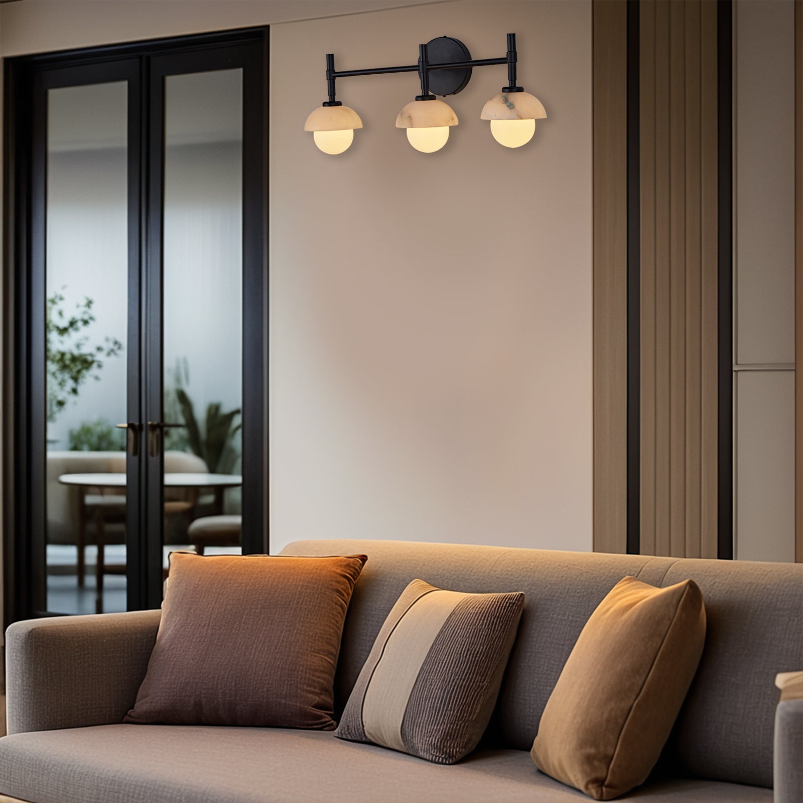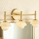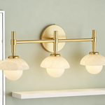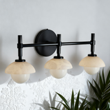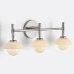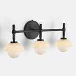 - Enhance your bathroom decor with the exquisite Modern Alabaster Glass Shades Rounded Triple Sconce, a versatile vanity wall lamp that elevates your space with elegance.