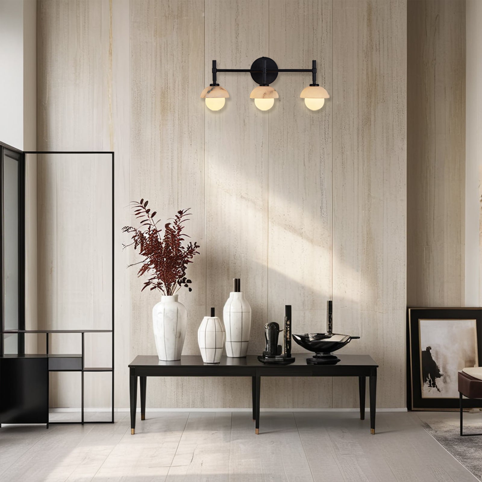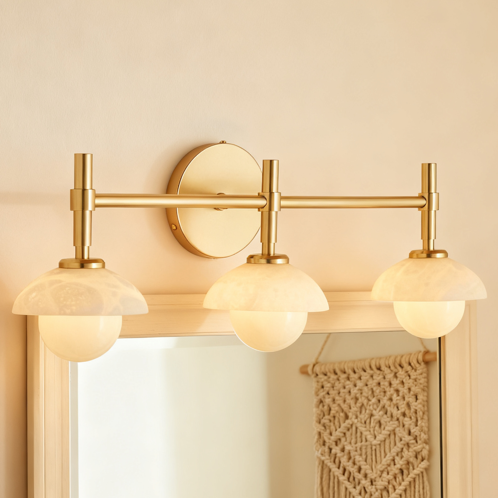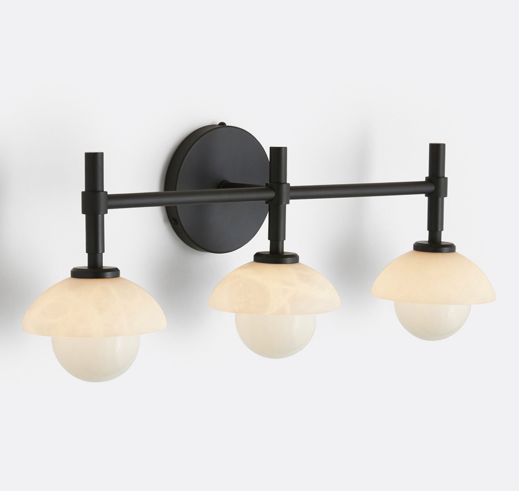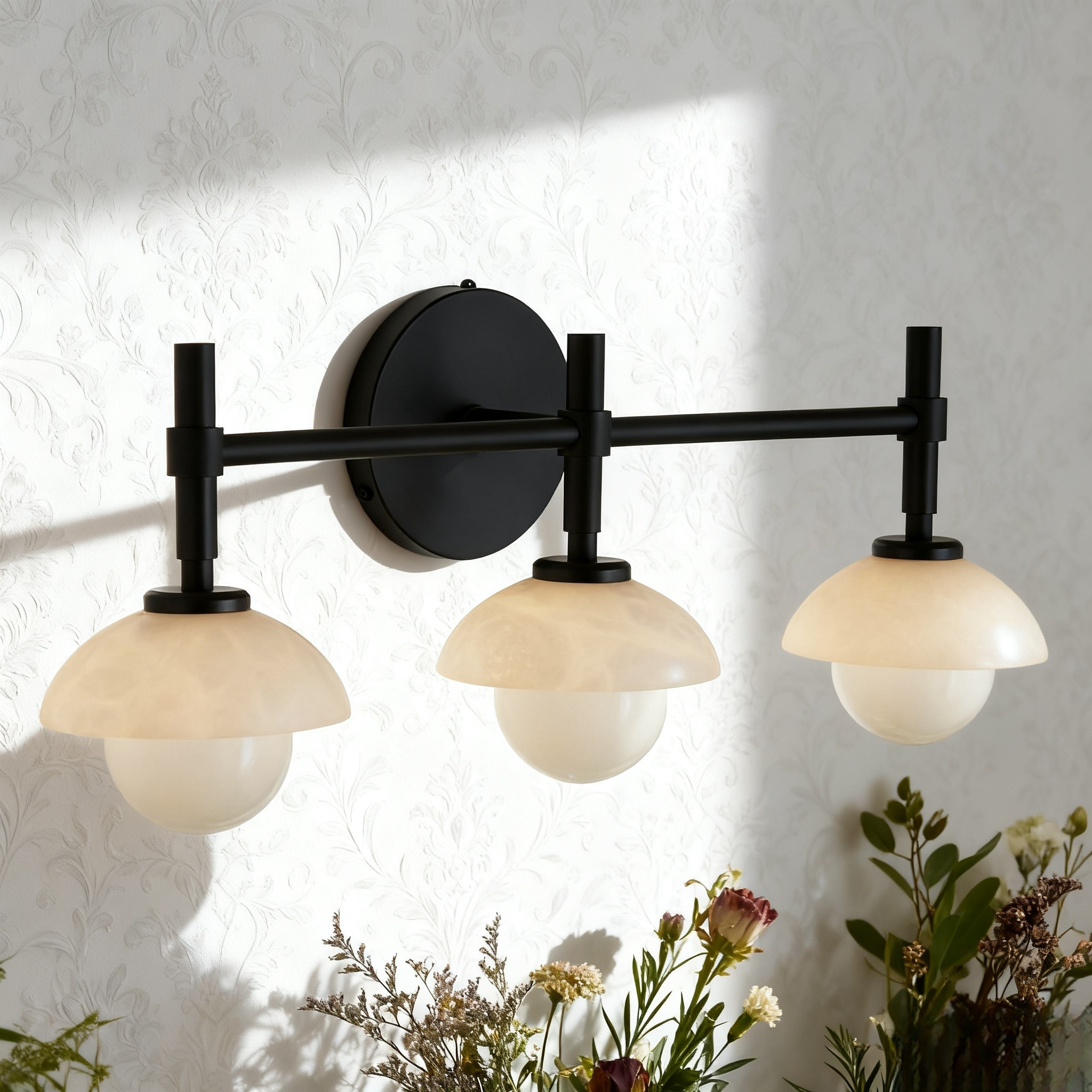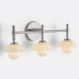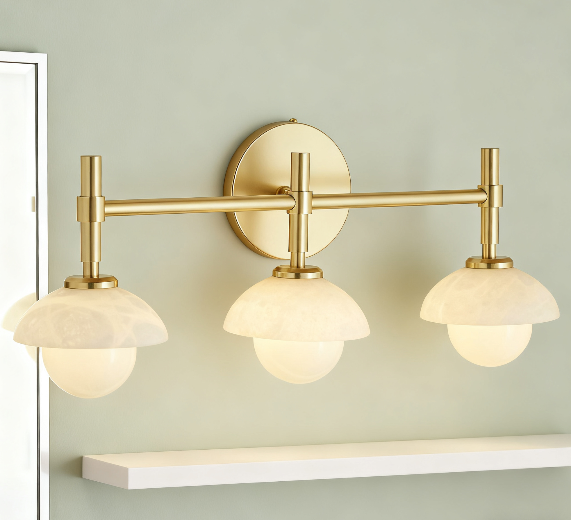 - Enhance your bathroom decor with the exquisite Modern Alabaster Glass Shades Rounded Triple Sconce, a versatile vanity wall lamp that elevates your space with elegance.