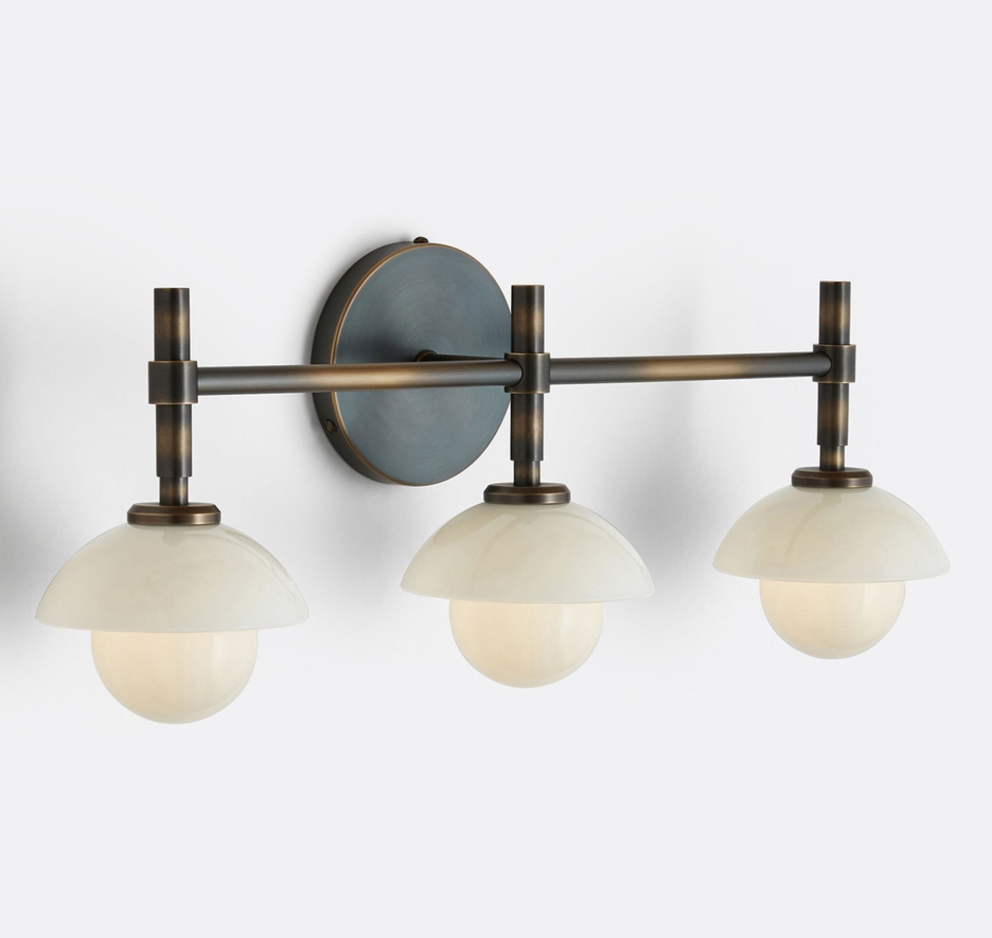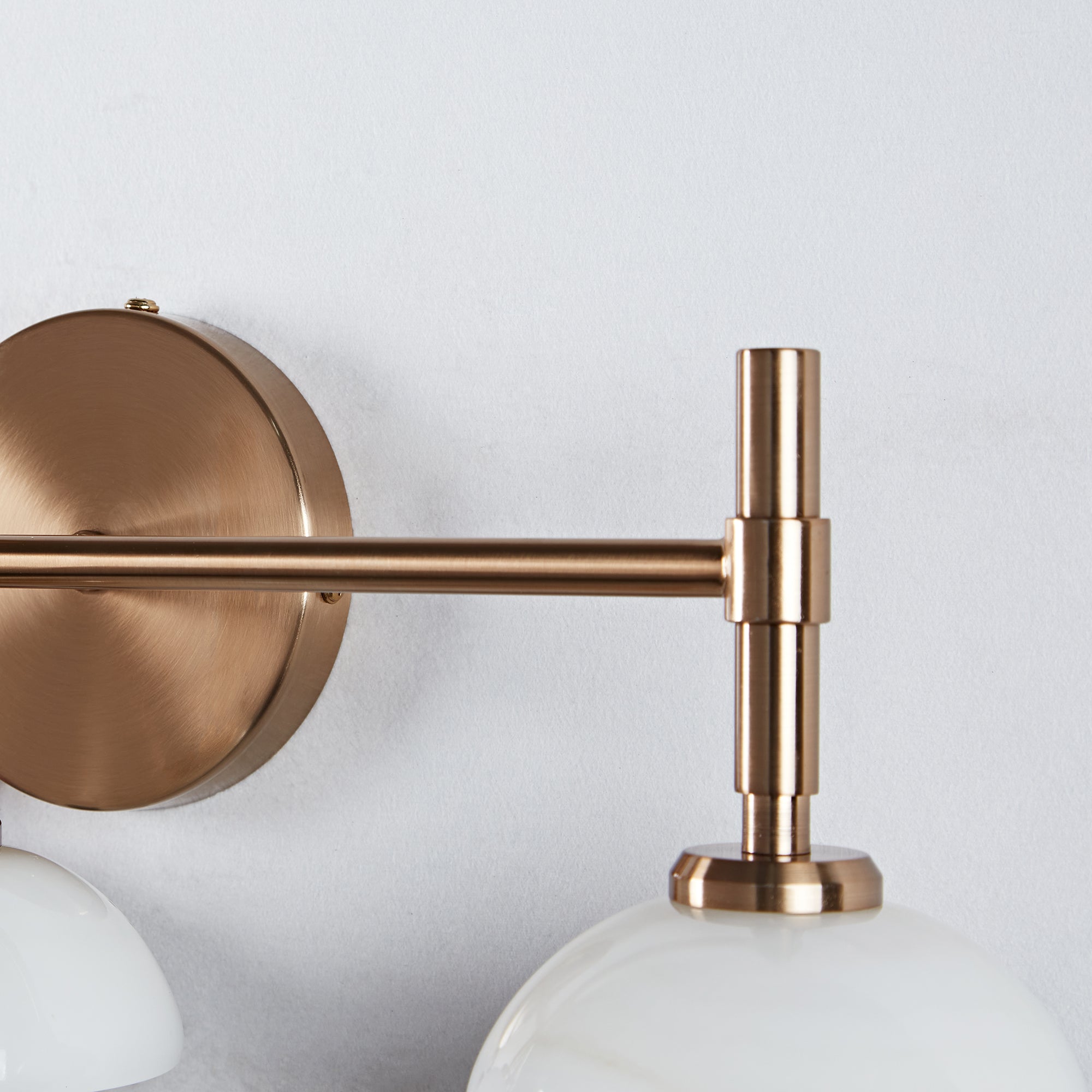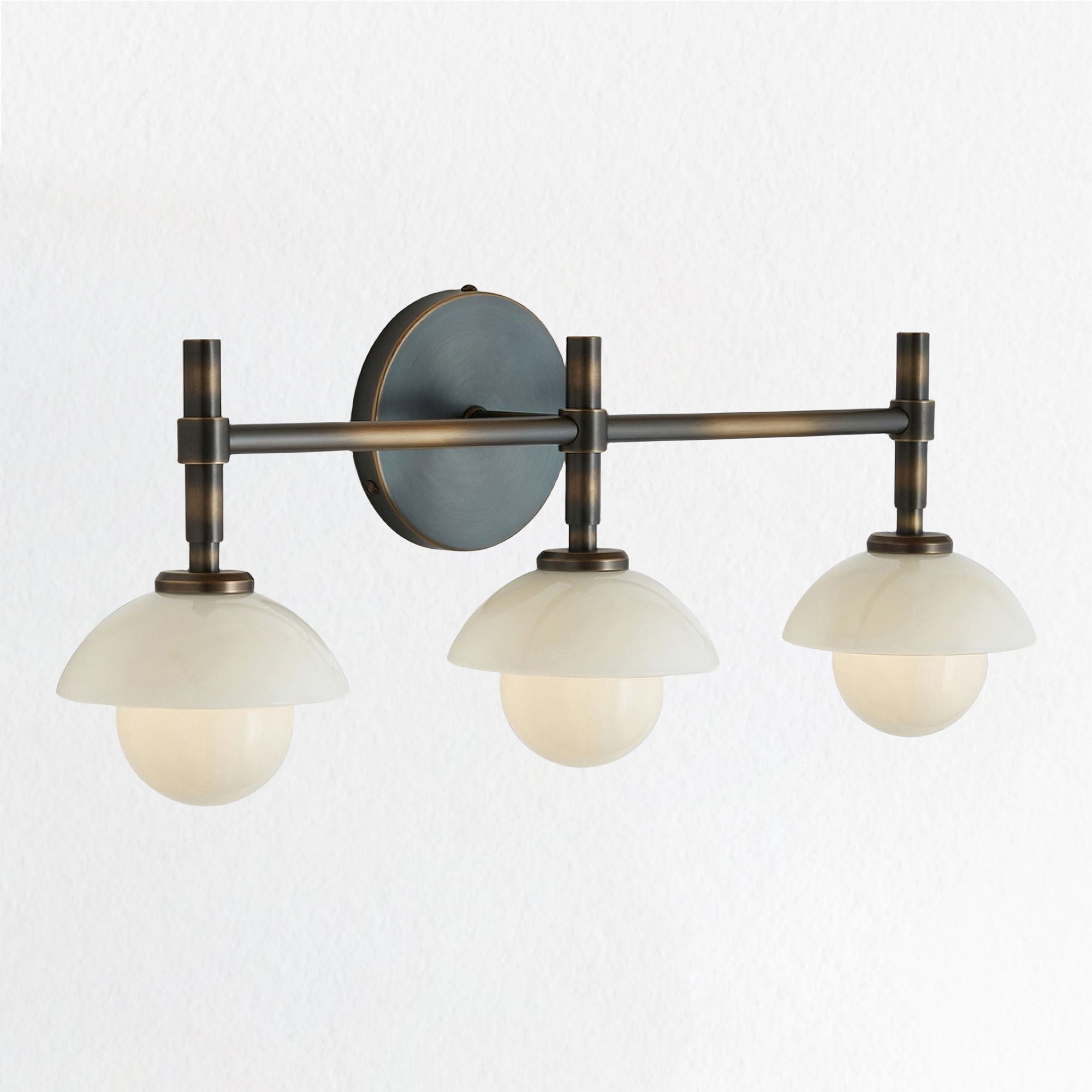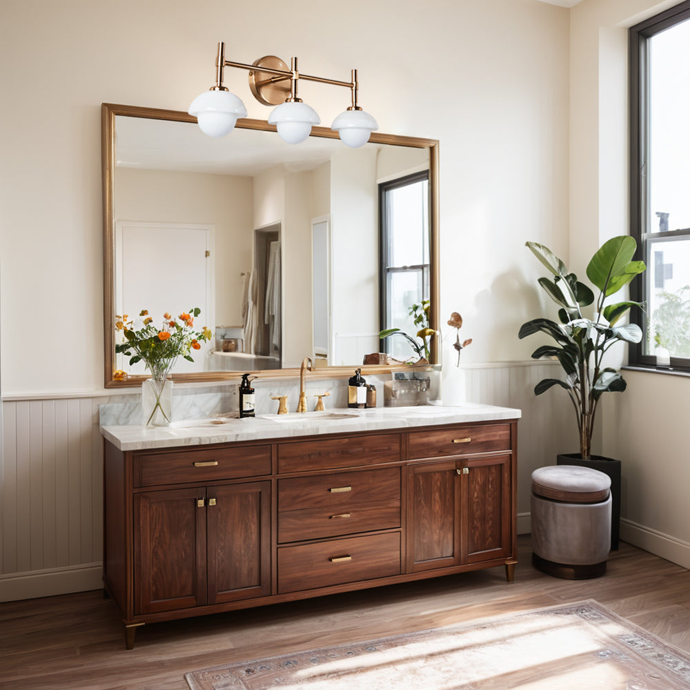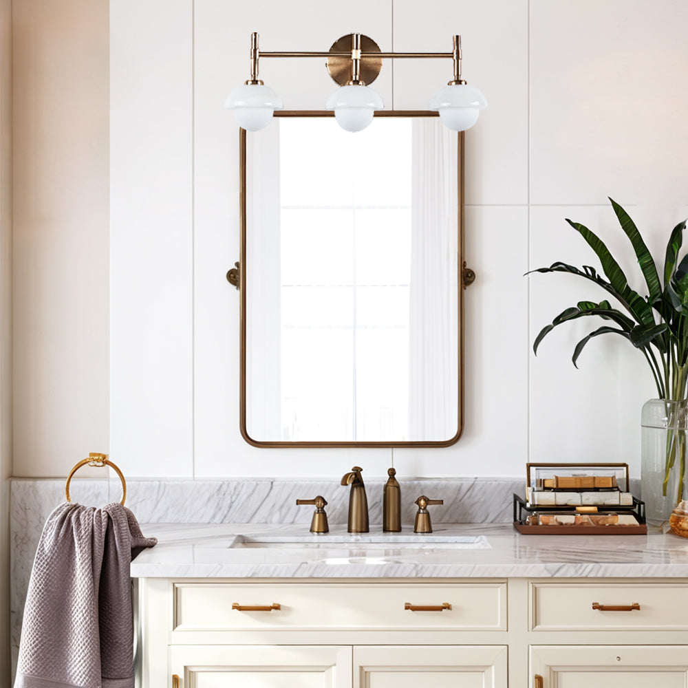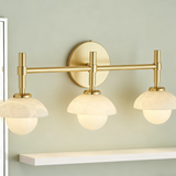 - Elegant Bathroom Sconces Collection with premium brass construction and opal or alabaster shade options for a refined look.