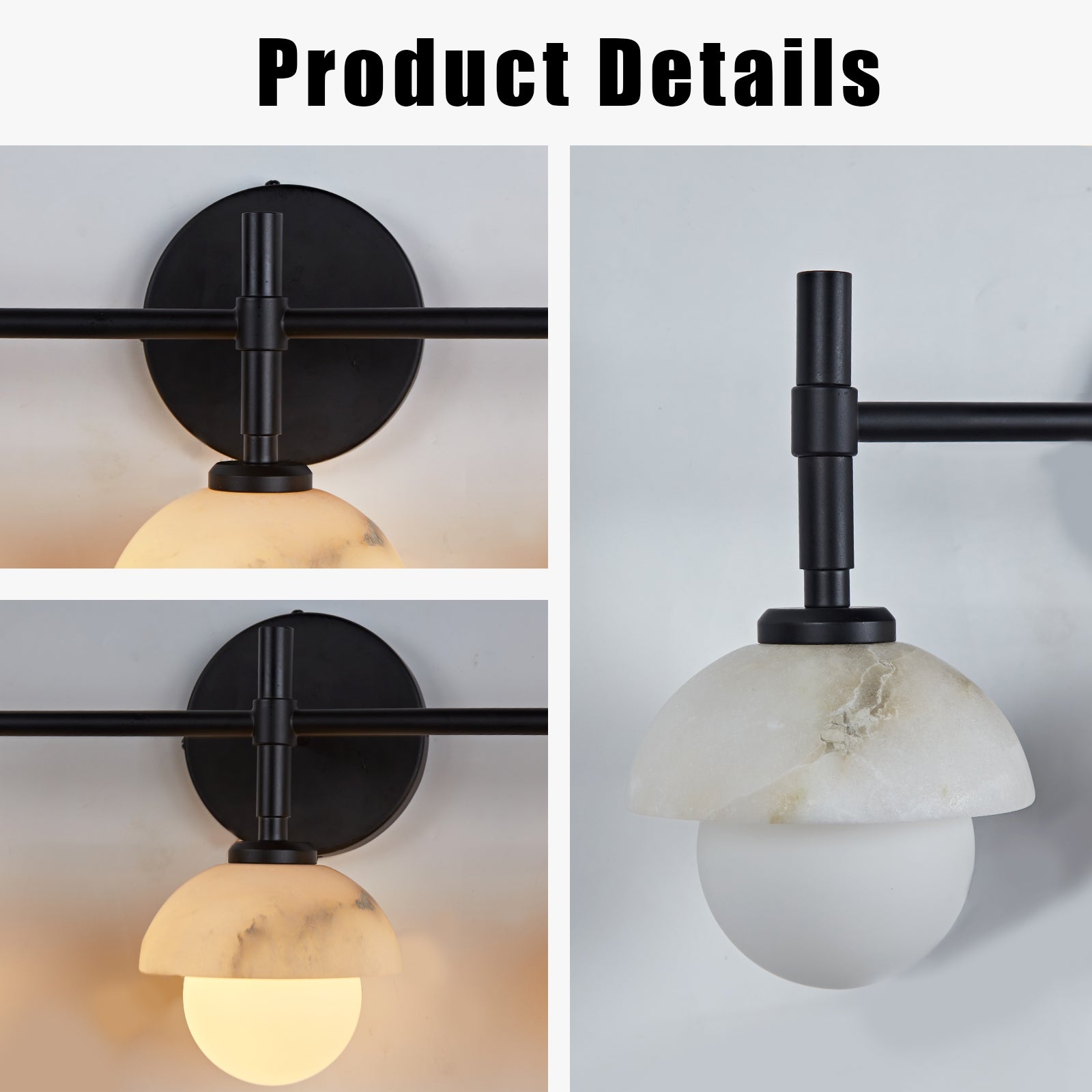 Opulent Glow Hand-Carved Alabaster Bathroom Sconce with Opal Shades - Elegant Light Fixture for Bedrooms, Bathrooms, and Living Rooms
