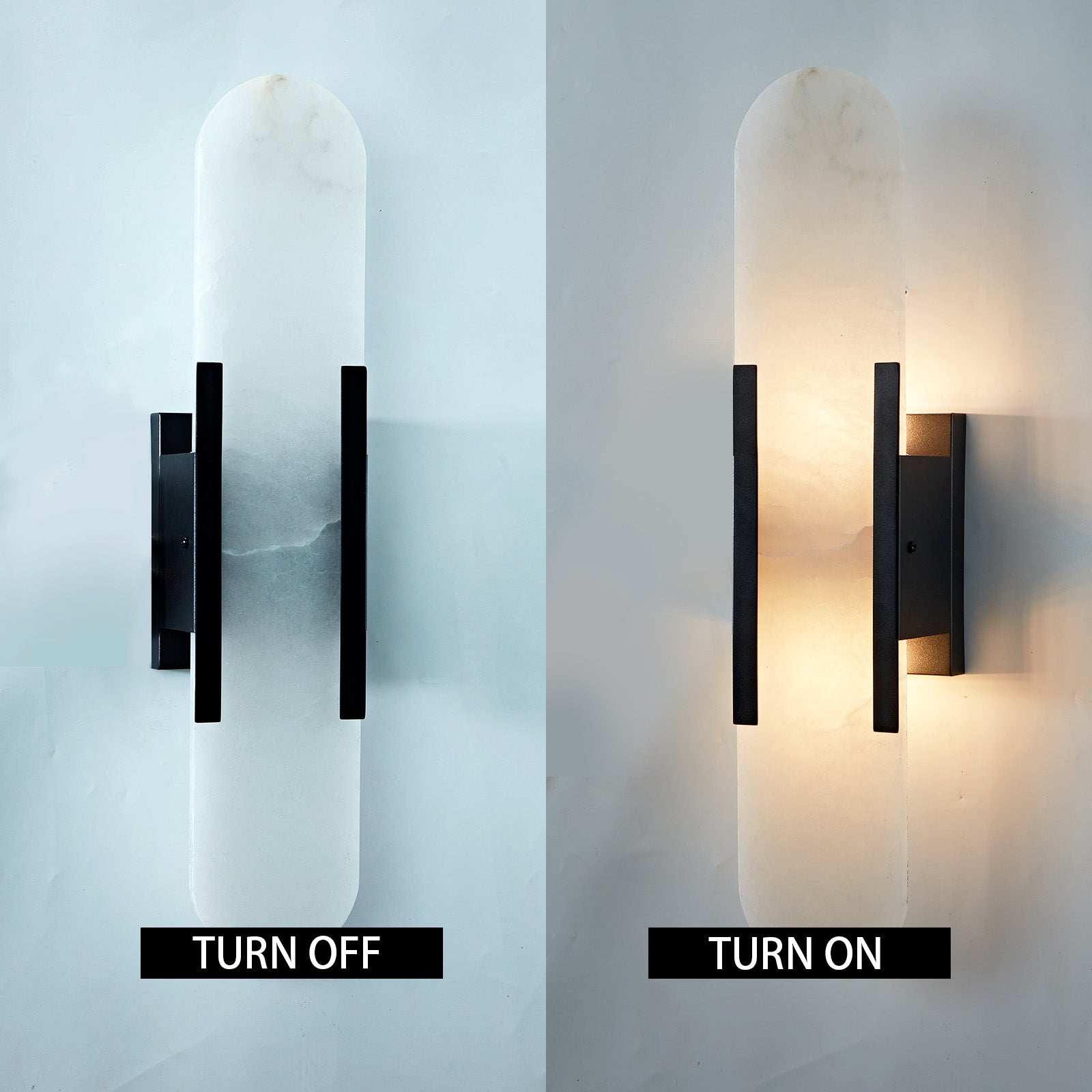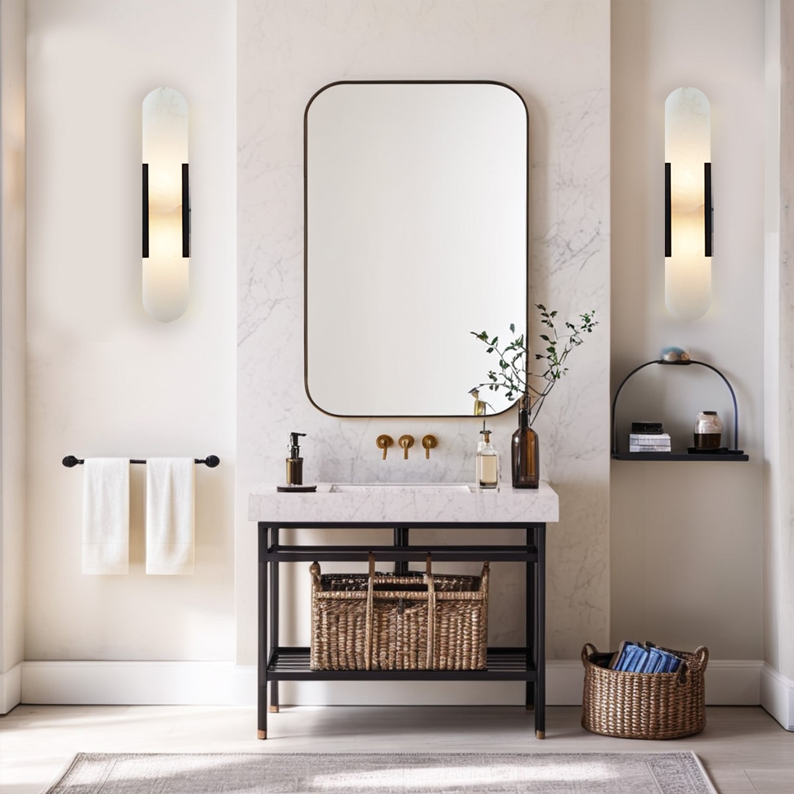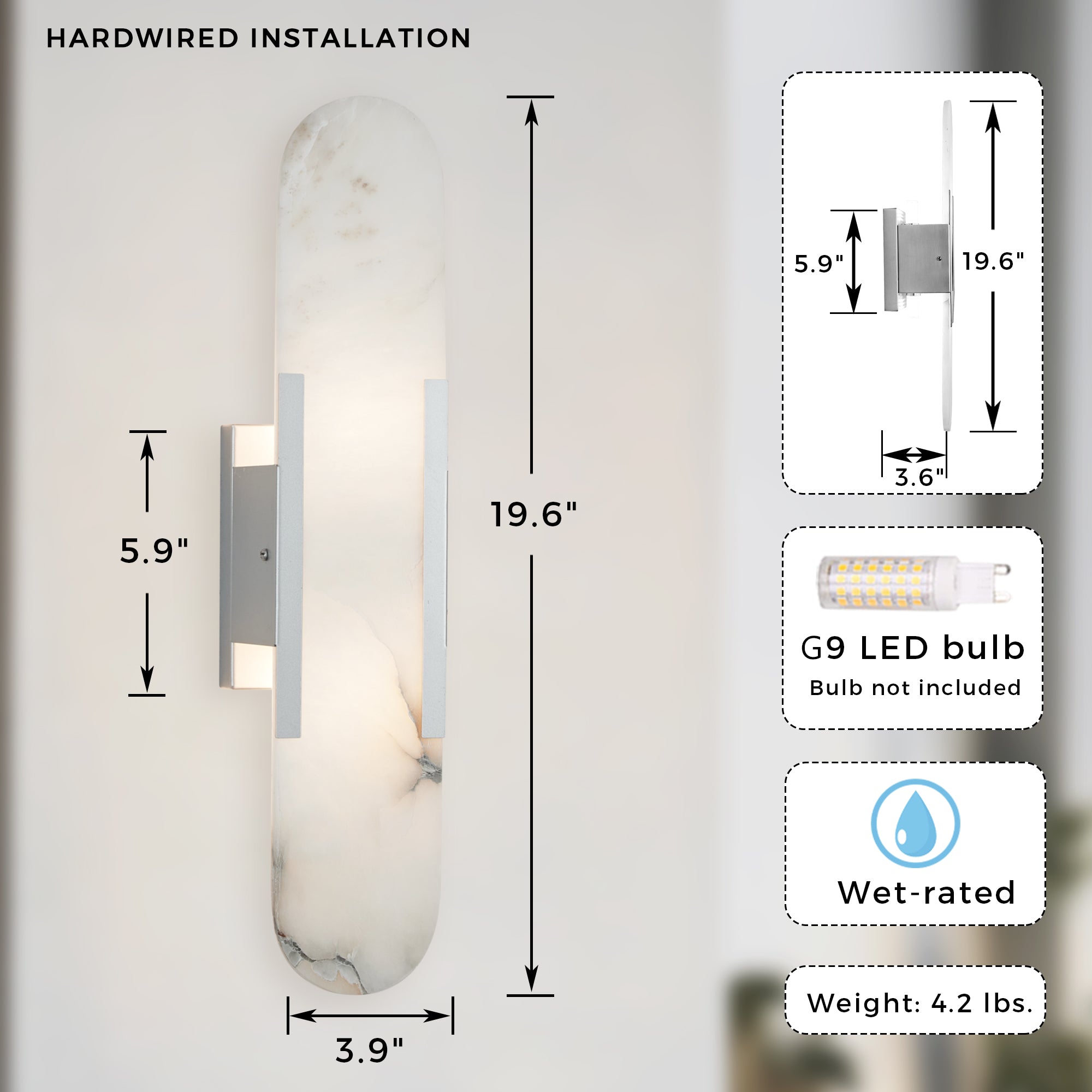 - The Sconce Light Fixture Bathroom boasts a modern and elegant design, complemented by a pure alabaster shade.