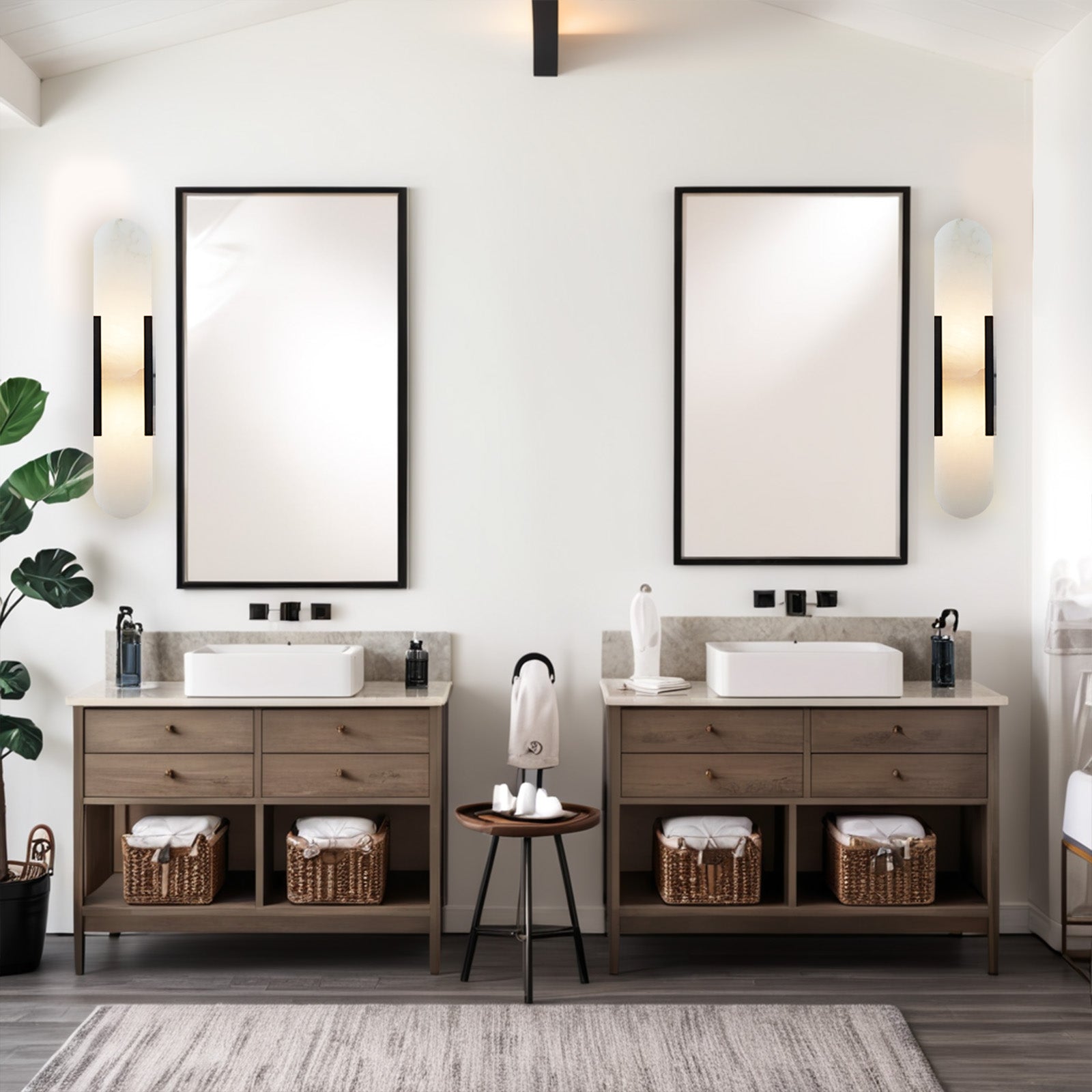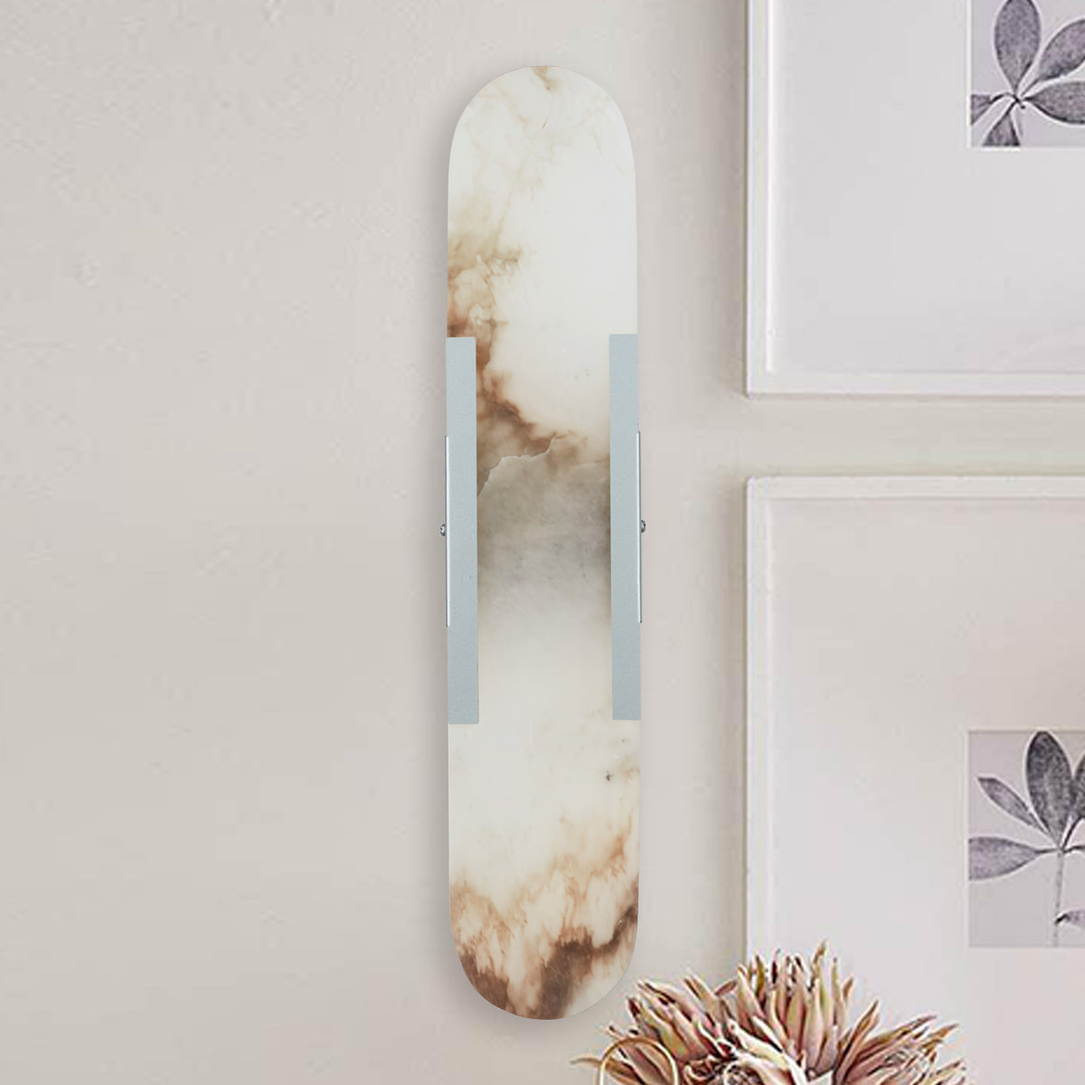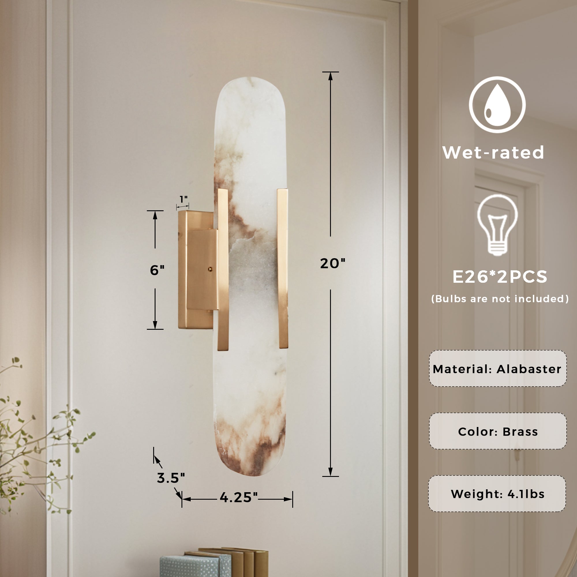 - The Sconce Light Fixture Bathroom boasts a modern and elegant design, complemented by a pure alabaster shade.