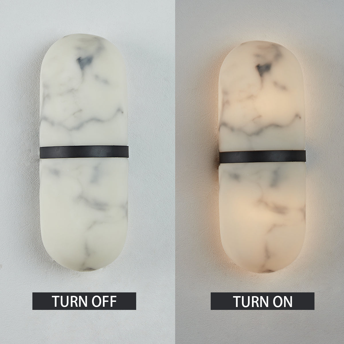 - Crafted with a metal frame and a beautiful high-quality resin that resembles alabaster, this wall sconce adds a touch of modern sophistication to any space.