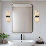 - Material and Finish: Crafted with a metal structure and a resin shade that mimics alabaster, the sconce combines durability with a touch of luxury.