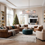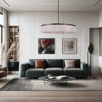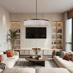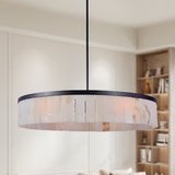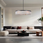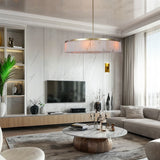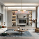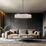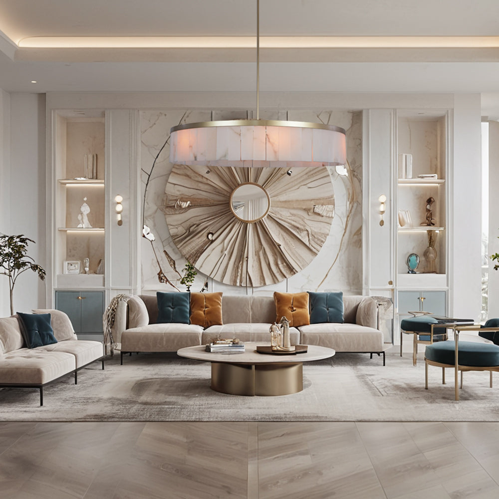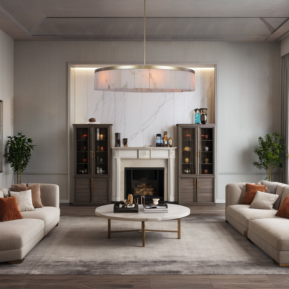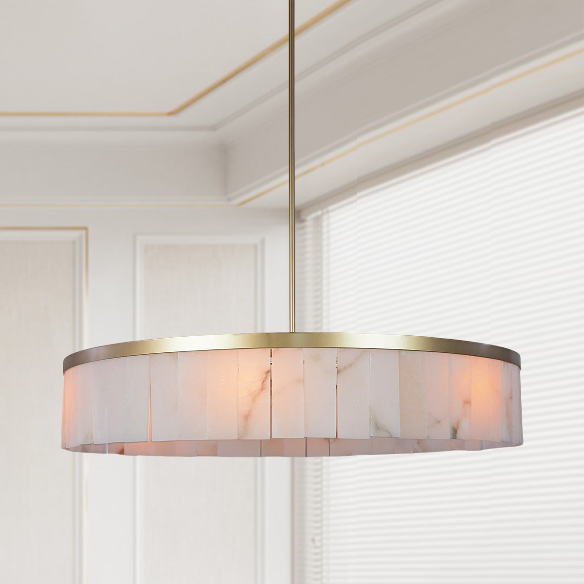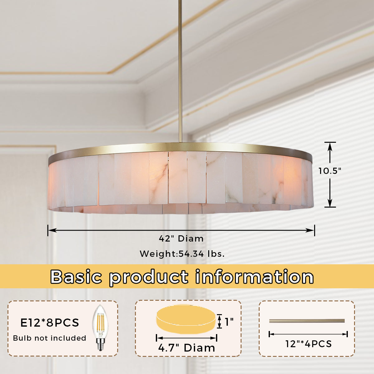 - Elevate the ambiance of your living space with our exquisite Living Room Chandelier Collection. This hanging light fixture exudes modern elegance with its iron frame adorned with solid alabaster tiles, creating a captivating focal point in any room.