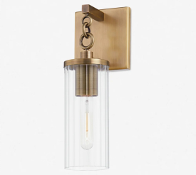 - Traditional notes meet modern design in this timeless sconce. The brass finish has a beautiful patina balanced by the sparkling sophistication of a borosilicate glass shade for a sconce light you can style indoors or out—perfect for a stately entryway or hall.