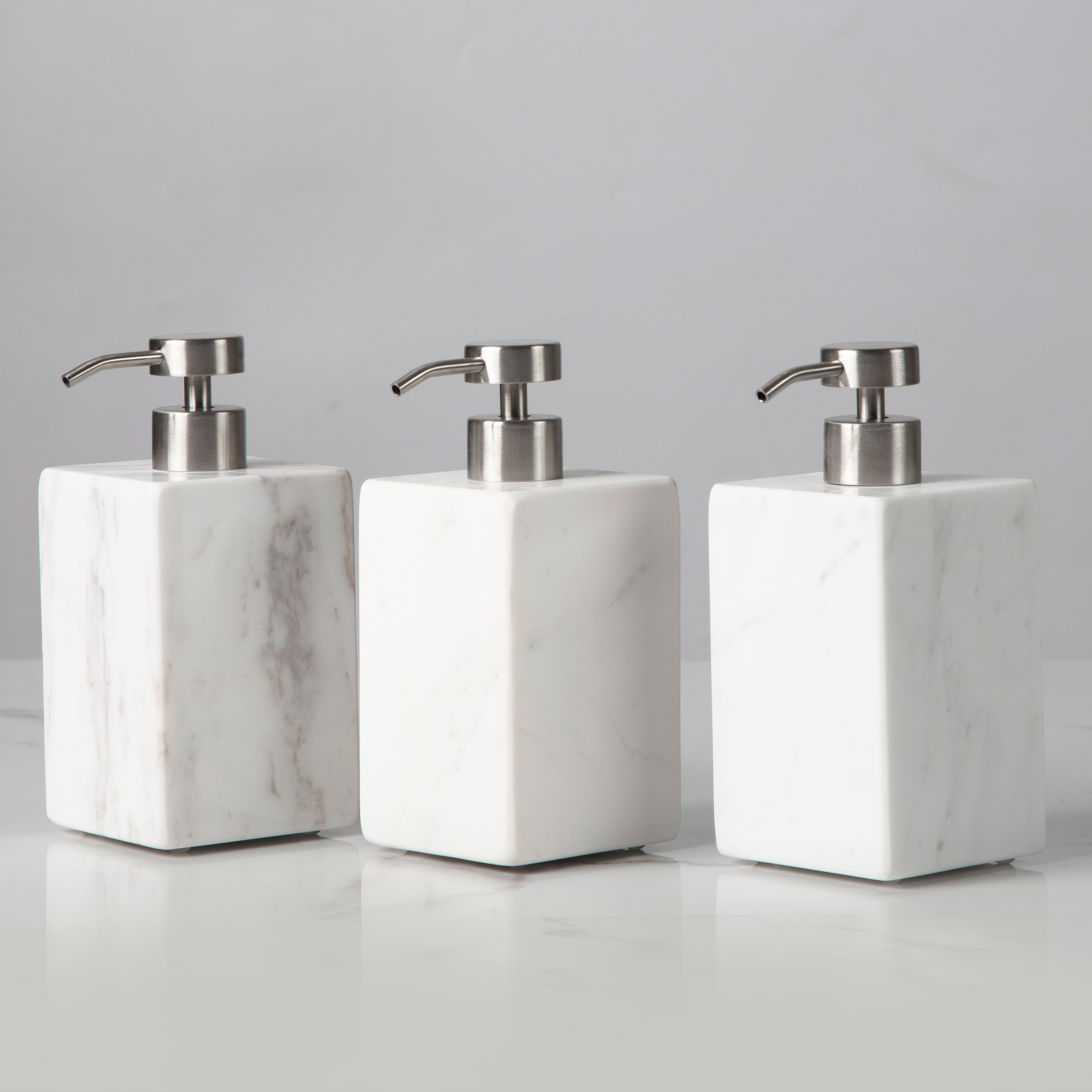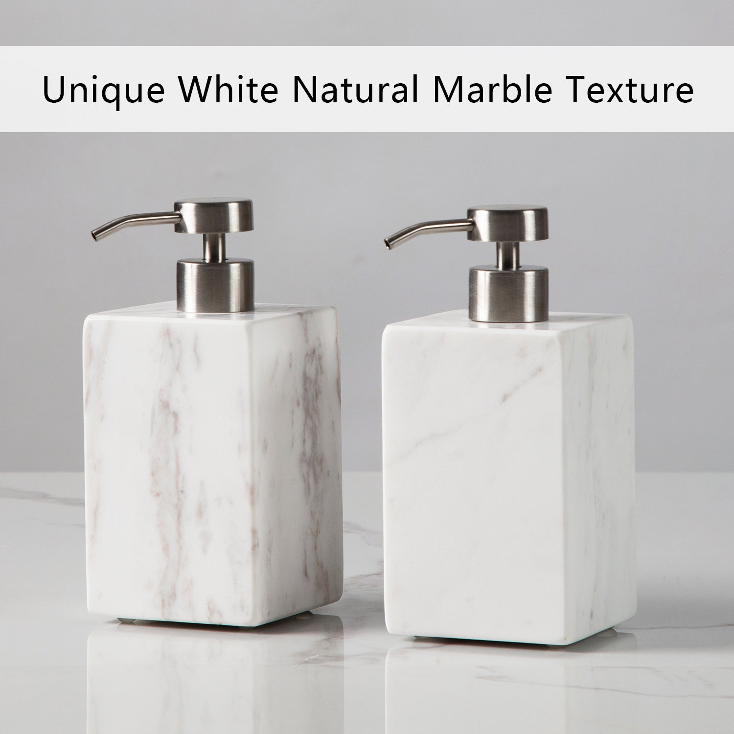 - The soap pump are made of white marble, black marble, travertine, silver dragon marble, square white marble composition, The natural veining and unique patterns in the marble or travertine make each piece one-of-a-kind.