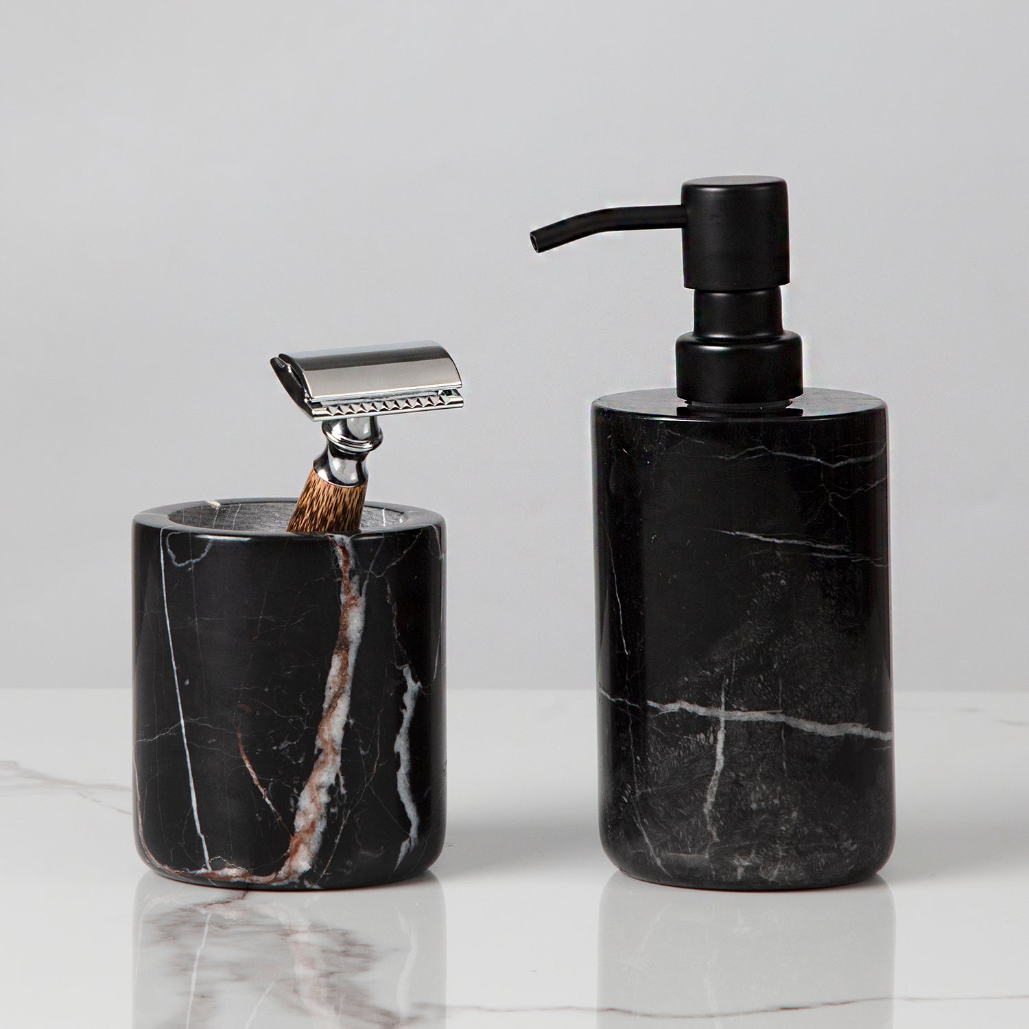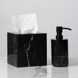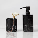 Black / White Marble/ Travertine Elegant Bath Accessories with Stainless Steel Pump - Unique Veining Collection with Soft Sheen - Transform Your Bathroom with Marble Bath Accessories