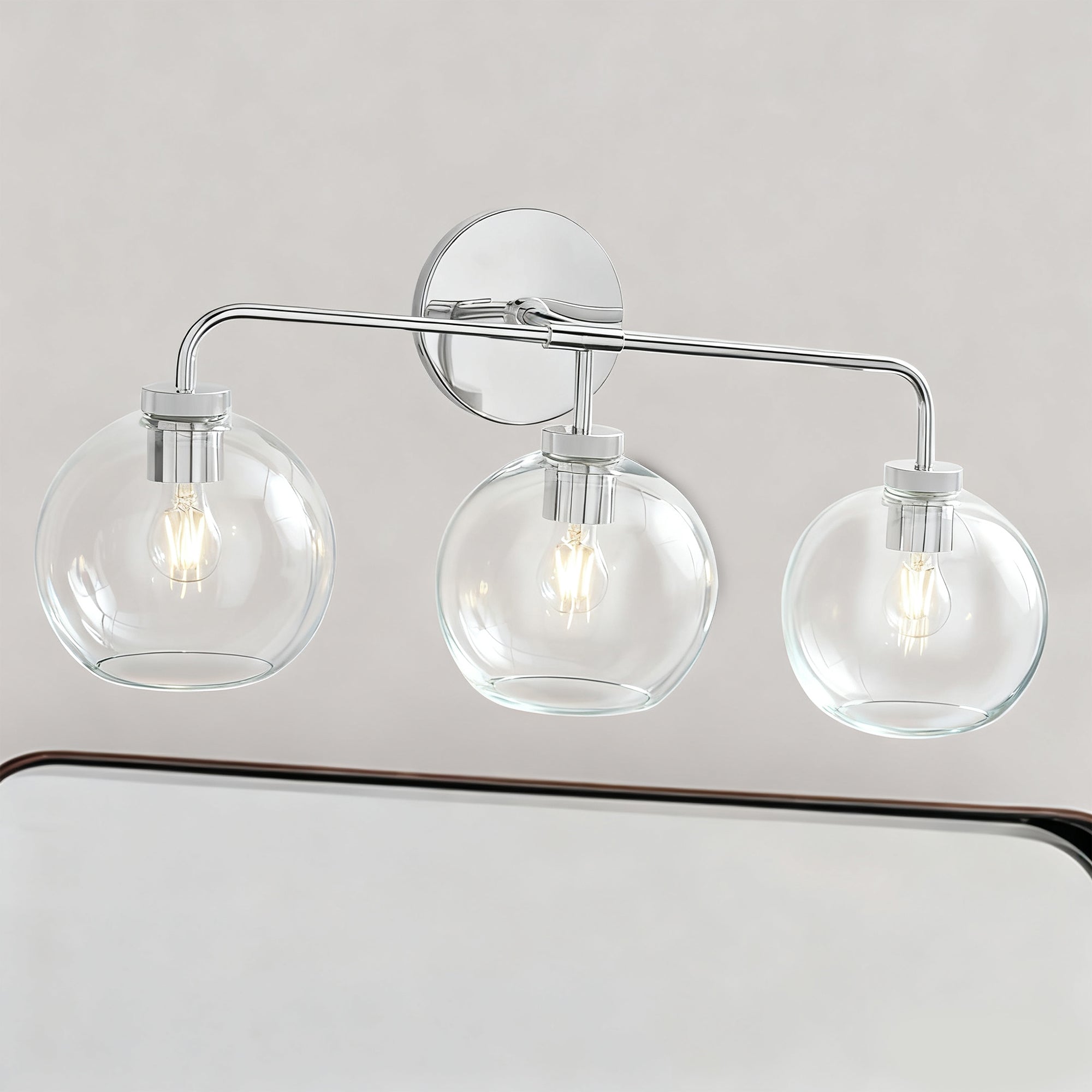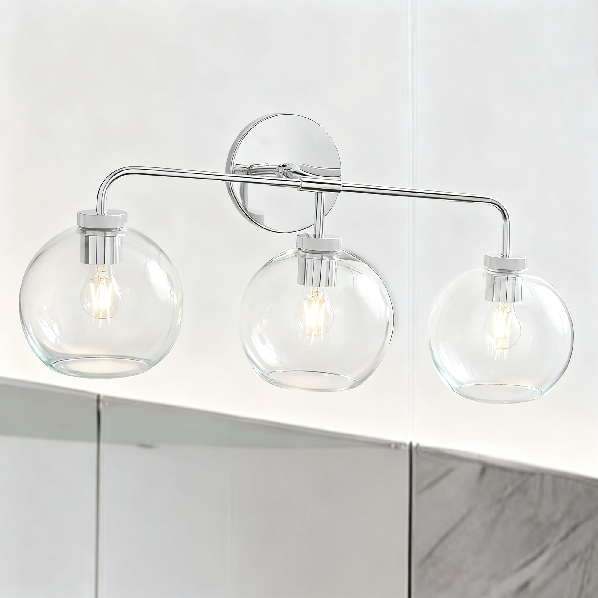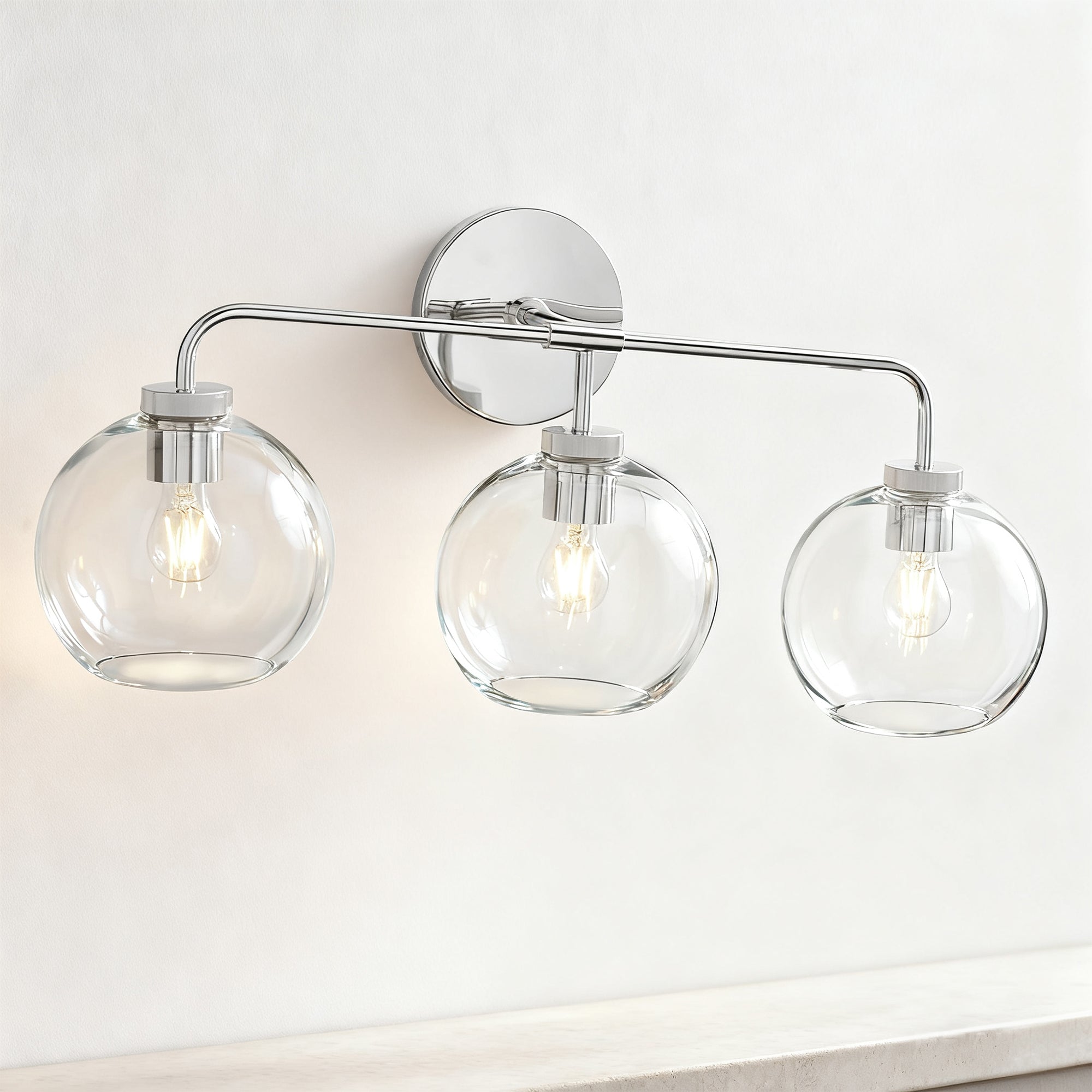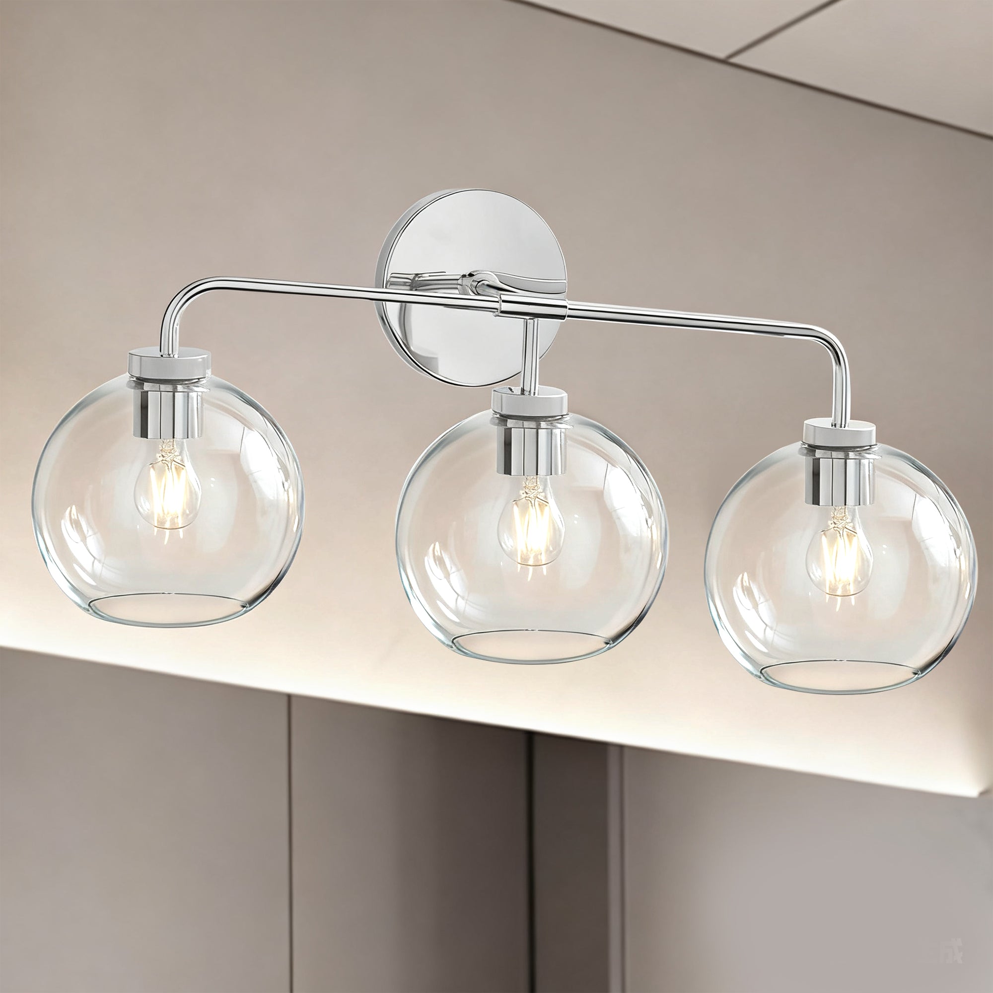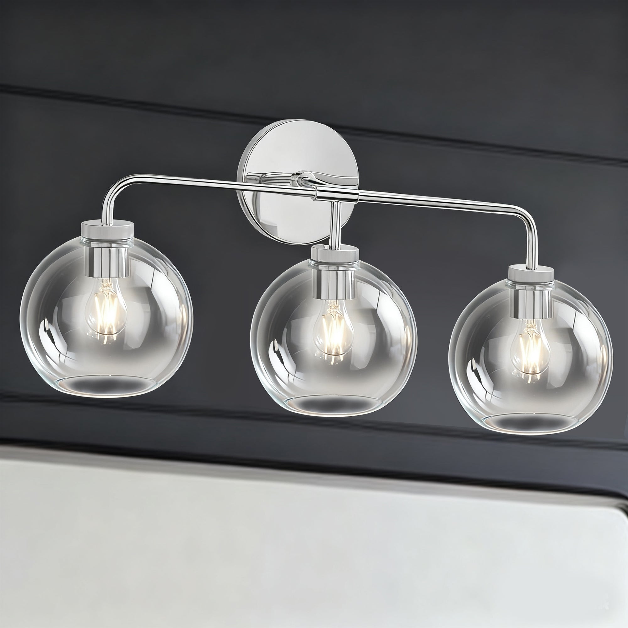 - Stylish Design: Crafted with a steel frame and blown glass, this 3-light vanity light is available in matte black, polished chrome, or brass finishes with clear glass or milk glass shades.
