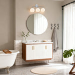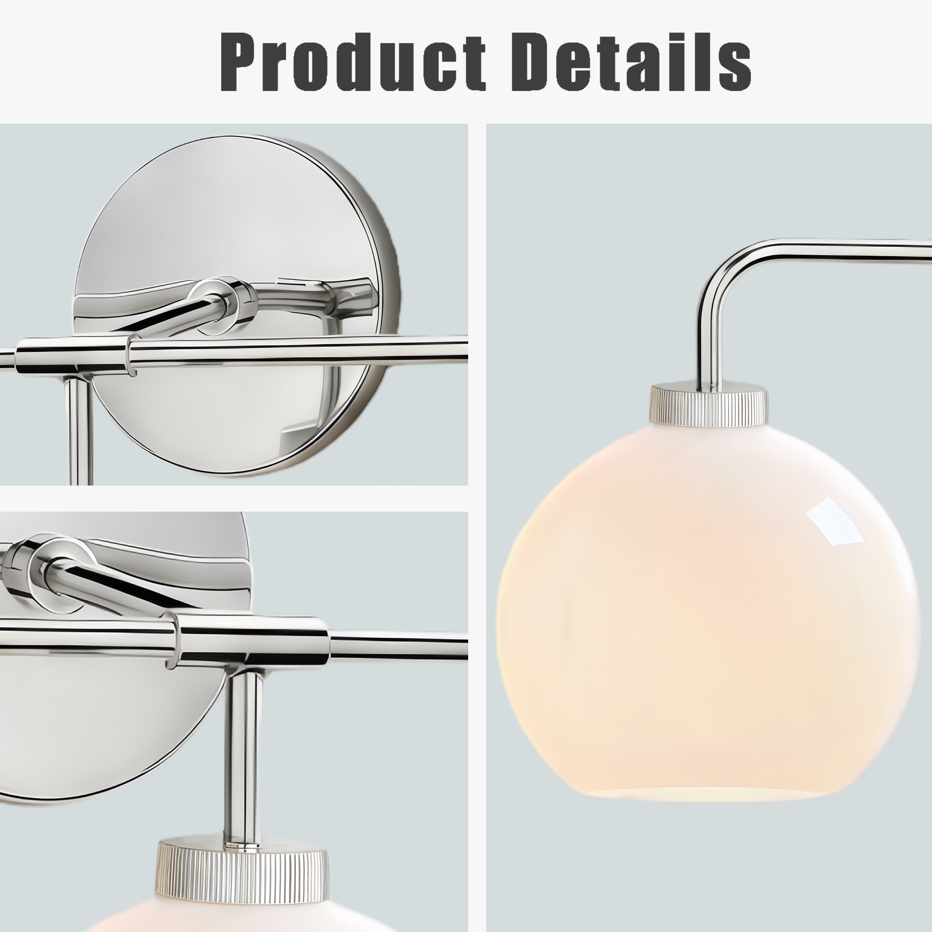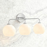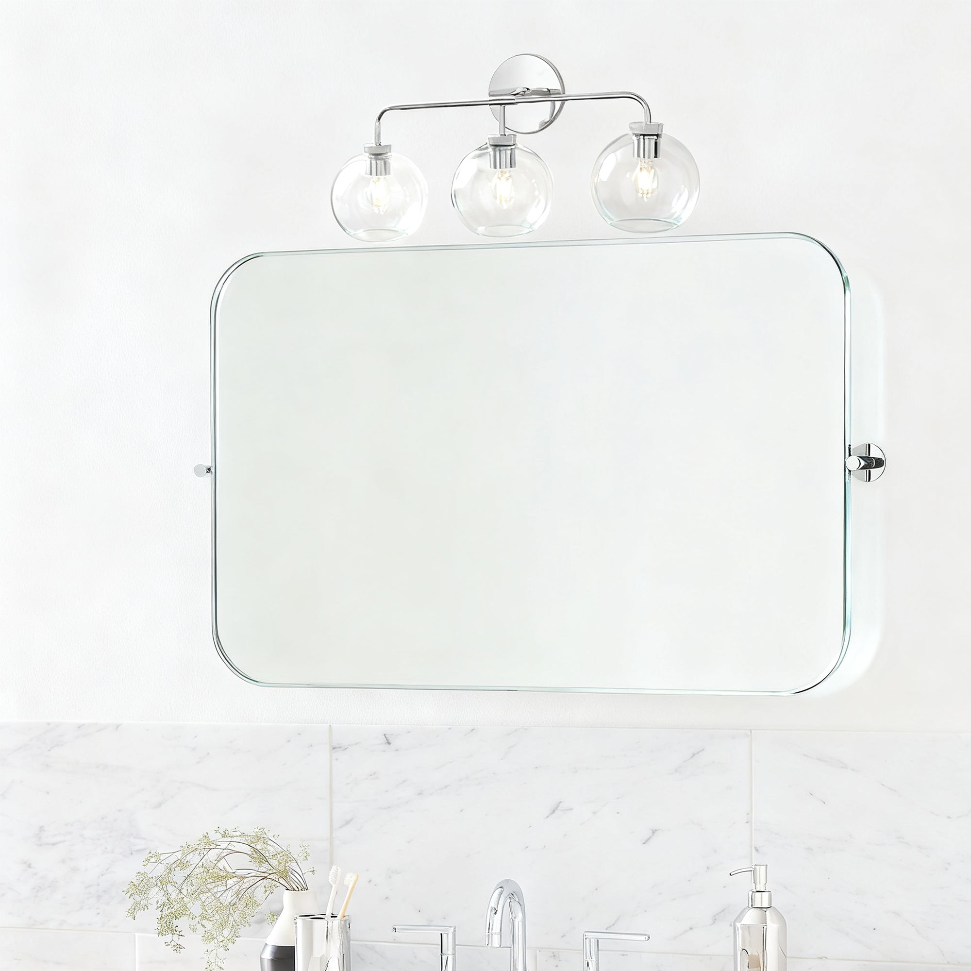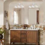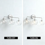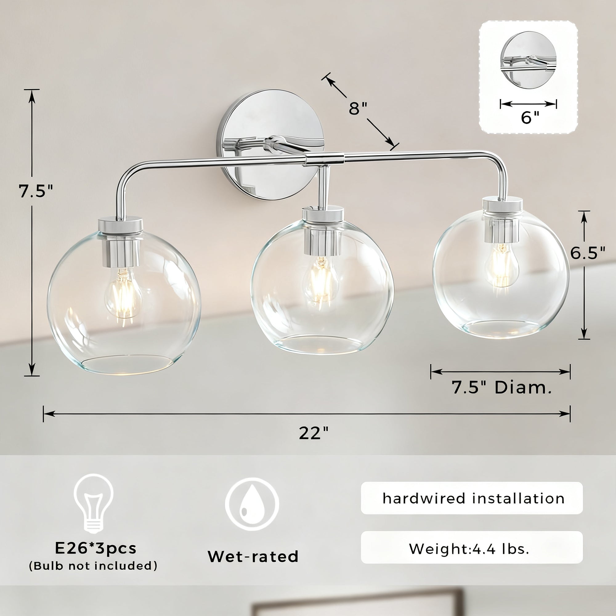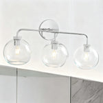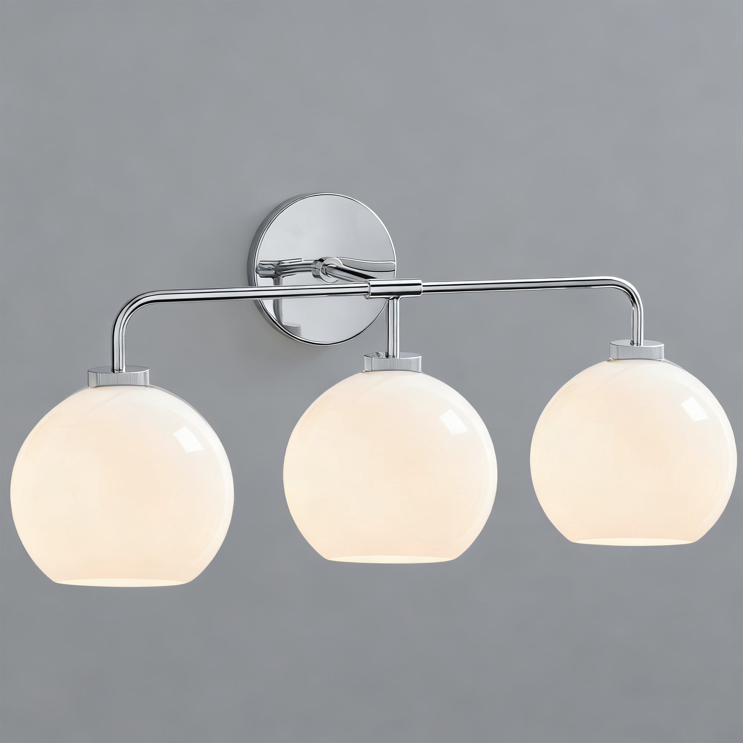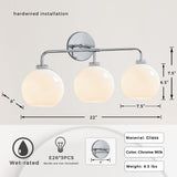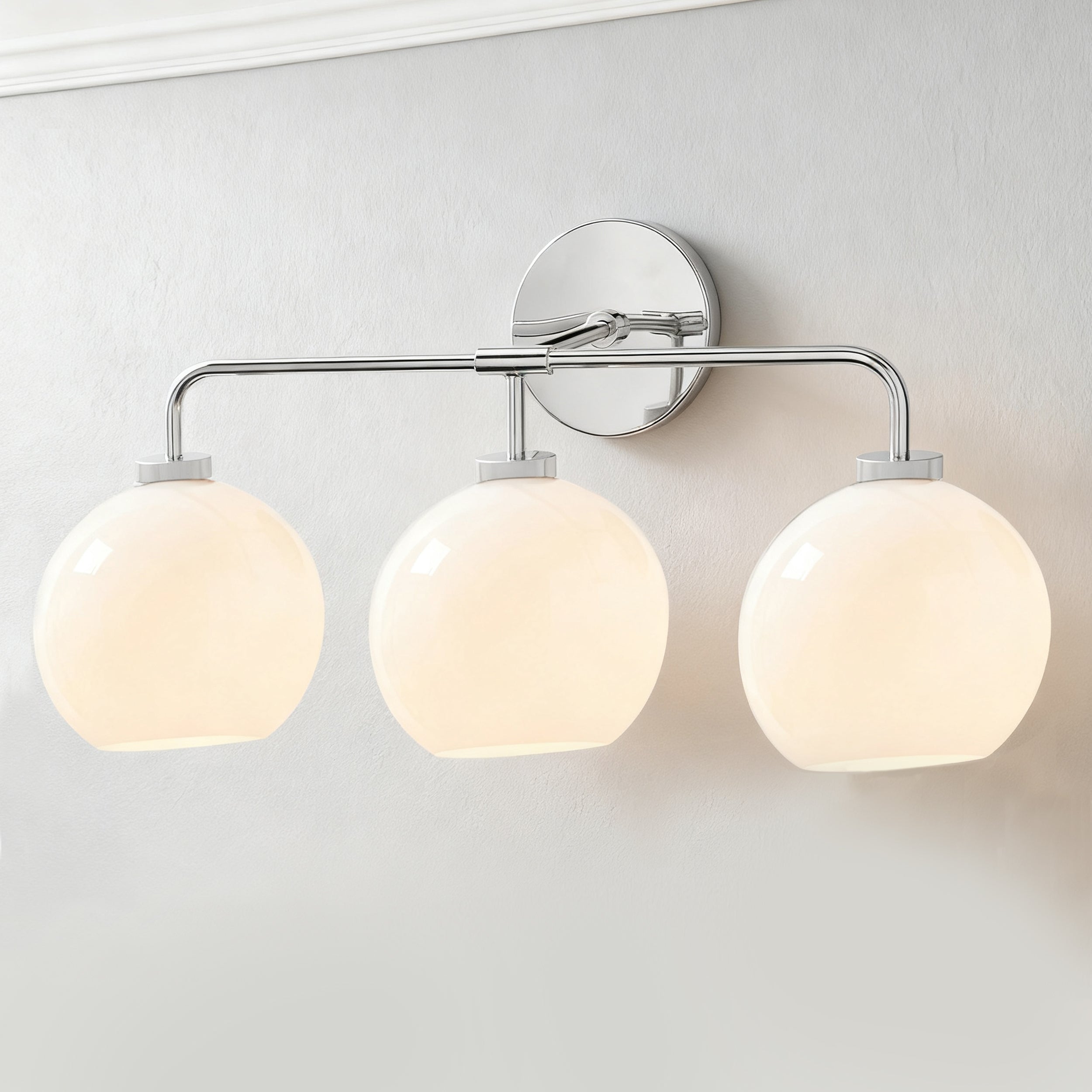 - Stylish Design: Crafted with a steel frame and blown glass, this 3-light vanity light is available in matte black, polished chrome, or brass finishes with clear glass or milk glass shades.