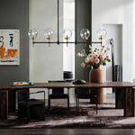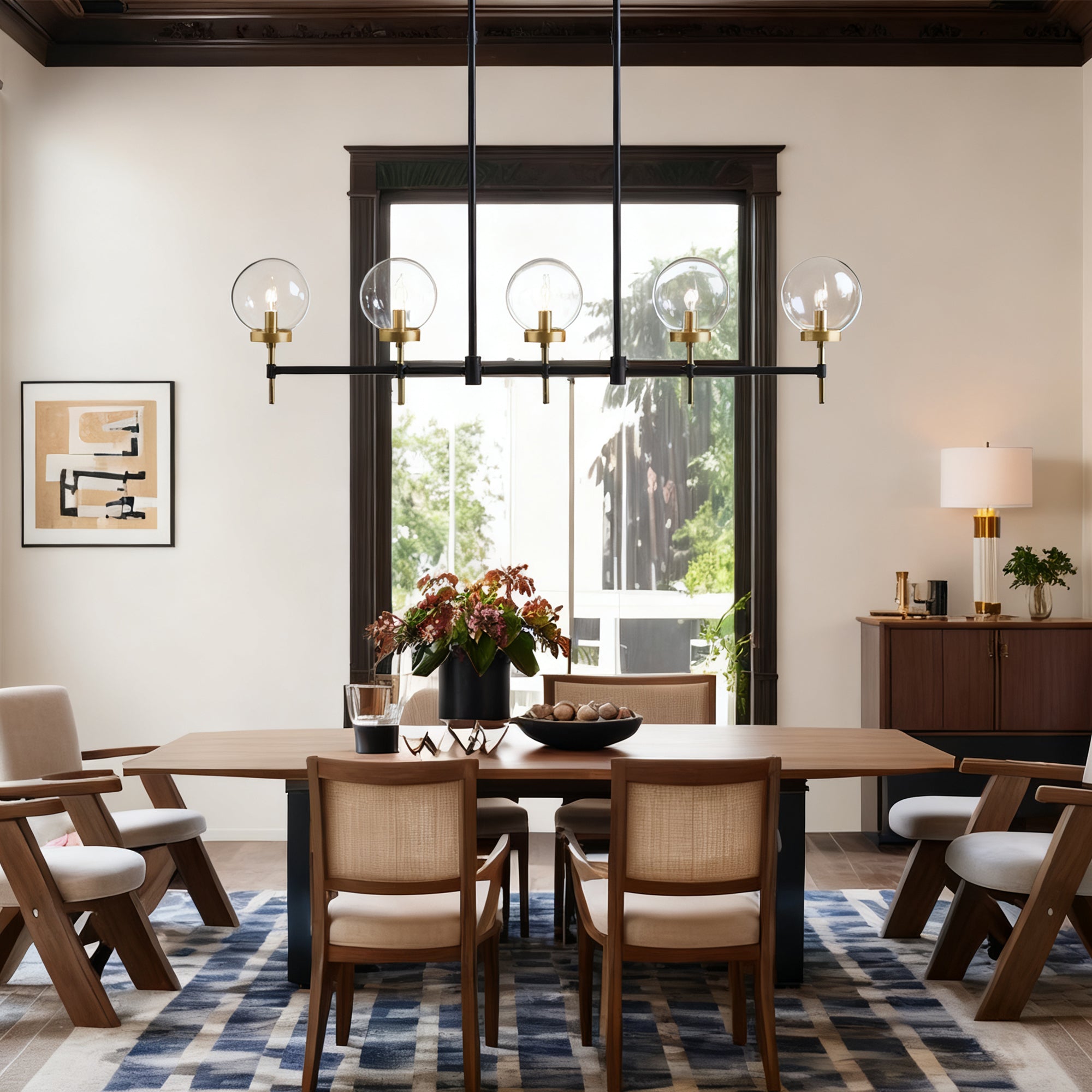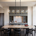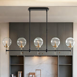 - Upgrade your dining room with this stunning Glass Globe Linear Chandelier! Perfect for dining areas, this industrial-inspired globe light fixture combines a timeless spherical silhouette with classic detailing to bring a touch of modern retro charm to your space.