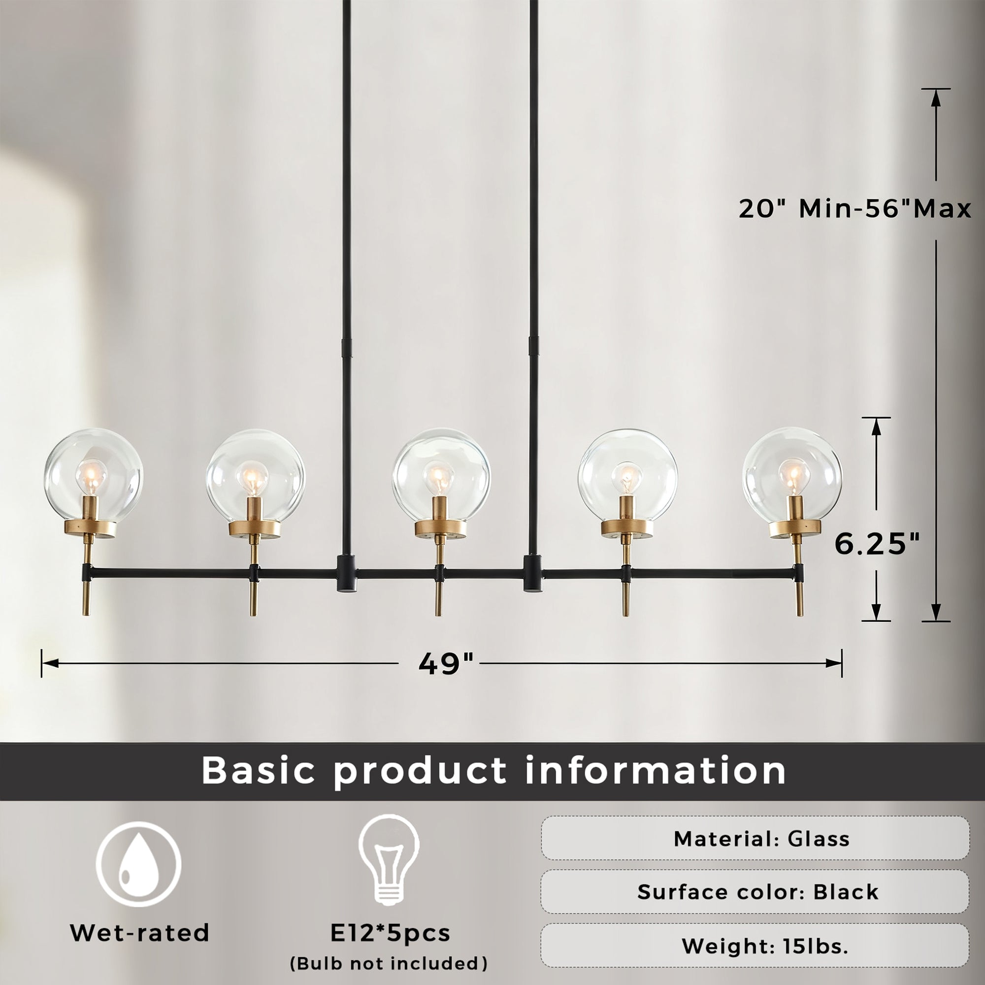 Camryn Glass Globe Linear Chandelier - Stylish Light Fixture for Dining Room and Living Room