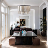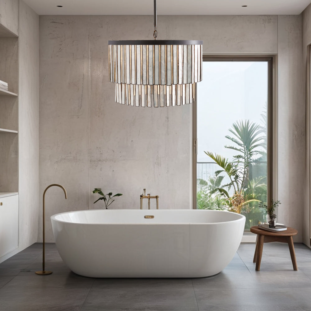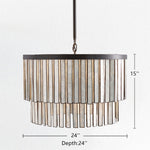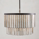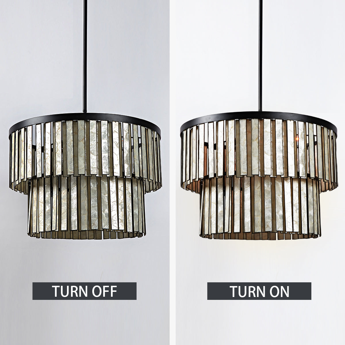 - Two tiers of handcrafted capiz pendants circle around three lights in this chandelier from our Astrid Collection, a perfect harmony of fine elegance and coastal-inspired style.