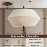 Contemporary Boho Oak Natural Cotton Weaved Pendant Light - Stylish White Oak with Cotton Rope Shade for Dining Room