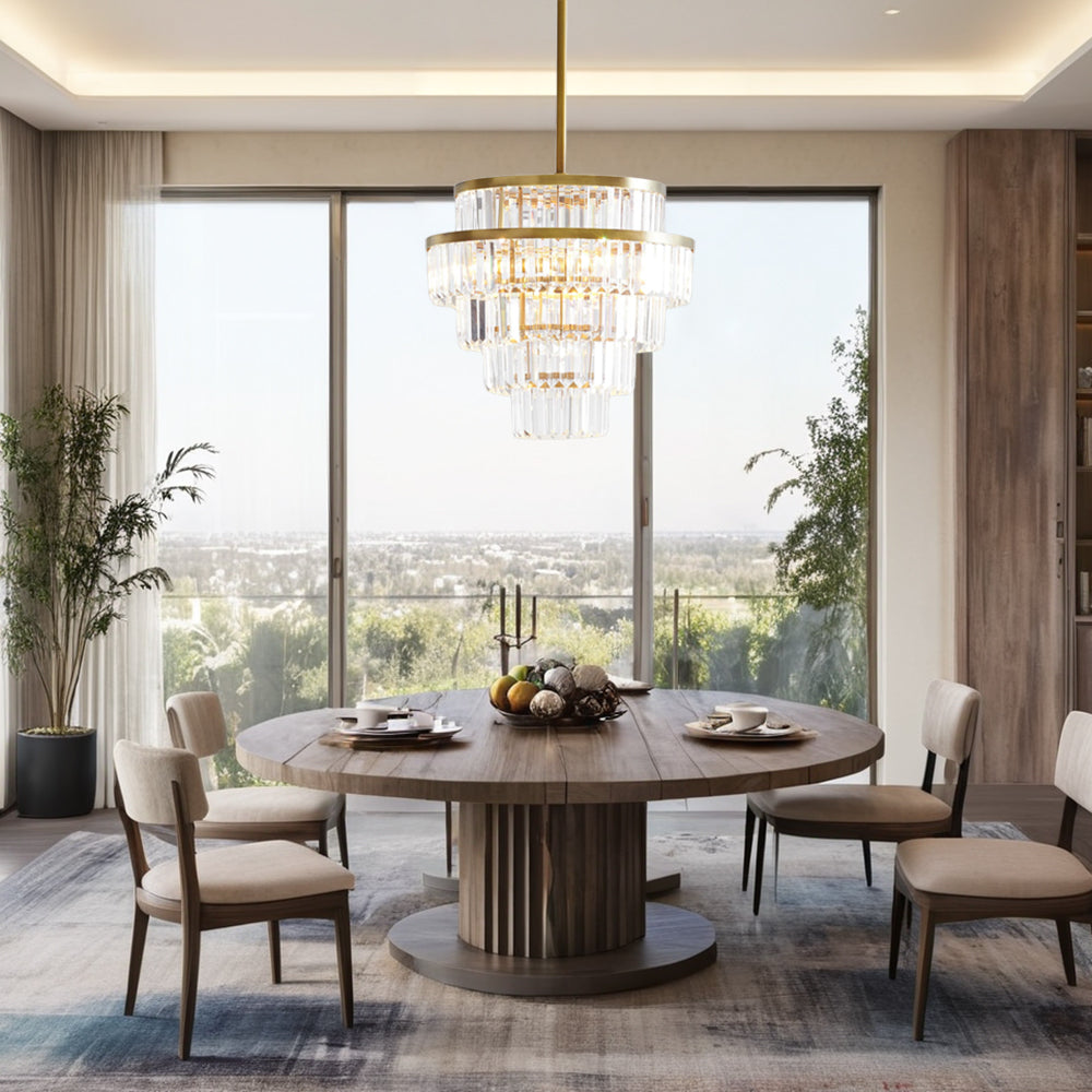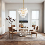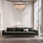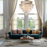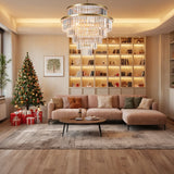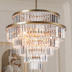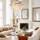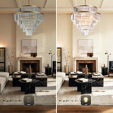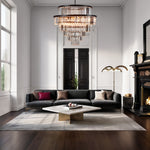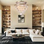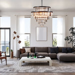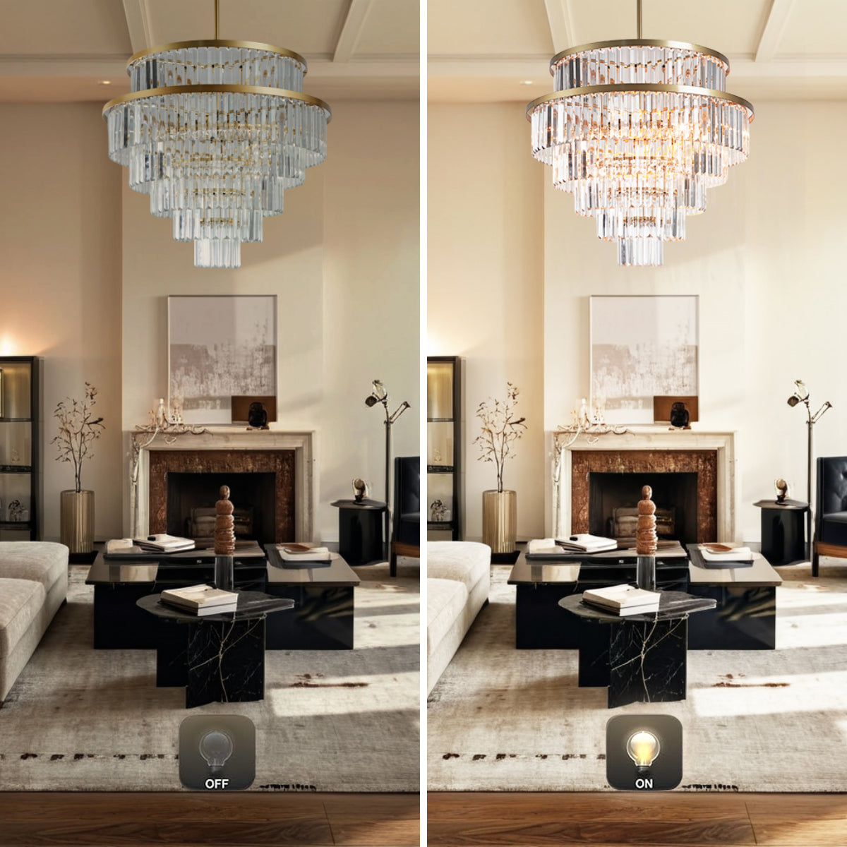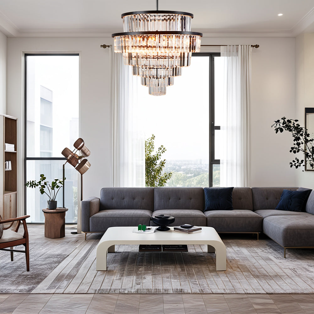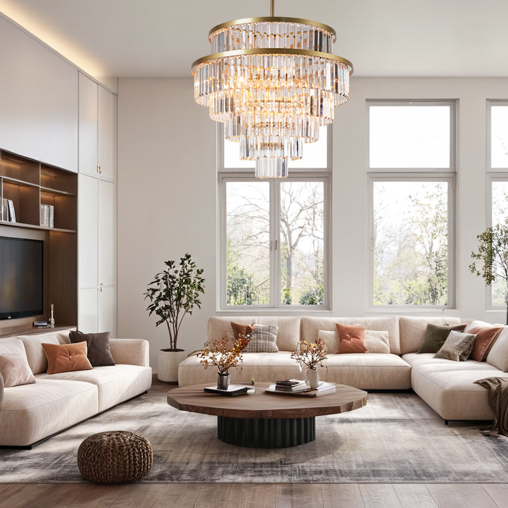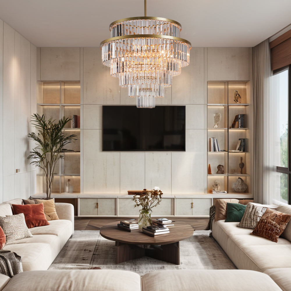 - Enhance your living room ambiance with the exquisite Luxury European Crystal 2-layer Round Chandelier, a modern chandelier for a living room environment.