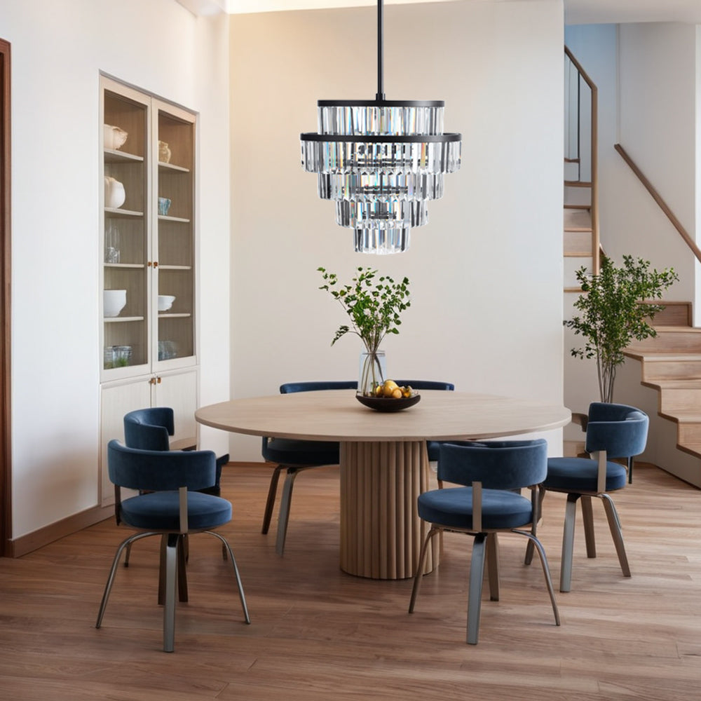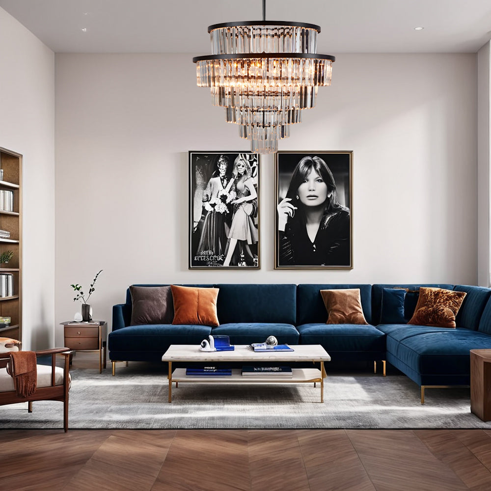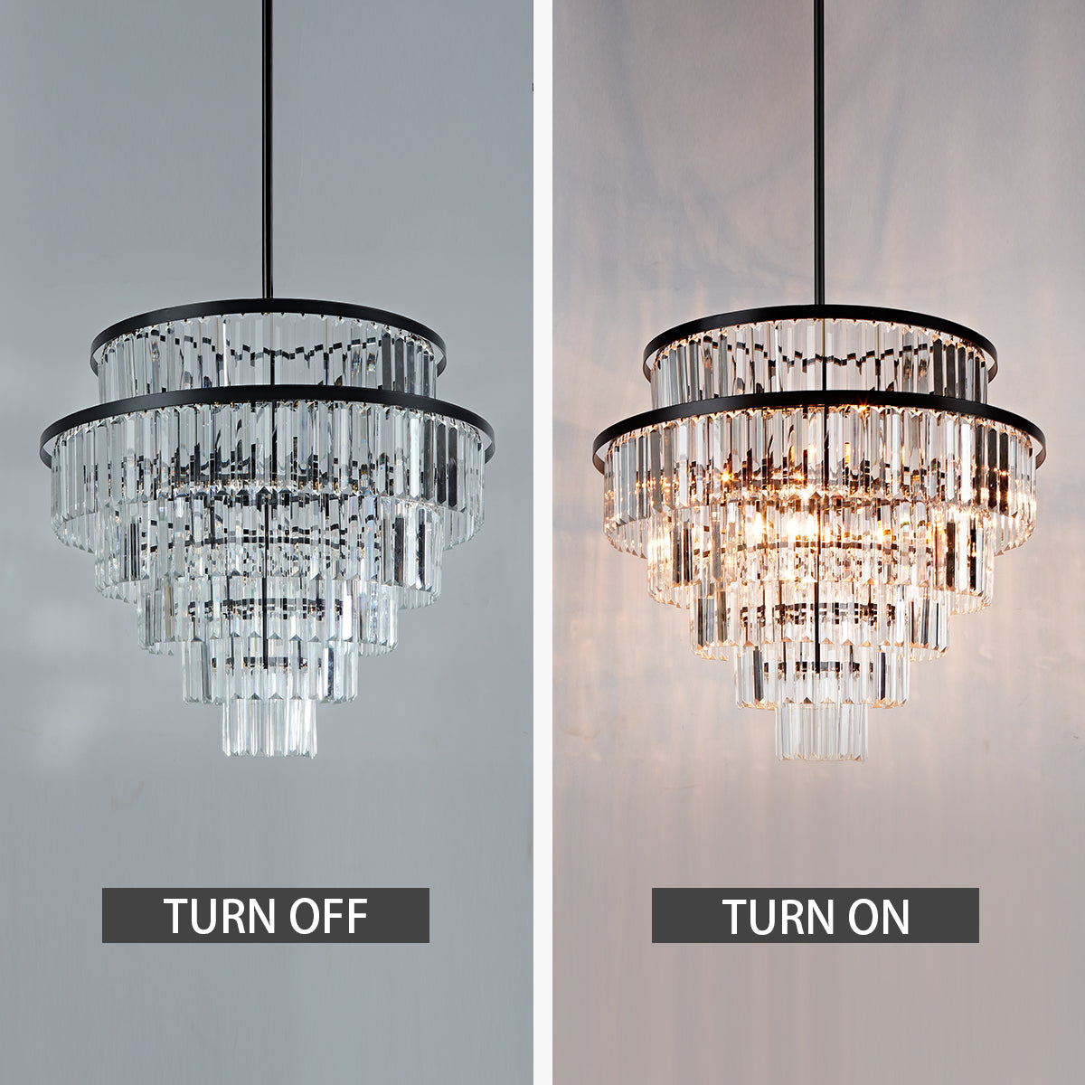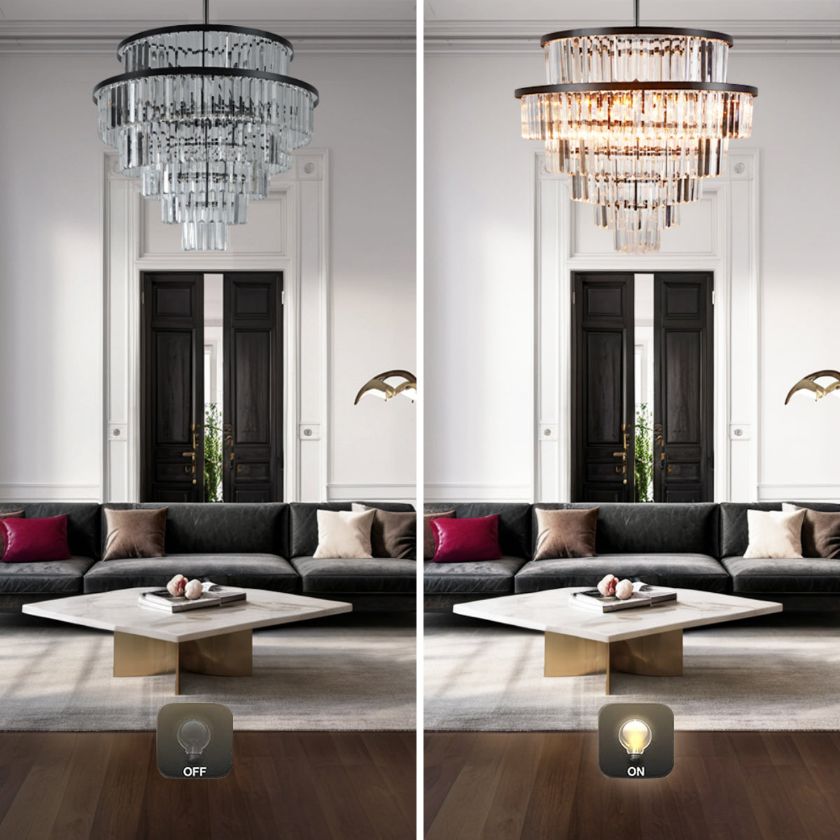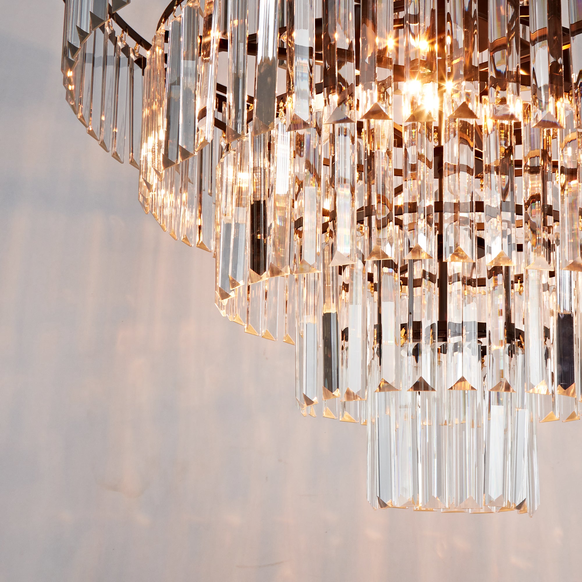 - Hang this living room chandelier above a dining table, in an entryway, or the bedroom to create a mesmerizing lighting display that sparkles and evokes a sense of drama.