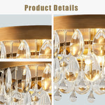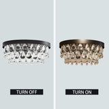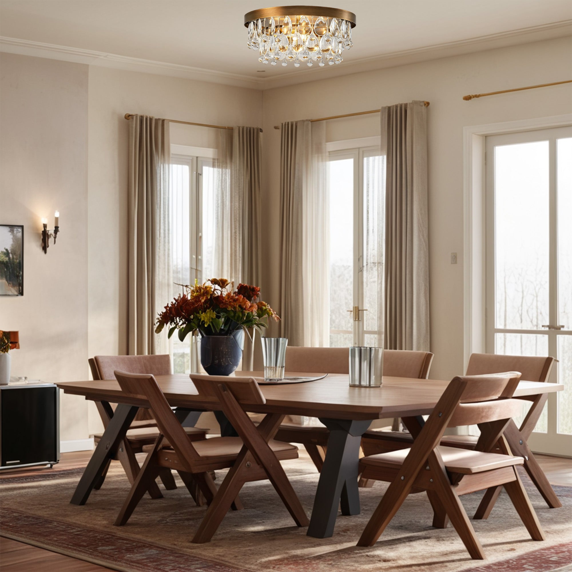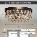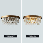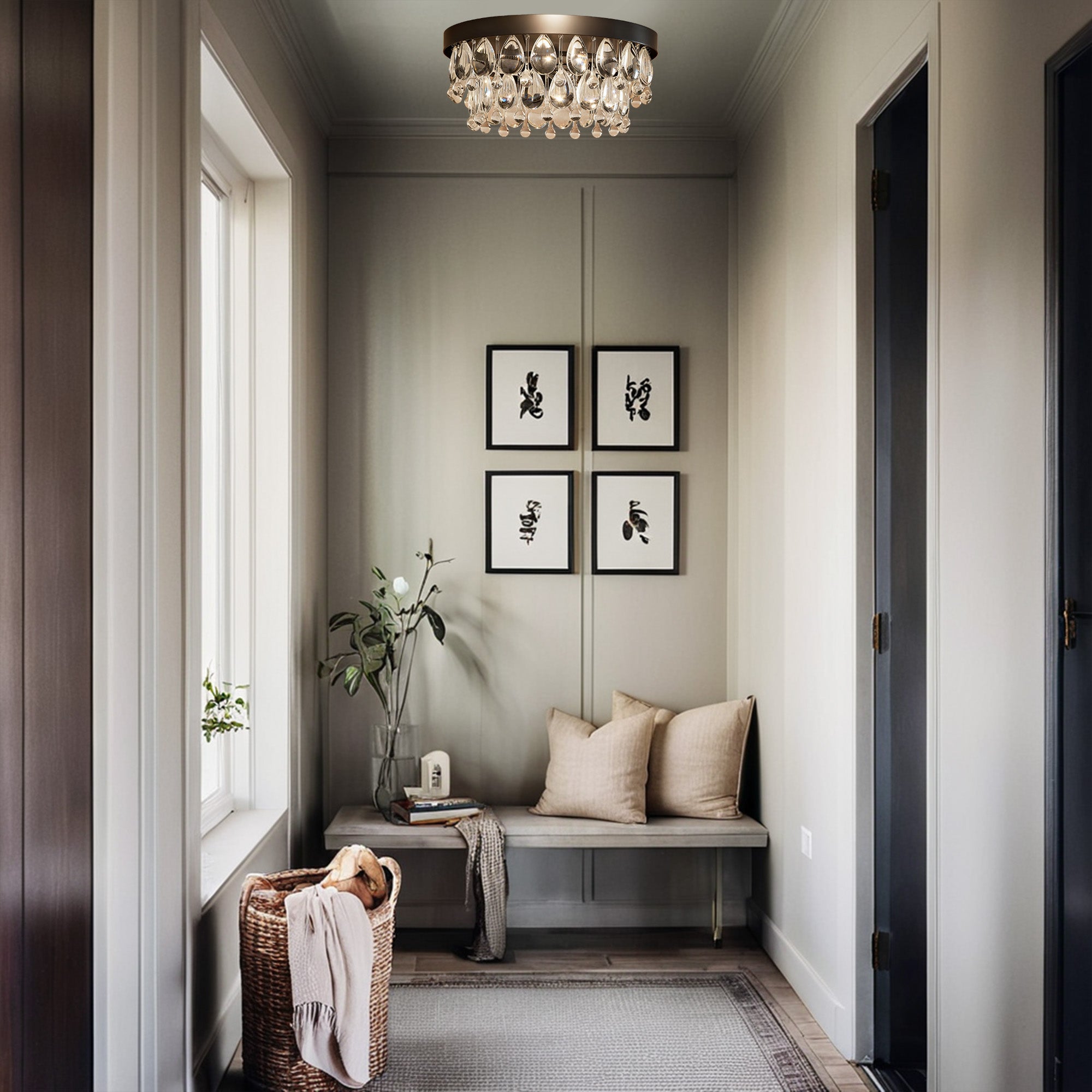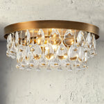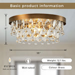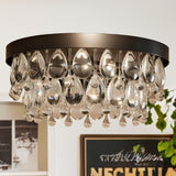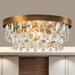 Vintage Round Crystal Flush Mount, 15 Inch Close to Ceiling Light with Crystal Drops, Modern Semi Flush Mount Ceiling Light for Bedroom, Bathroom, Entryway, Hallway