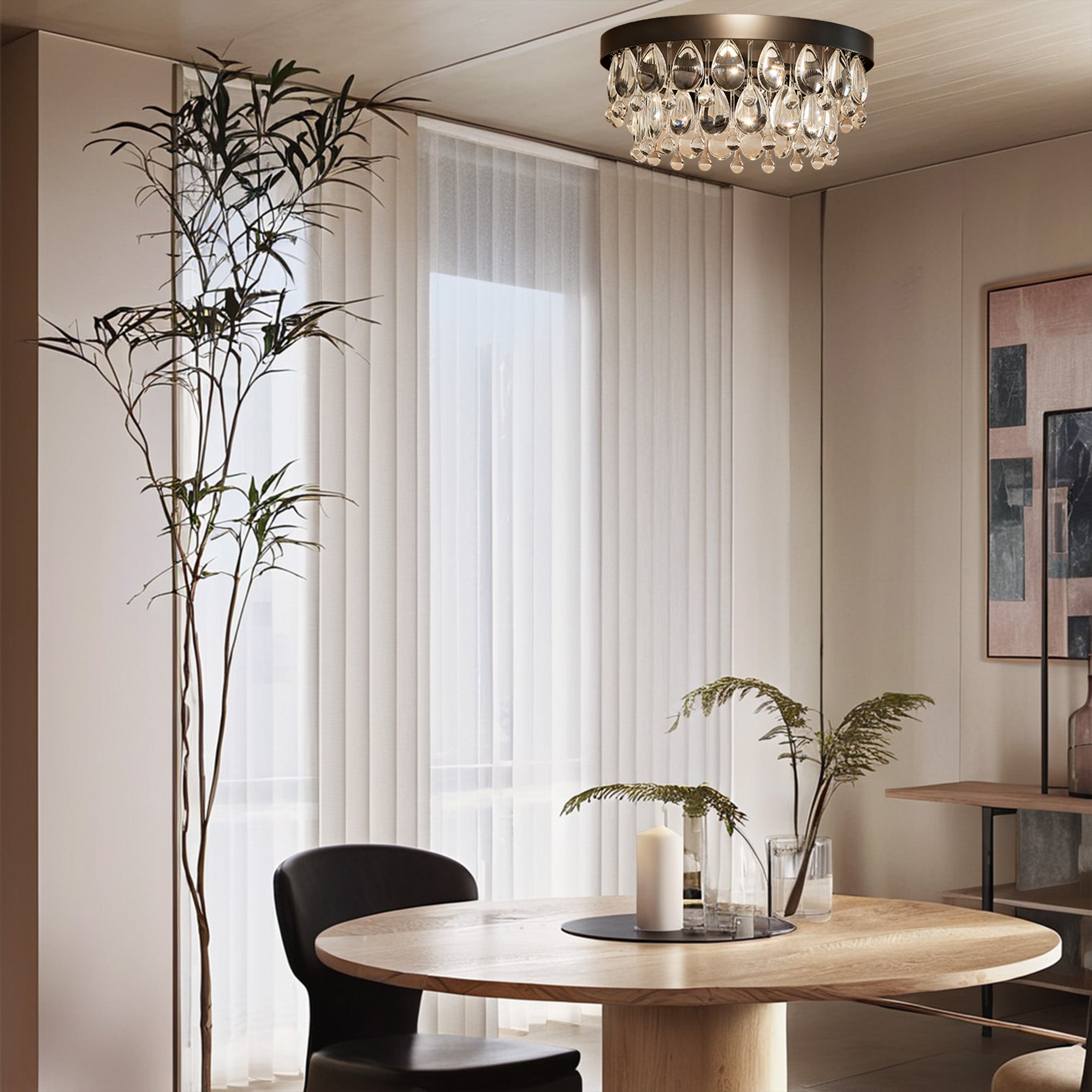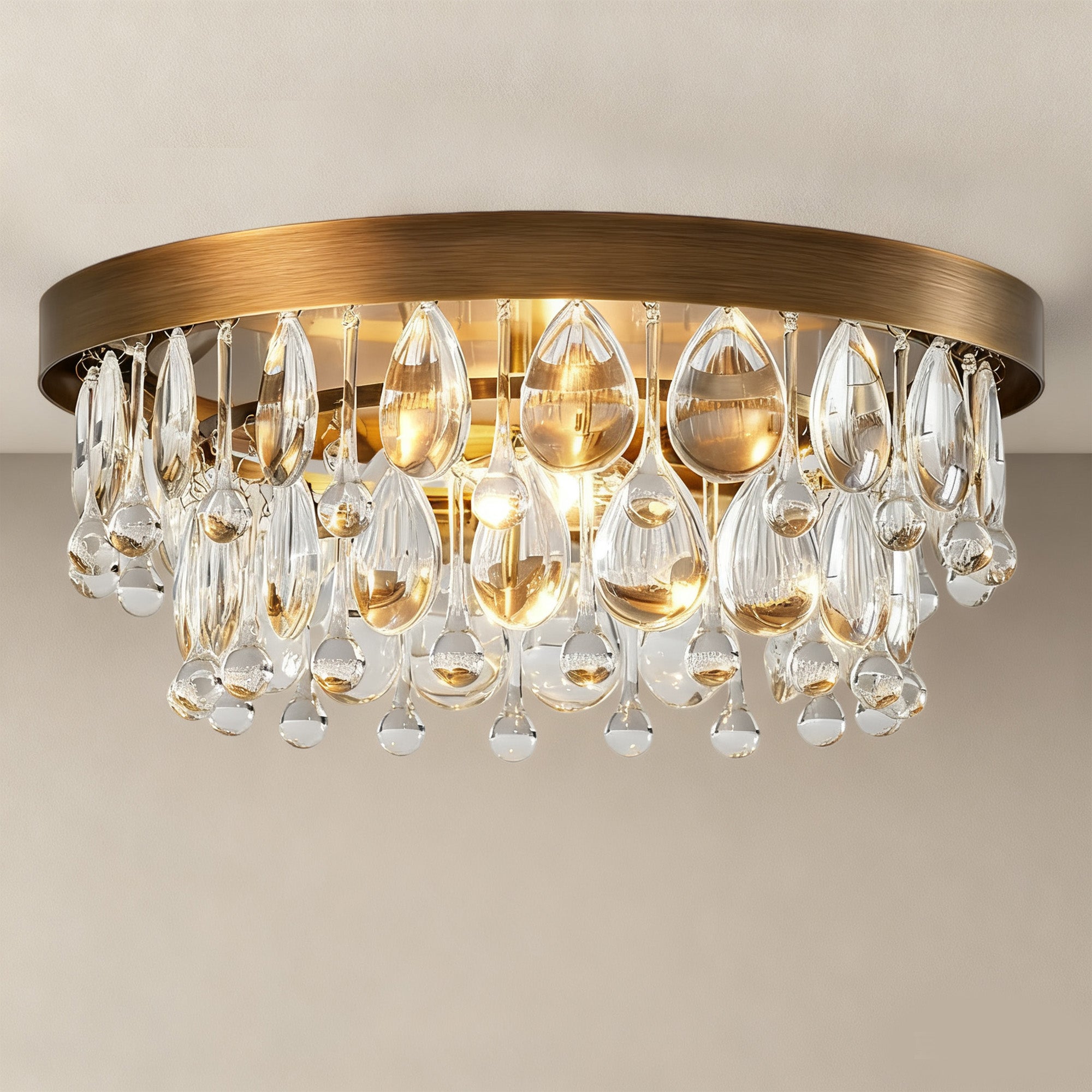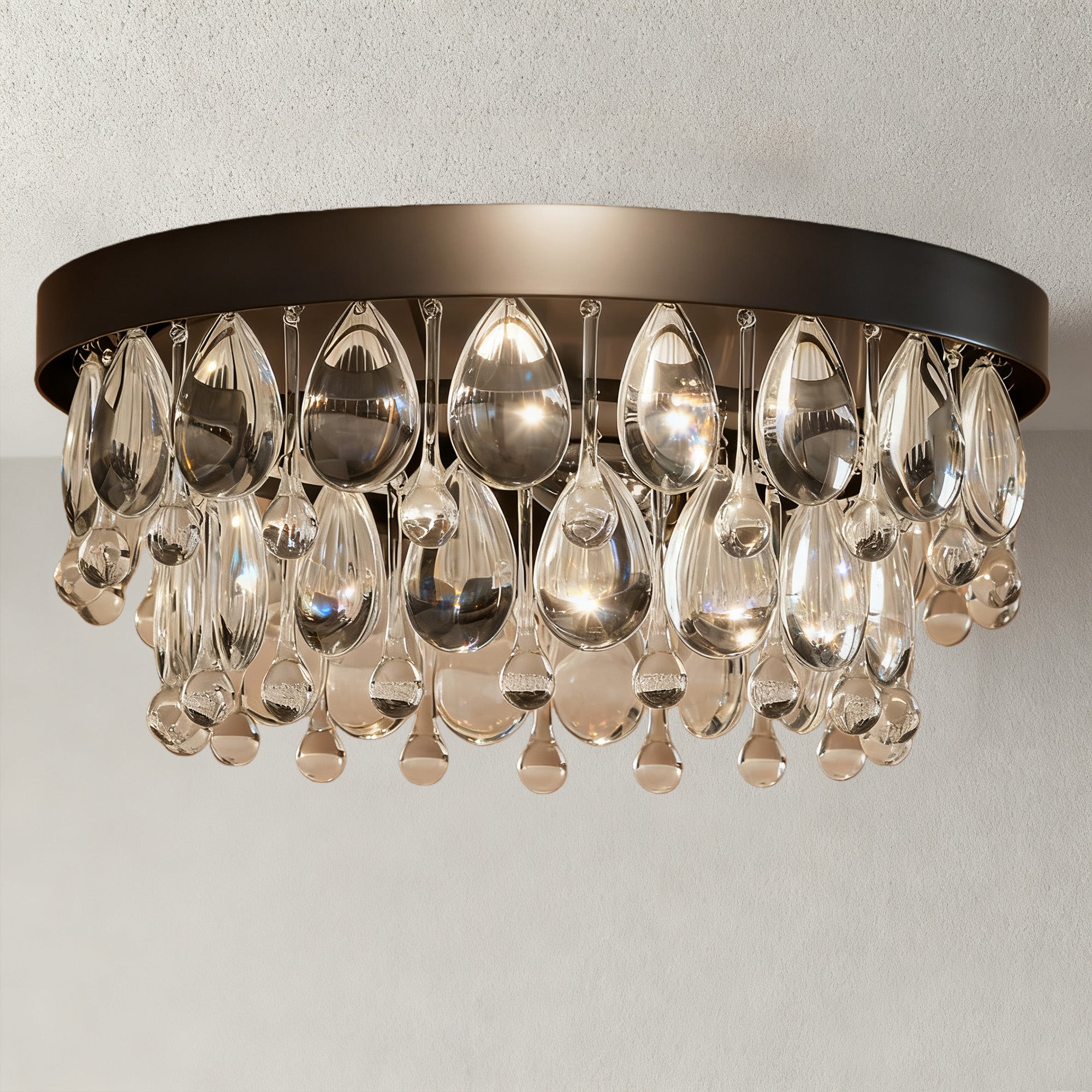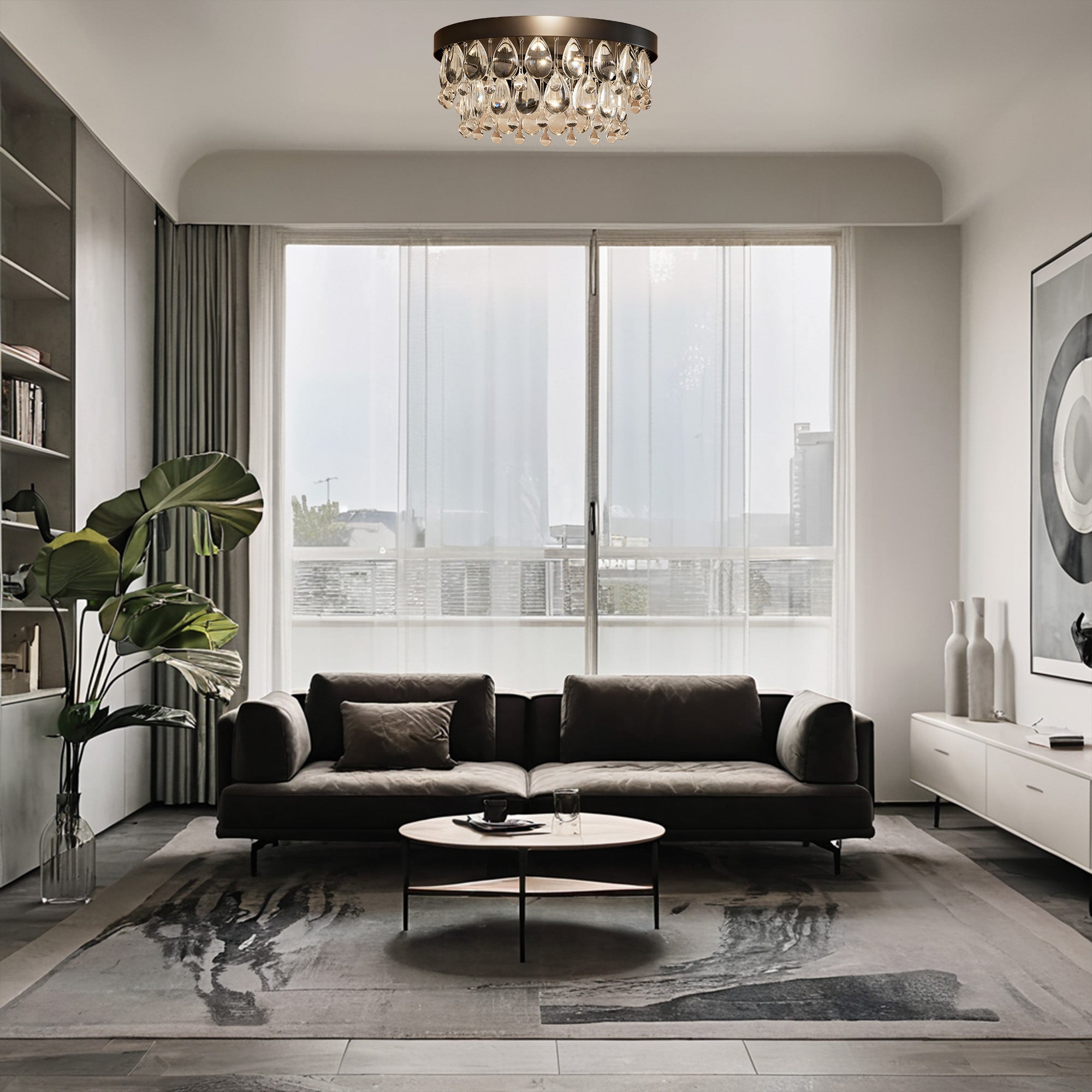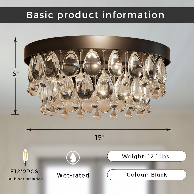 - This flush mount offers a fresh interpretation of our classic Ceiling Lamps For Living Room Collection. Its updated design features a sleek, spherical frame adorned with crystal droplets in tear and raindrop shapes, adding a touch of sophistication to your home decor.
