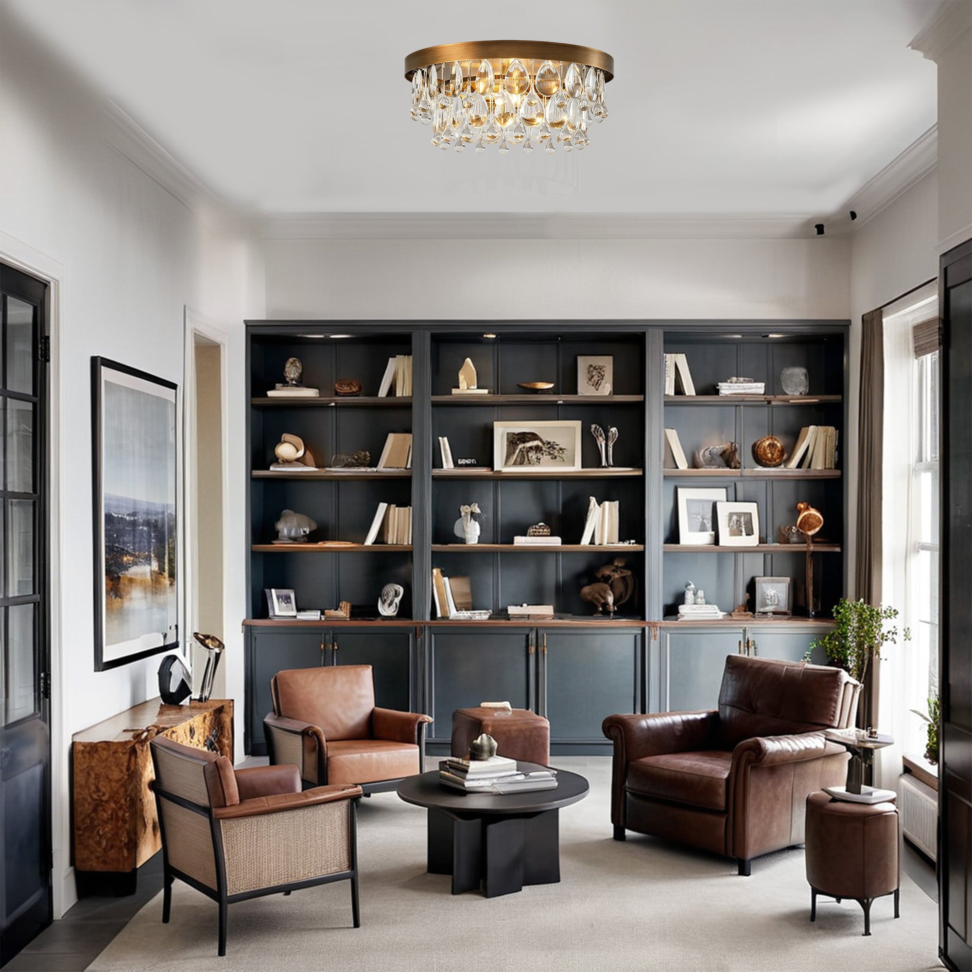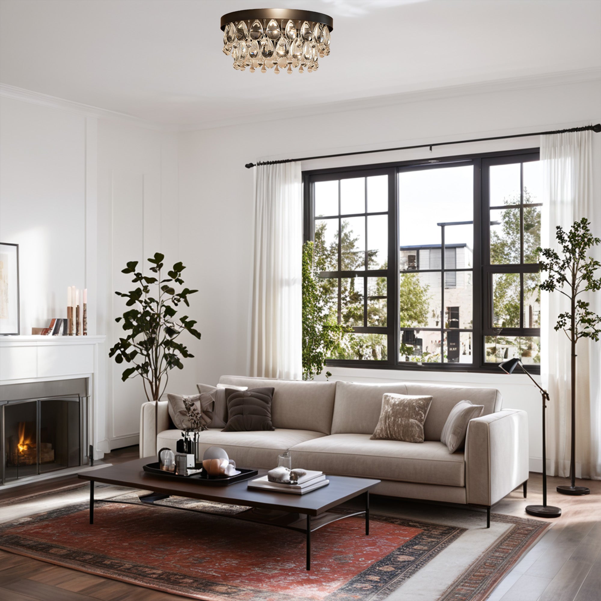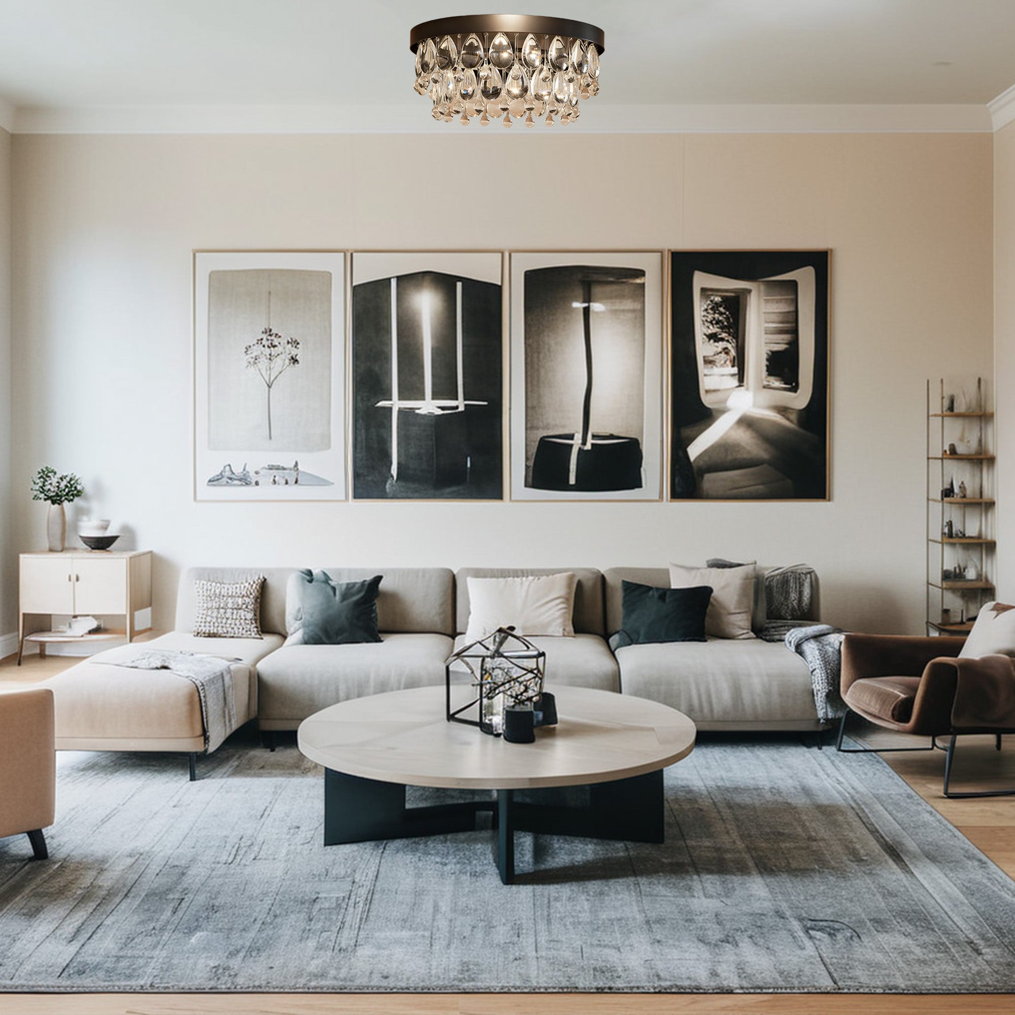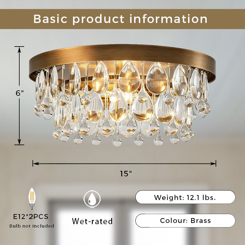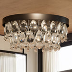 - This flush mount offers a fresh interpretation of our classic Ceiling Lamps For Living Room Collection. Its updated design features a sleek, spherical frame adorned with crystal droplets in tear and raindrop shapes, adding a touch of sophistication to your home decor.