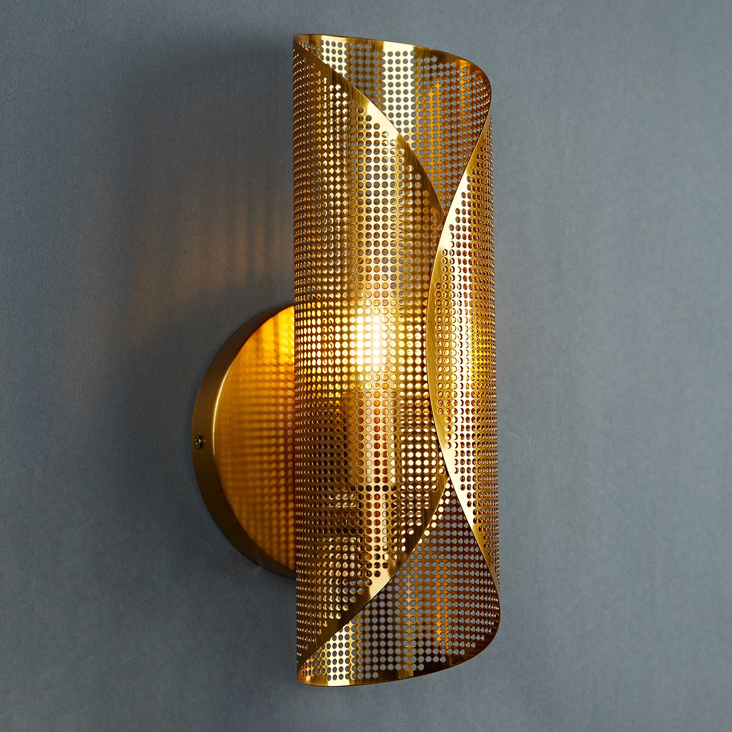 - Upgrade your living space with this chic wall lamp that brings both style and practicality to any room. Light up your life with our stylish Curl Perforated Sconce 1-Light today!
