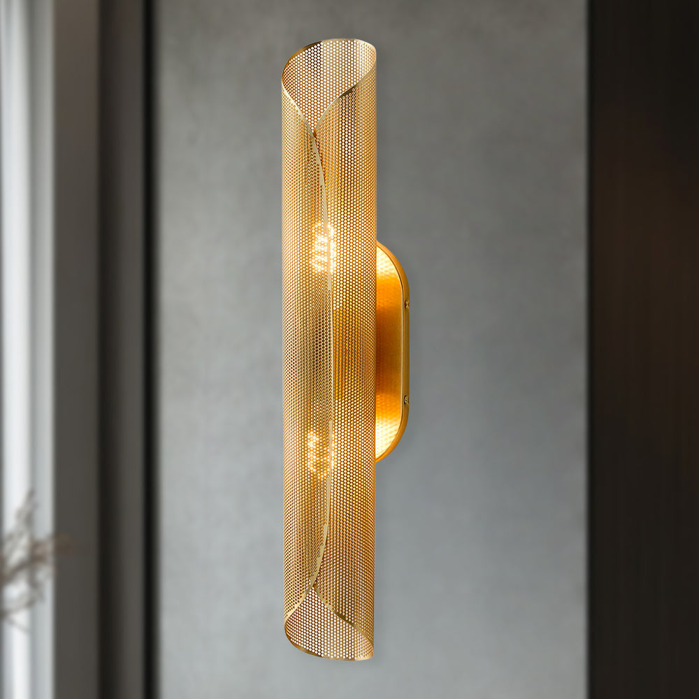 - Not only is it ideal for bathrooms, but it also works wonderfully as wall lamps for bedrooms, flanking a headboard or brightening up a reading nook. Curl Perforated Sconce 2-Light is an effortless addition to your home that combines the best of form and function. Upgrade your lighting and enjoy the beauty and versatility of this exquisite wall sconce!