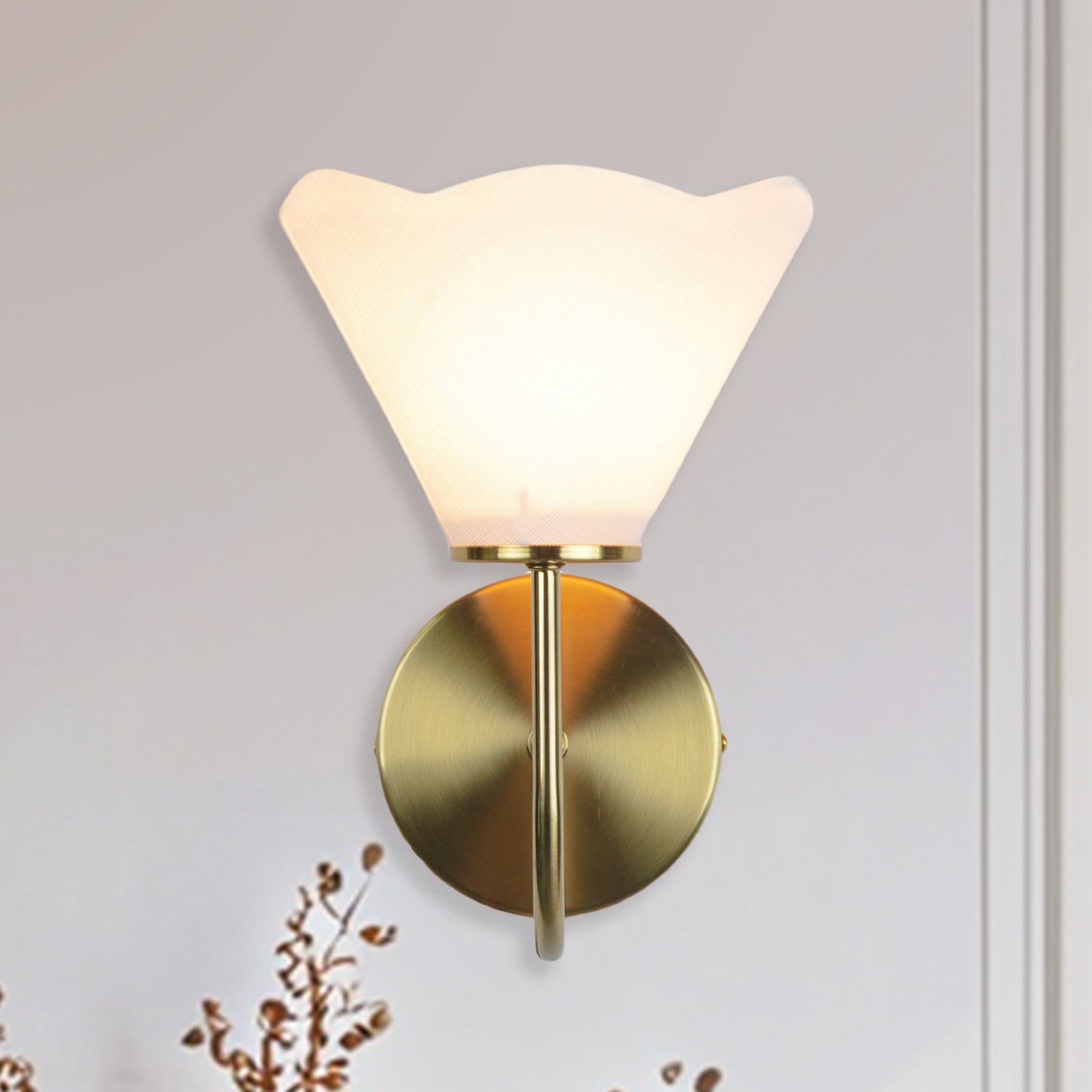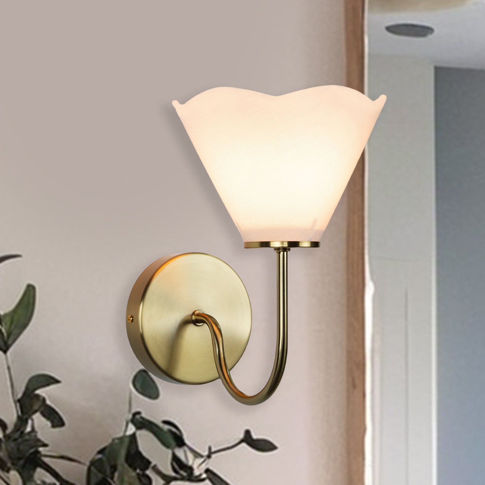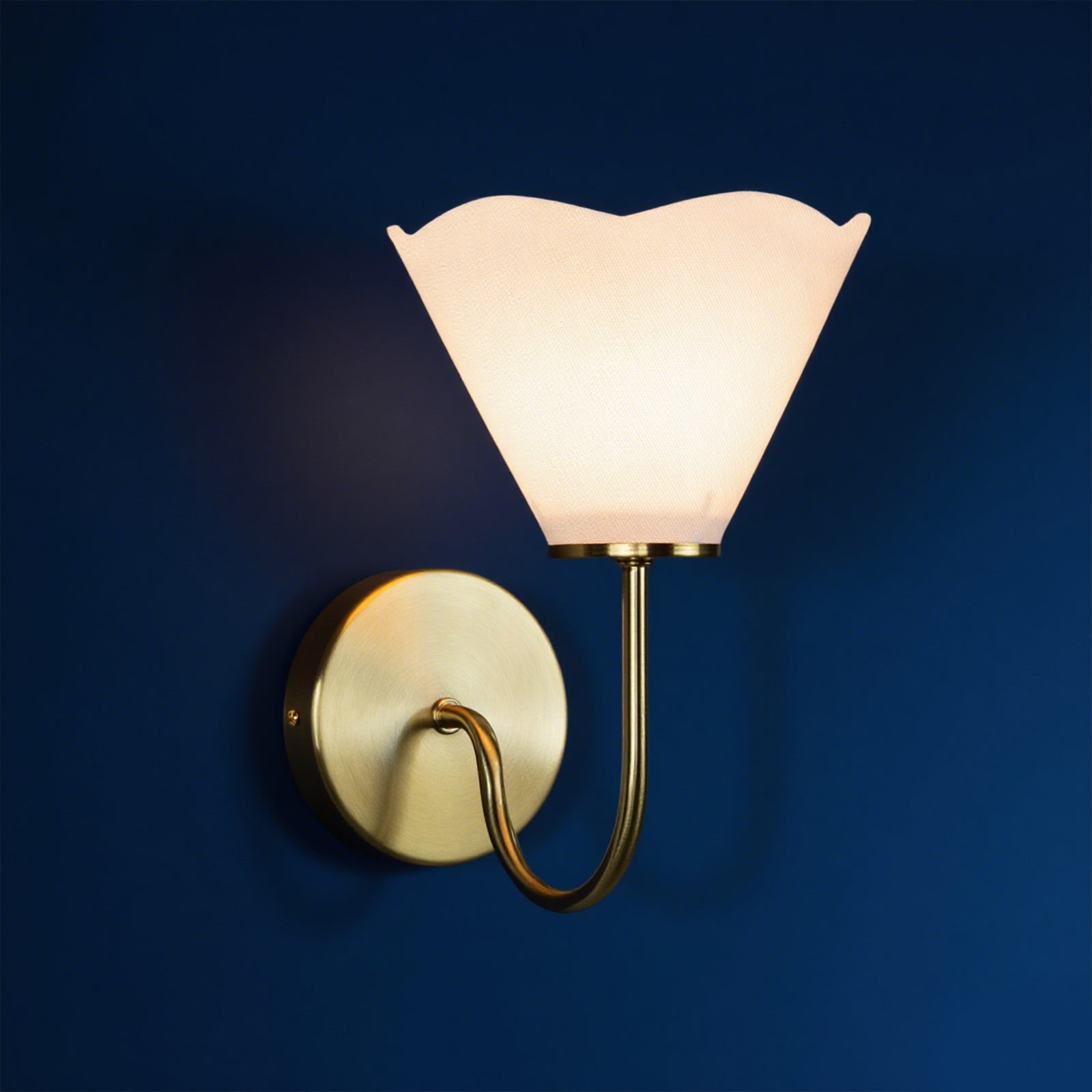 - With slender lines and subtle floral forms, our Loana sconce is poised for effortless sophistication. This sconce light's curvilinear arm creates a striking silhouette that can be styled as a standalone accent or in a pair to flank a statement feature. The brass finish and linen shades set the tone for warmth and elegance.