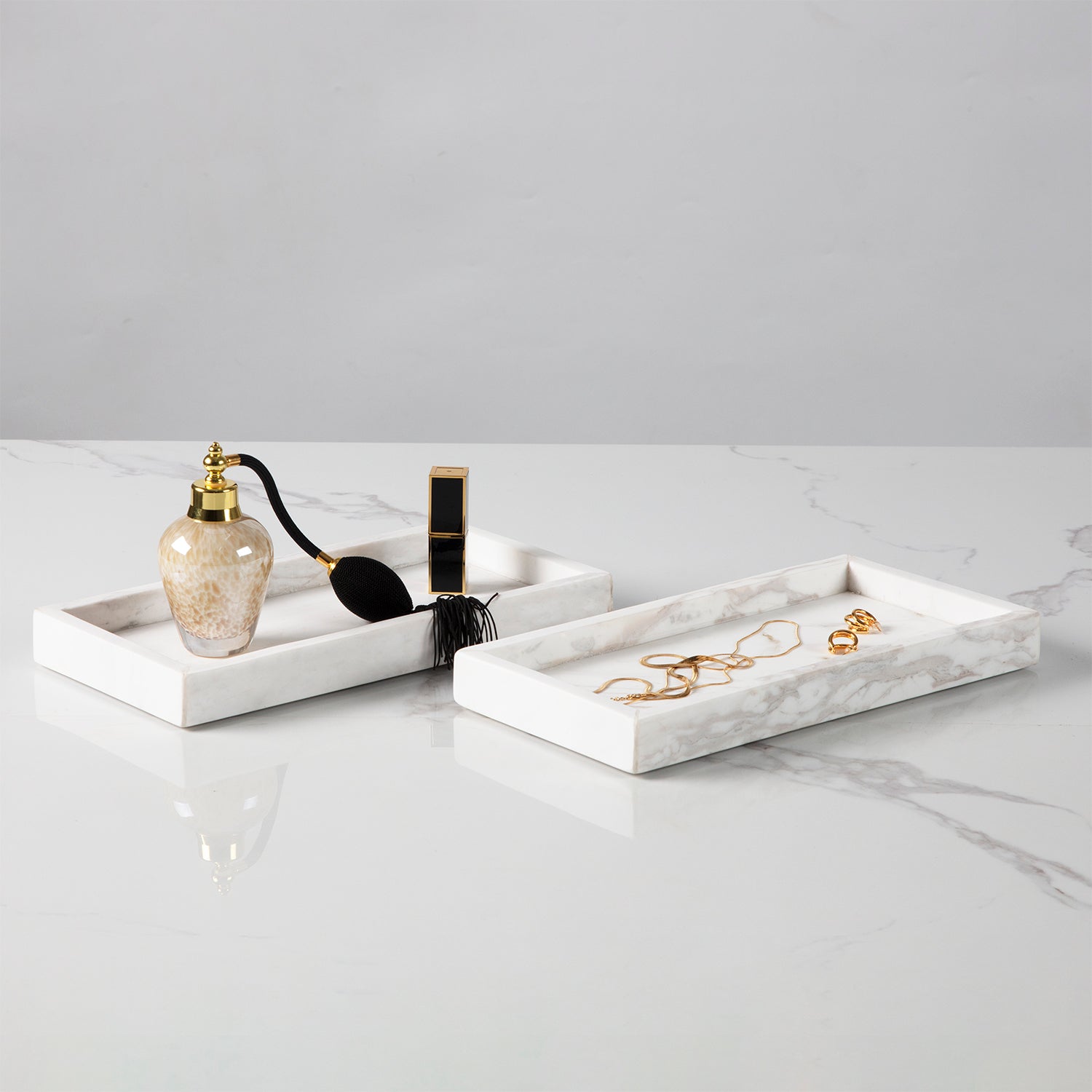- White Marble Vanity Tray 12W x 6D x 0.75H,Net Weight:3.52 LBS