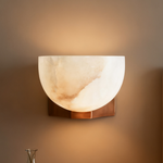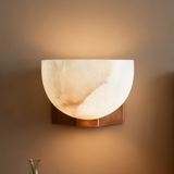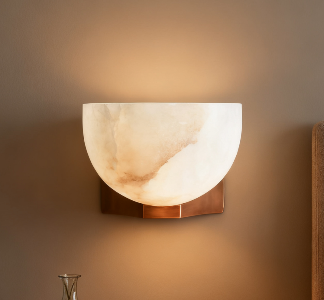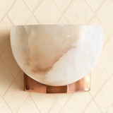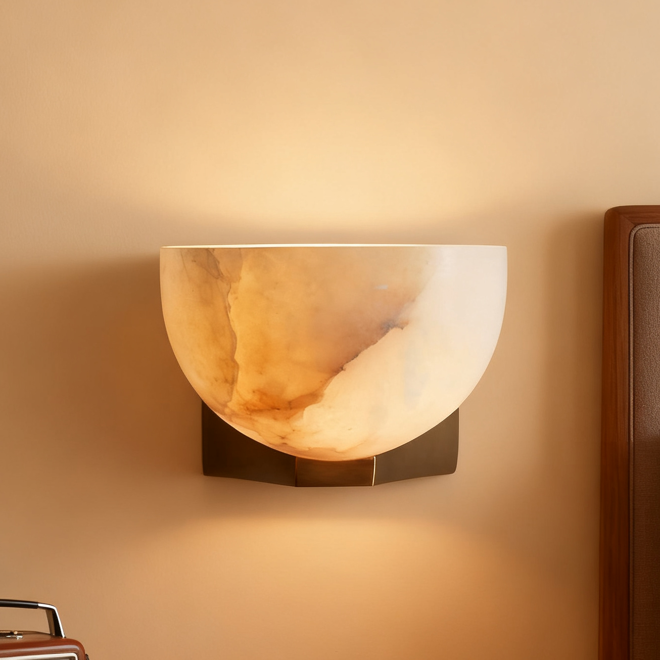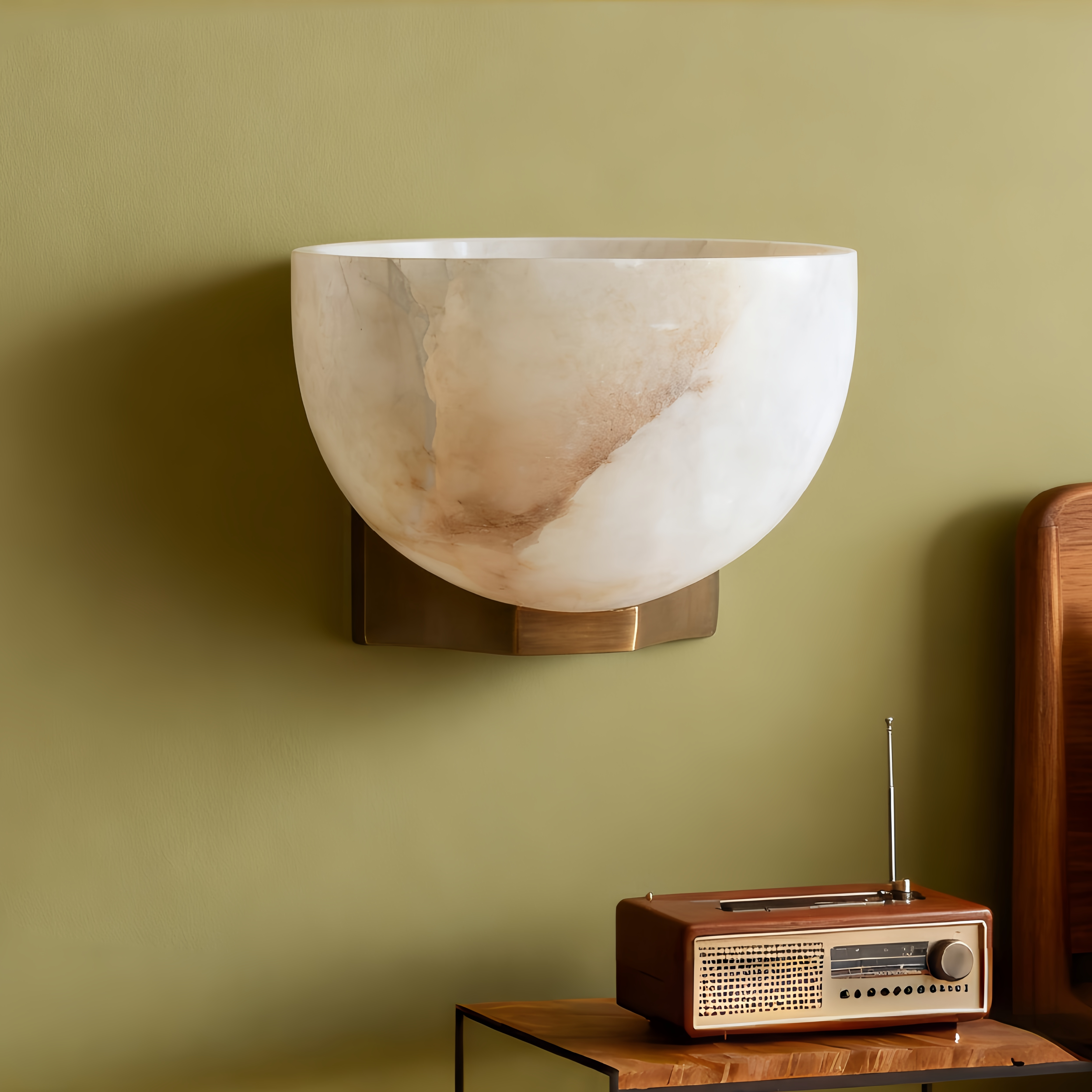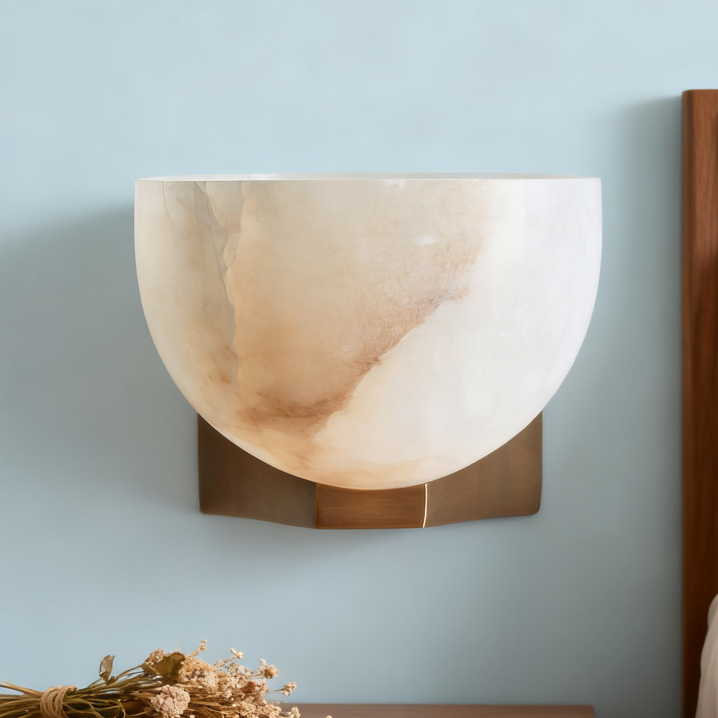 - Add a touch of luxury to your space with this exquisite wall light that combines the beauty of alabaster with the timeless appeal of burnished brass.