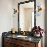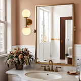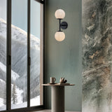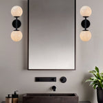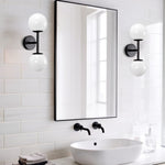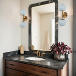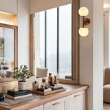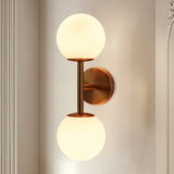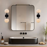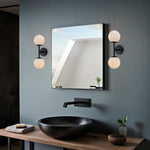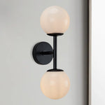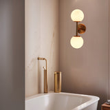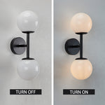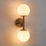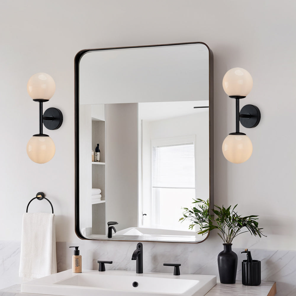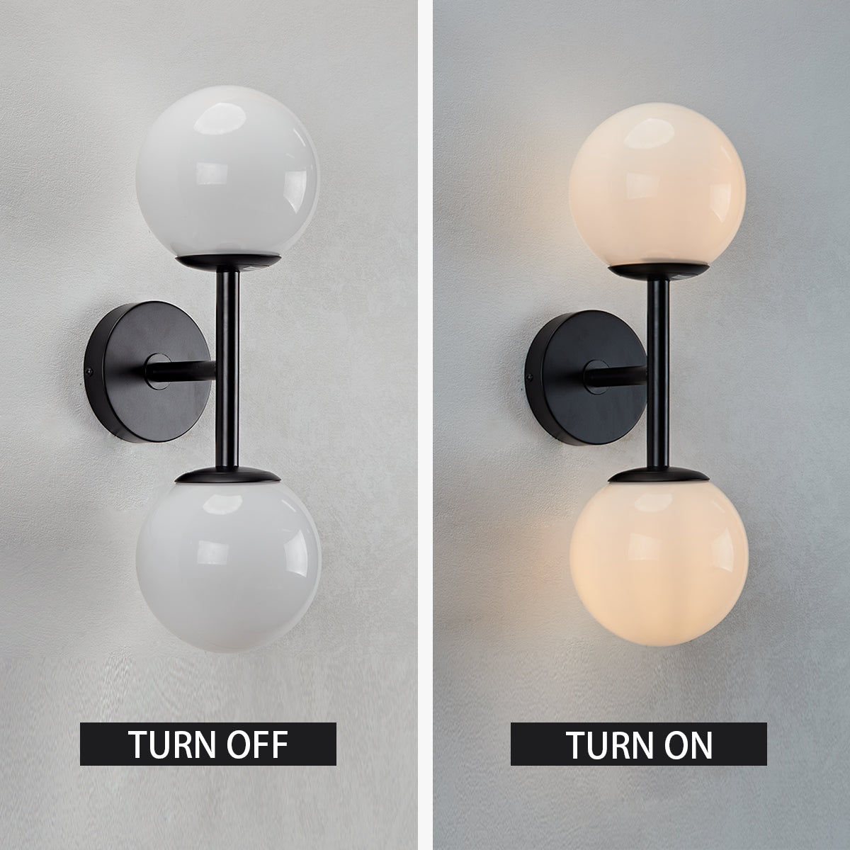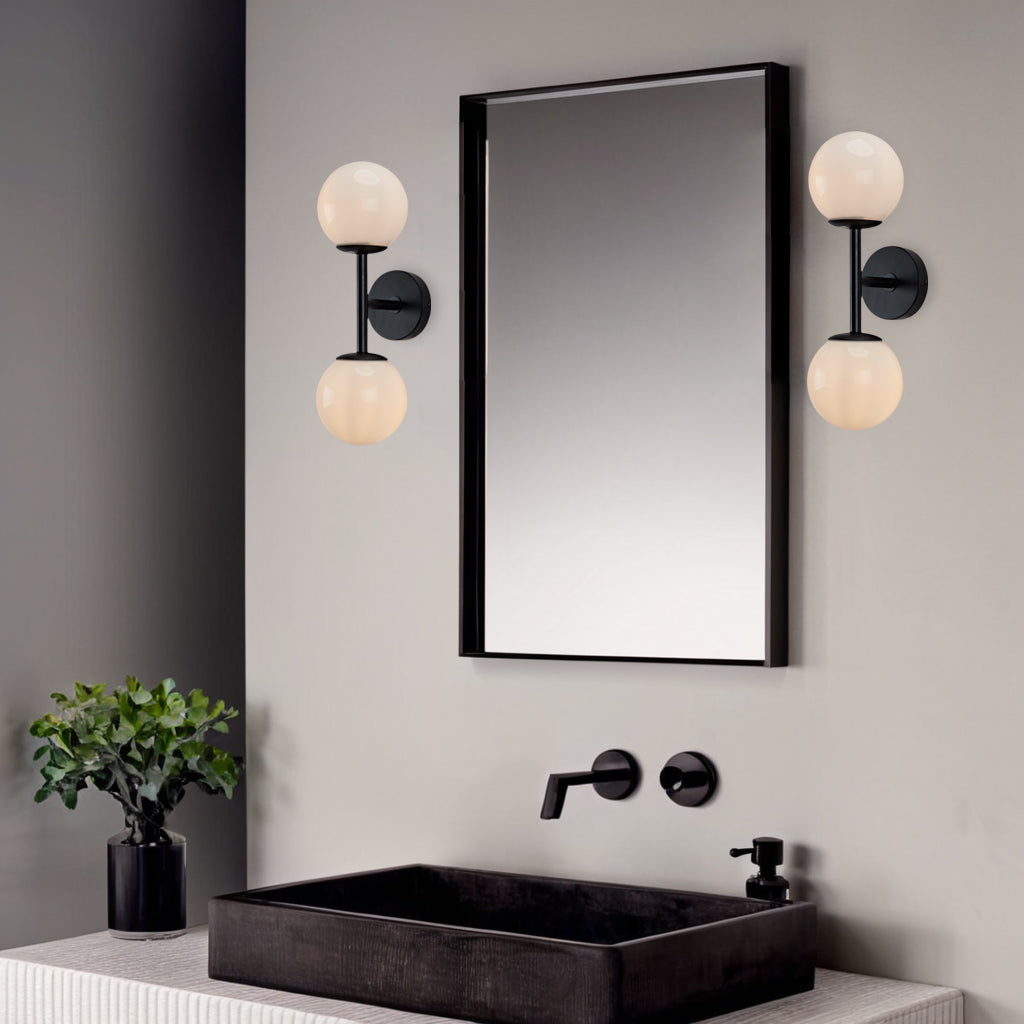 - Crafted from solid brass and adorned with opal globe shades, this sconce radiates a soft and sophisticated glow, perfect for illuminating your kitchen walls, bathroom vanity, or outdoor living areas.