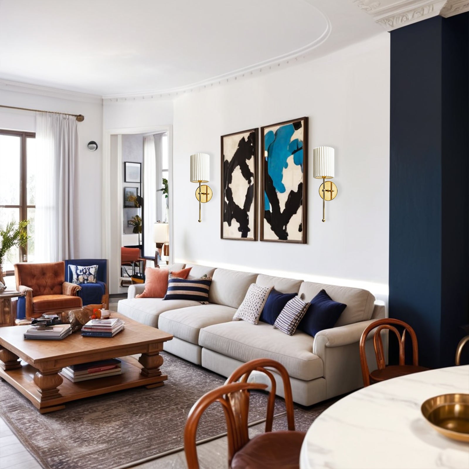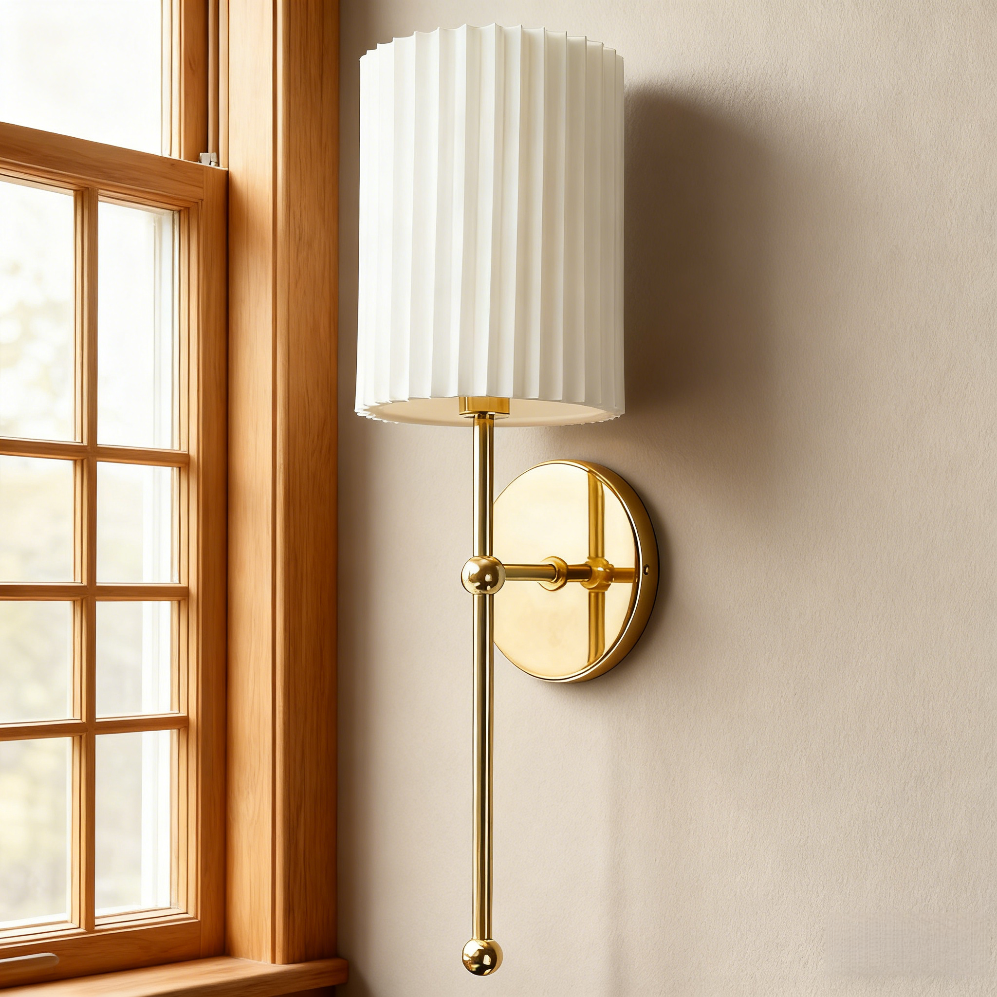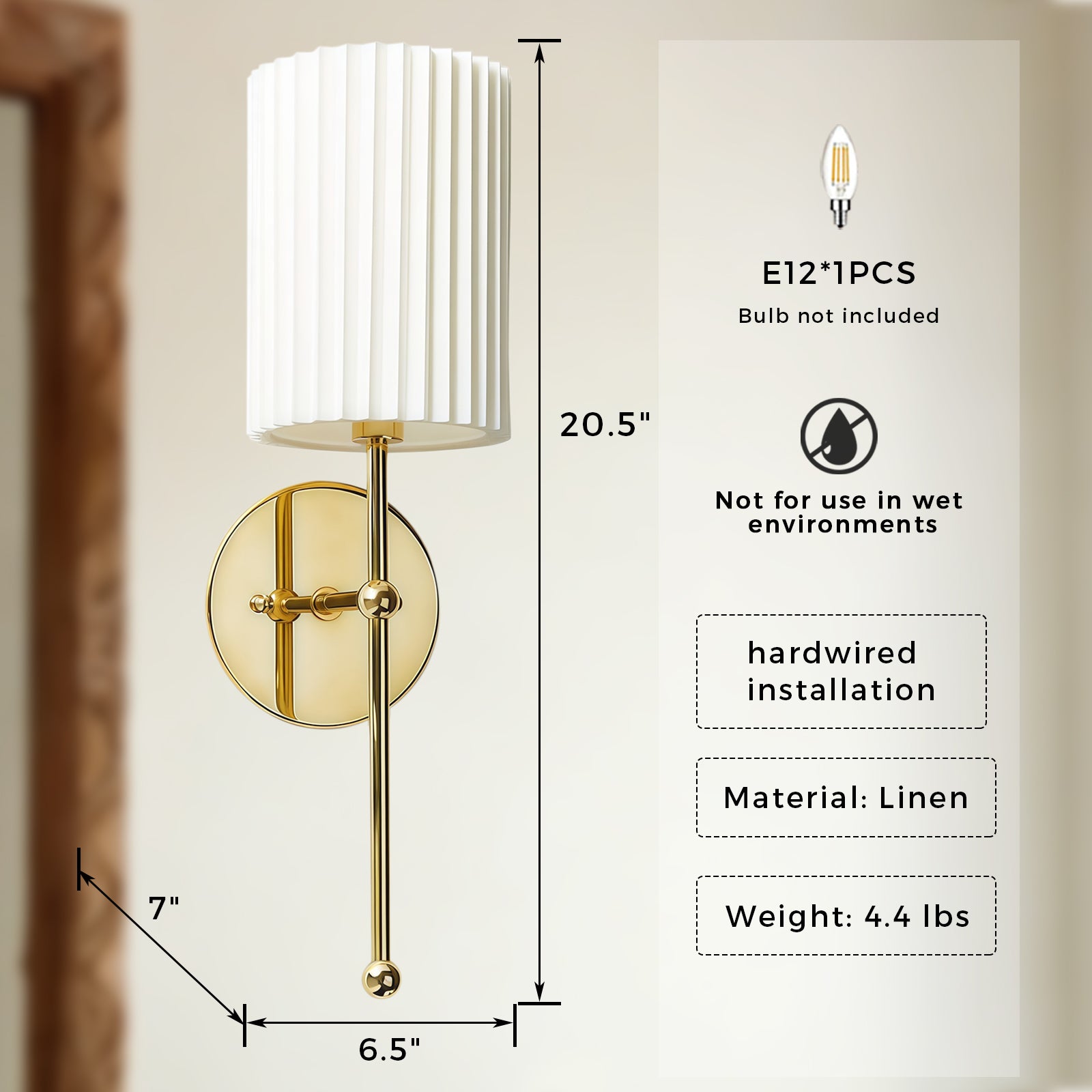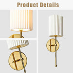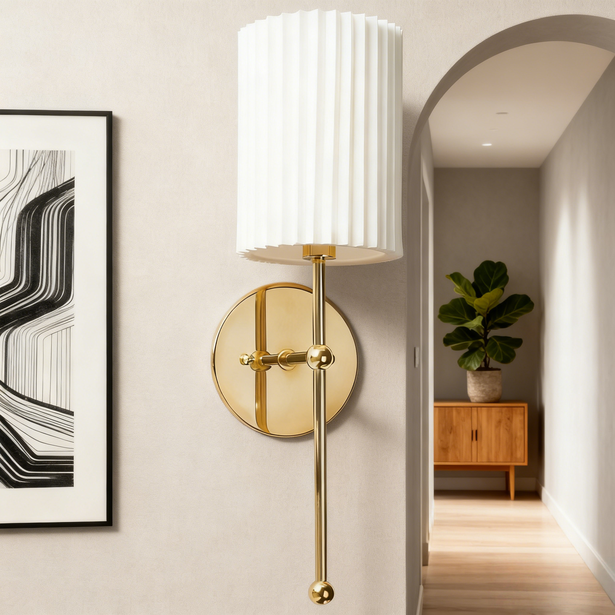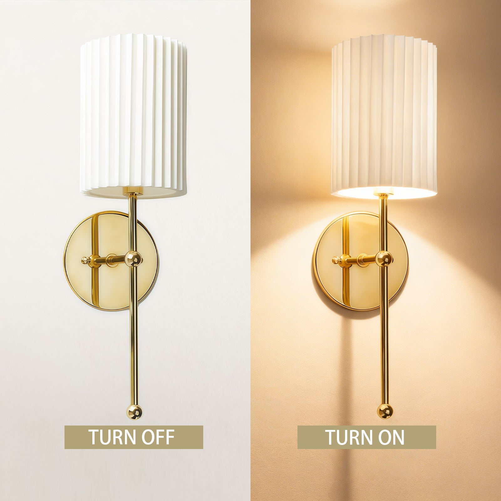 French Elegance Brass Pleated Sconce - Classic French Design with Pleated Linen Shade and Solid Brass Construction - Perfect for Wall Lights for Bedroom