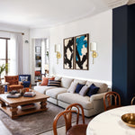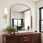 - Crafted from solid unlacquered brass, this sconce emits a warm glow that will patina beautifully over time, adding to its timeless appeal.