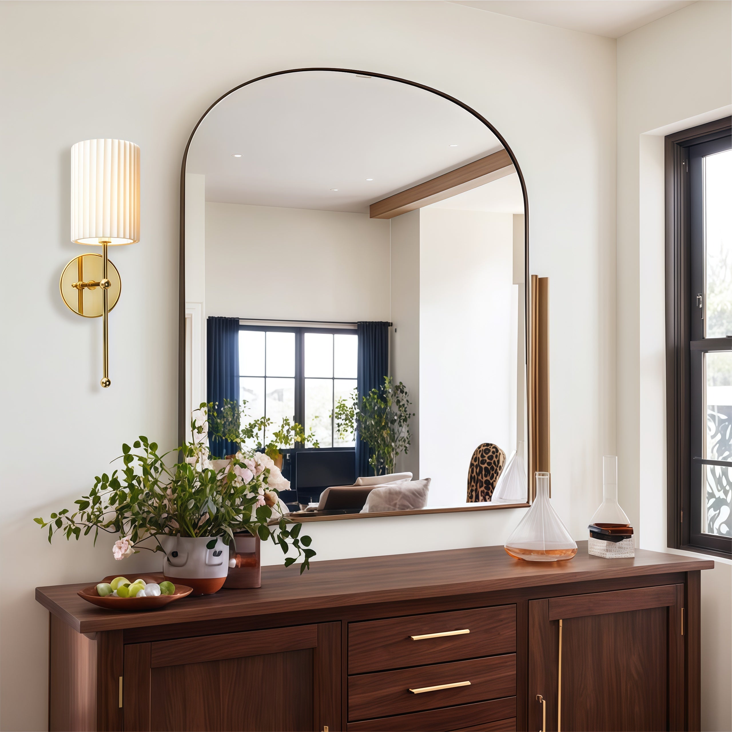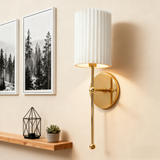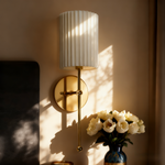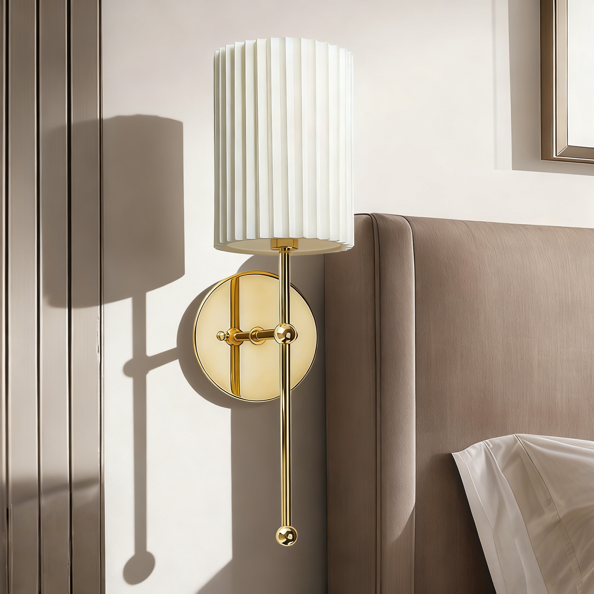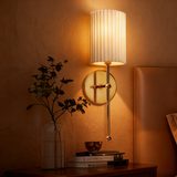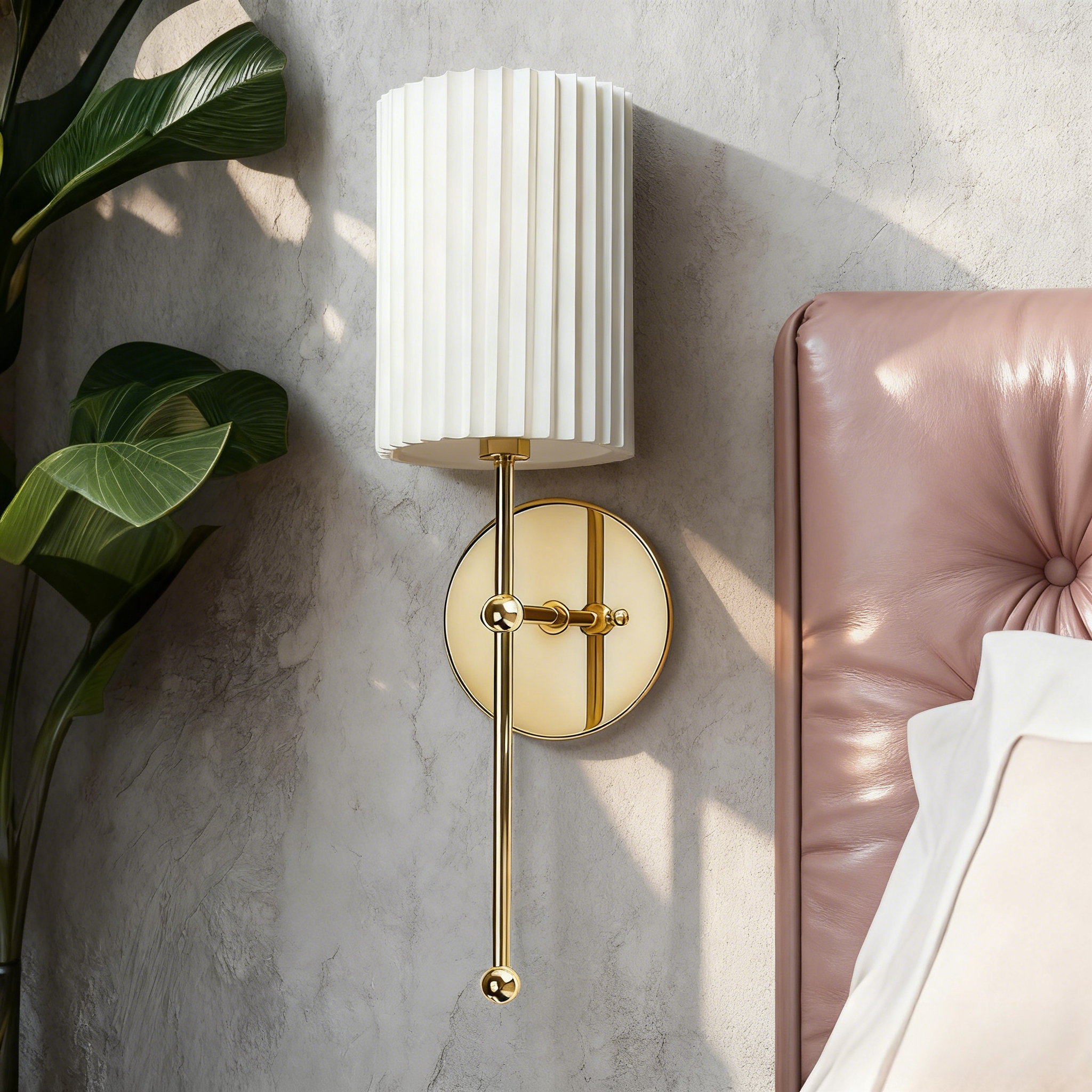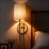 - Illuminate your bedroom with a touch of classic French elegance using our Brass Pleated Linen Sconce.