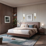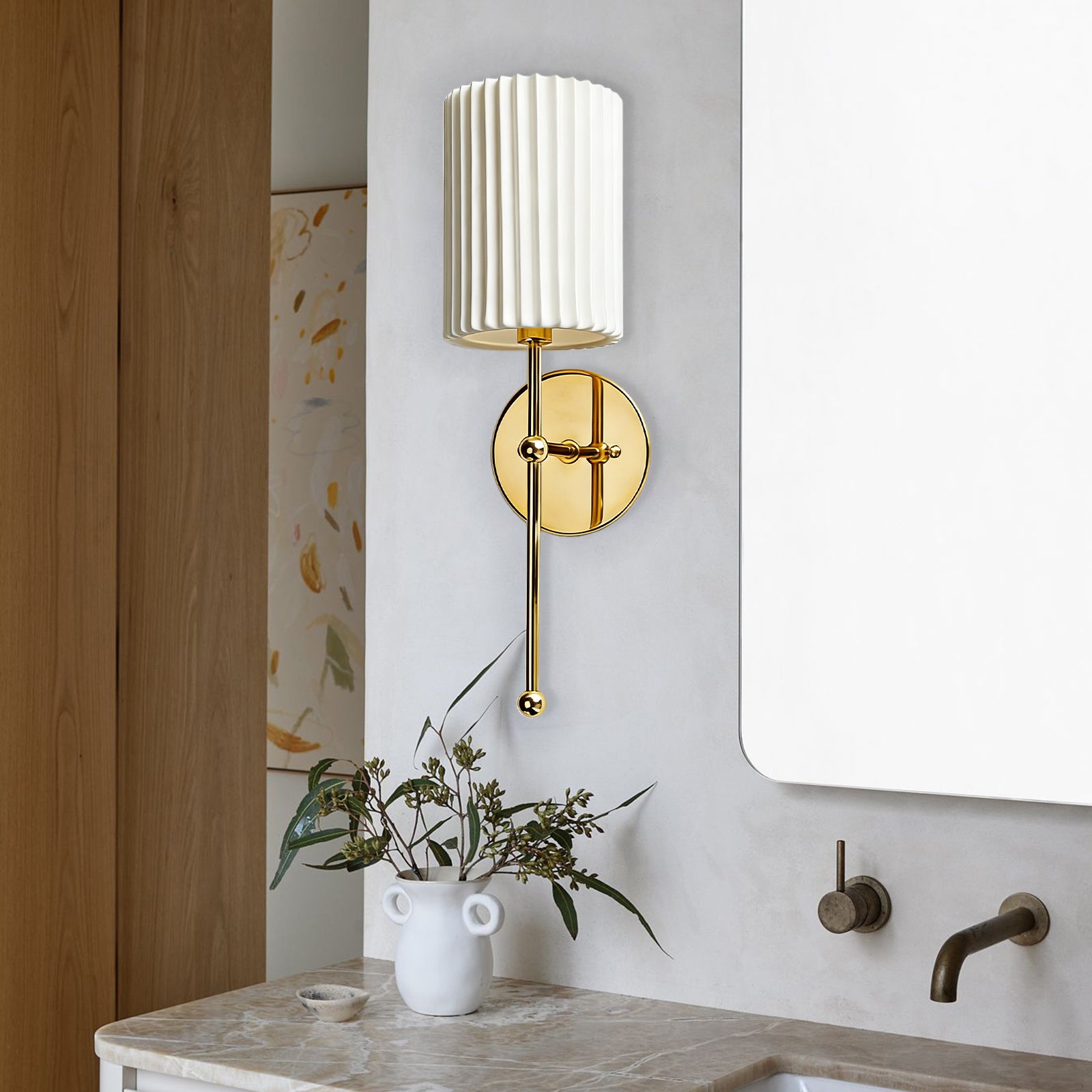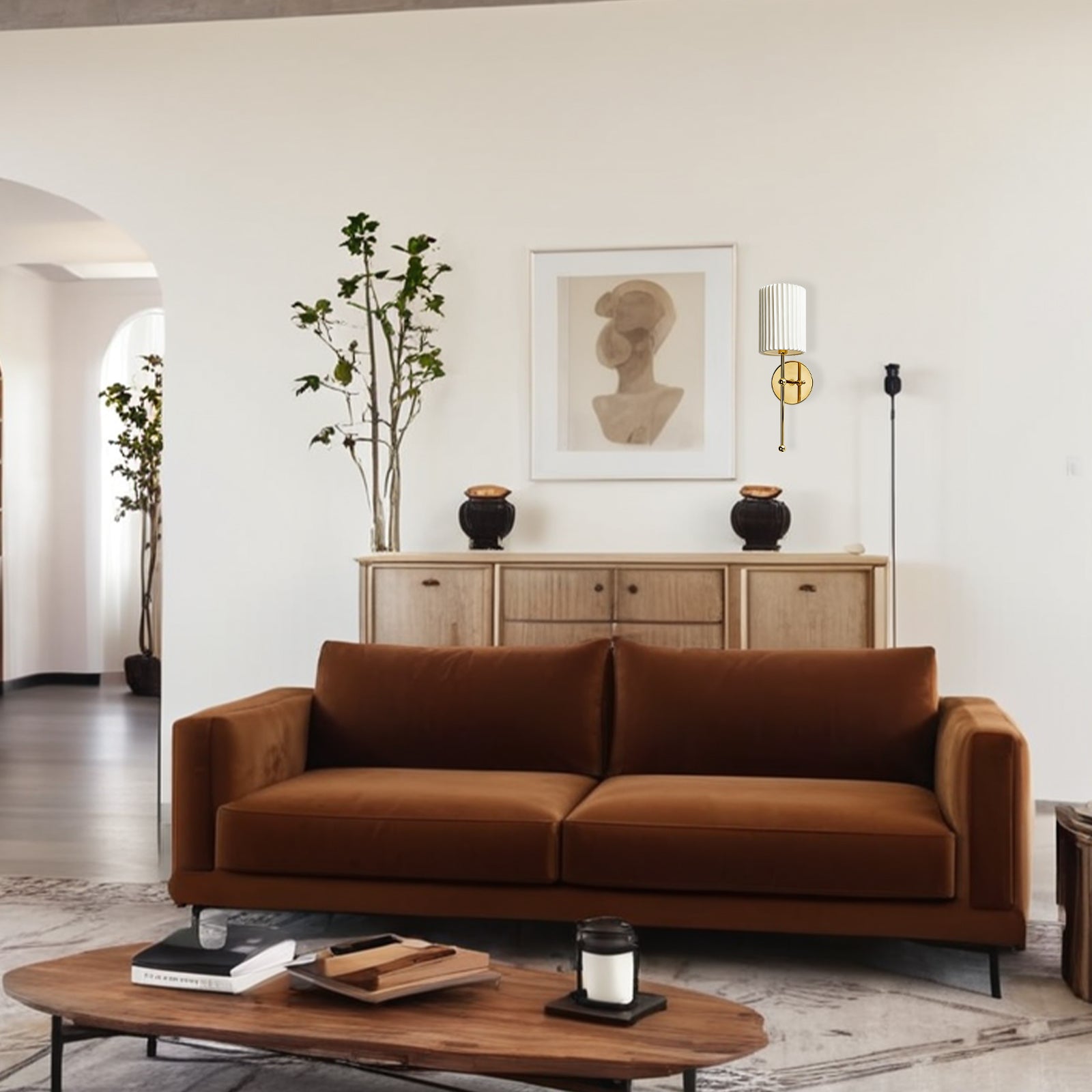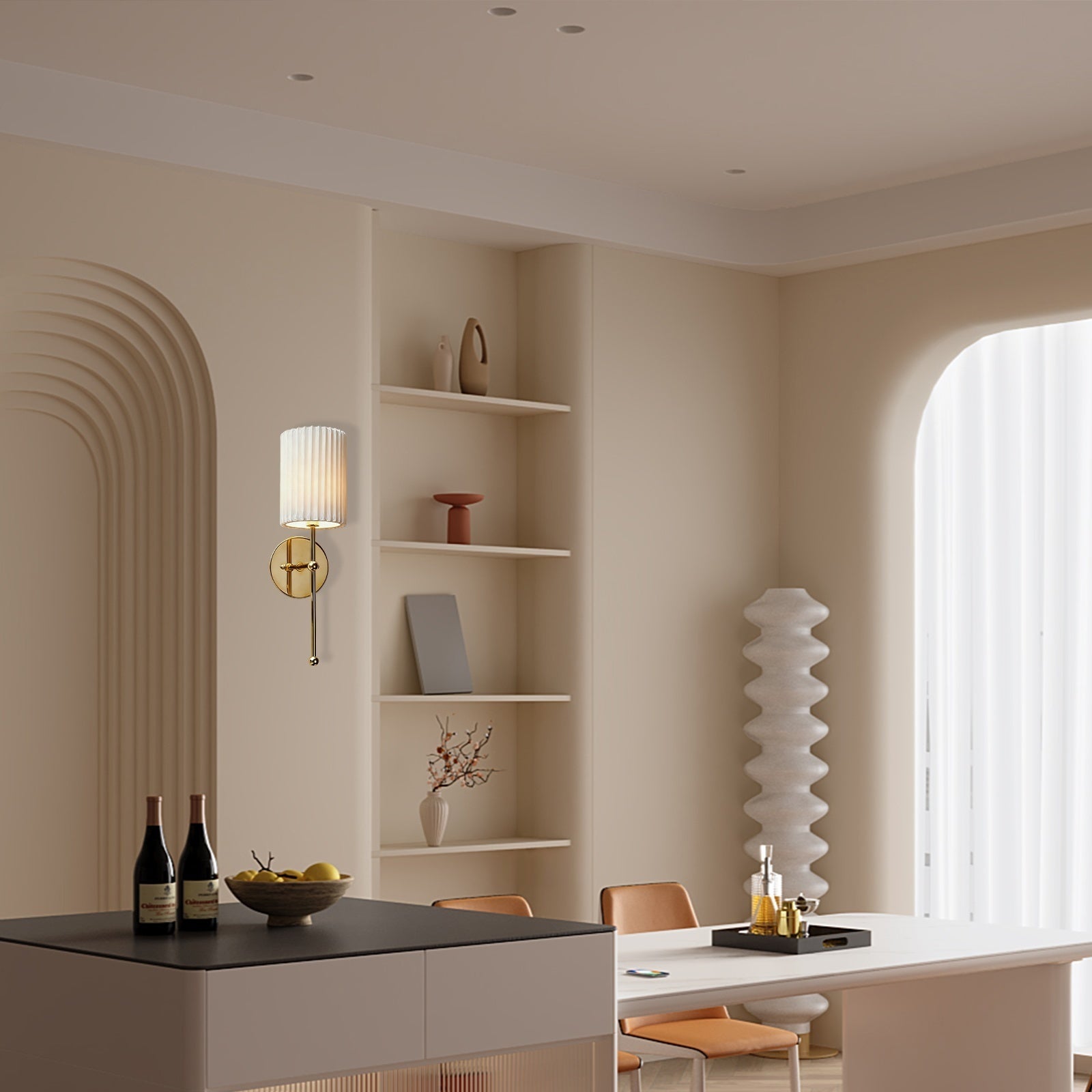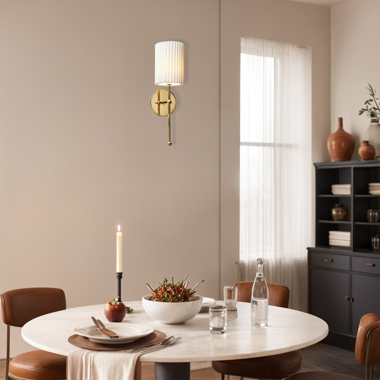 - Illuminate your bedroom with a touch of classic French elegance using our Brass Pleated Linen Sconce.