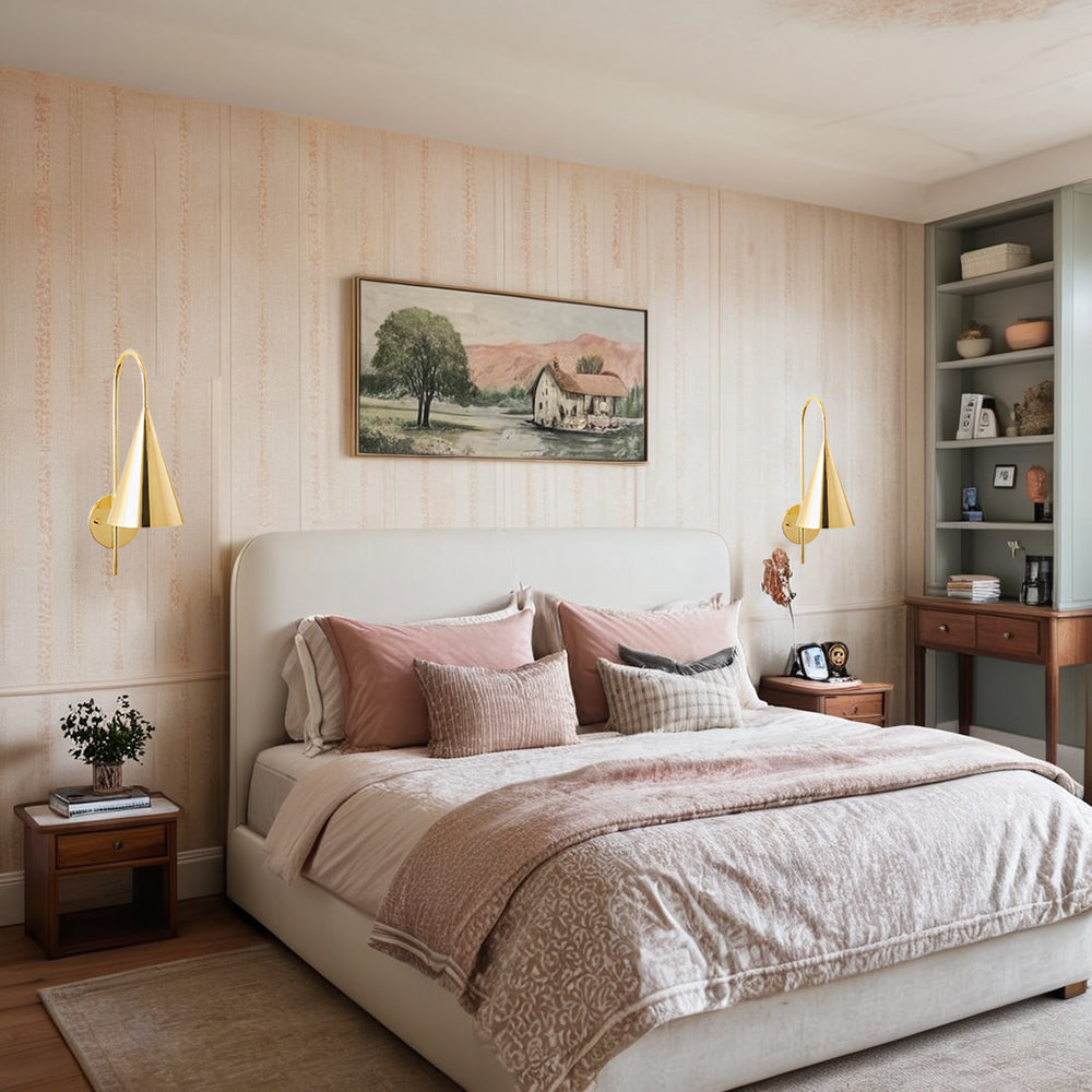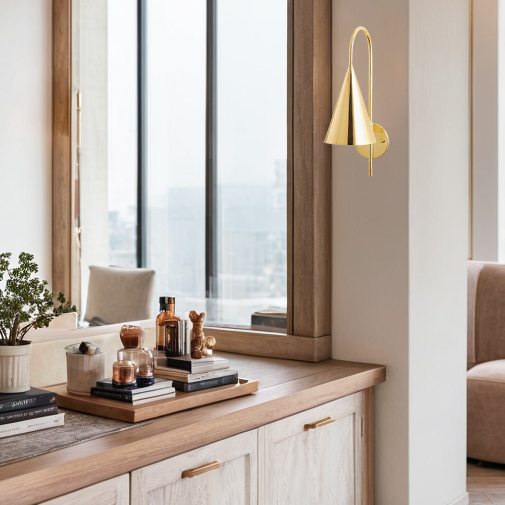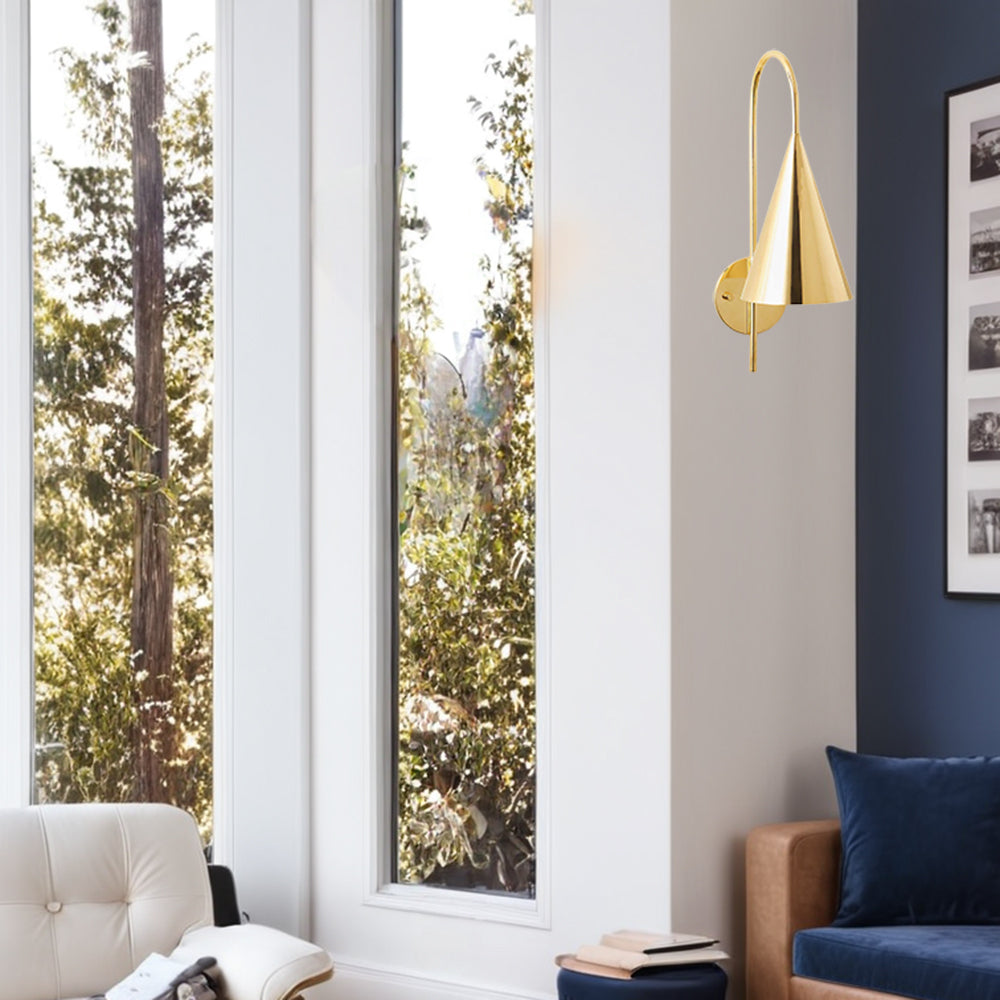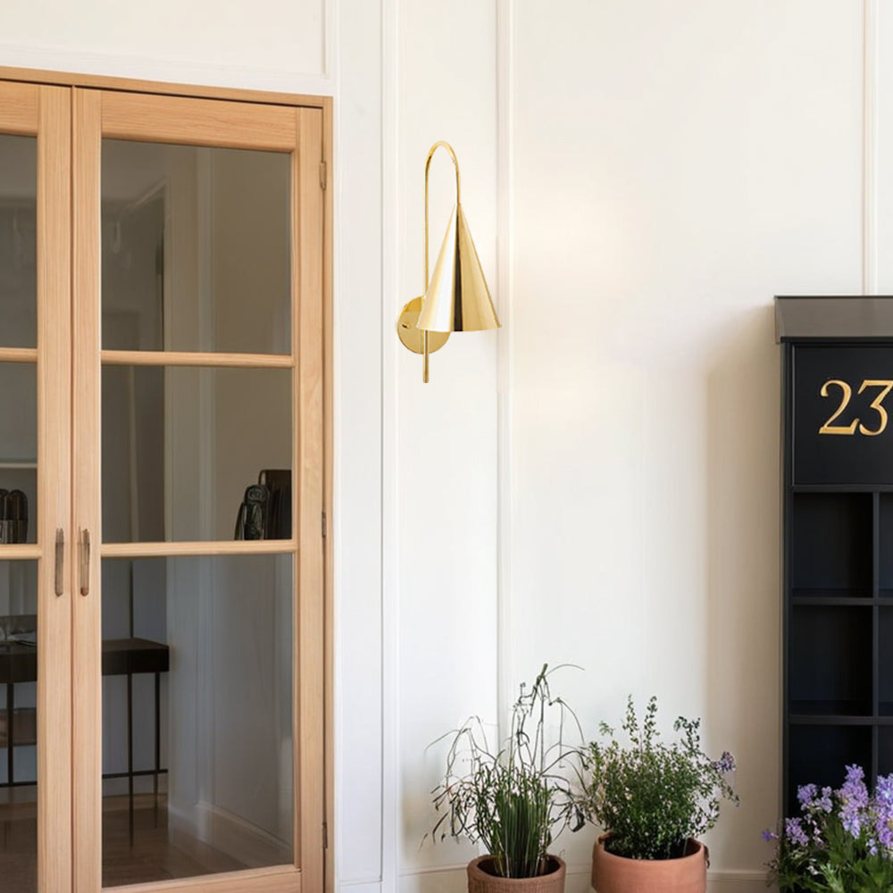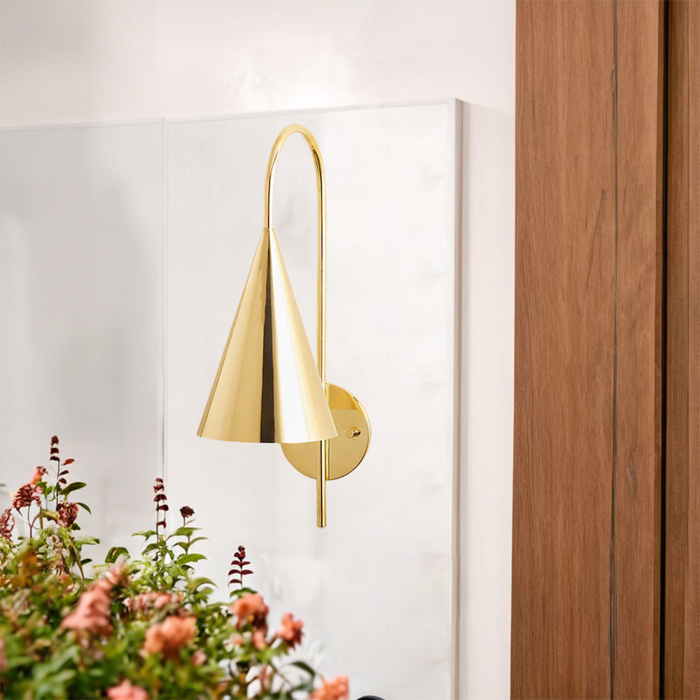 Glowing Conical Sconce - Modern Style with Solid Brass and Conical Shade, Featuring a Sleek Arched Pole - Perfect for Exterior Wall Lights and Outdoor Wall Lights, Ideal for Candle Wall Sconces